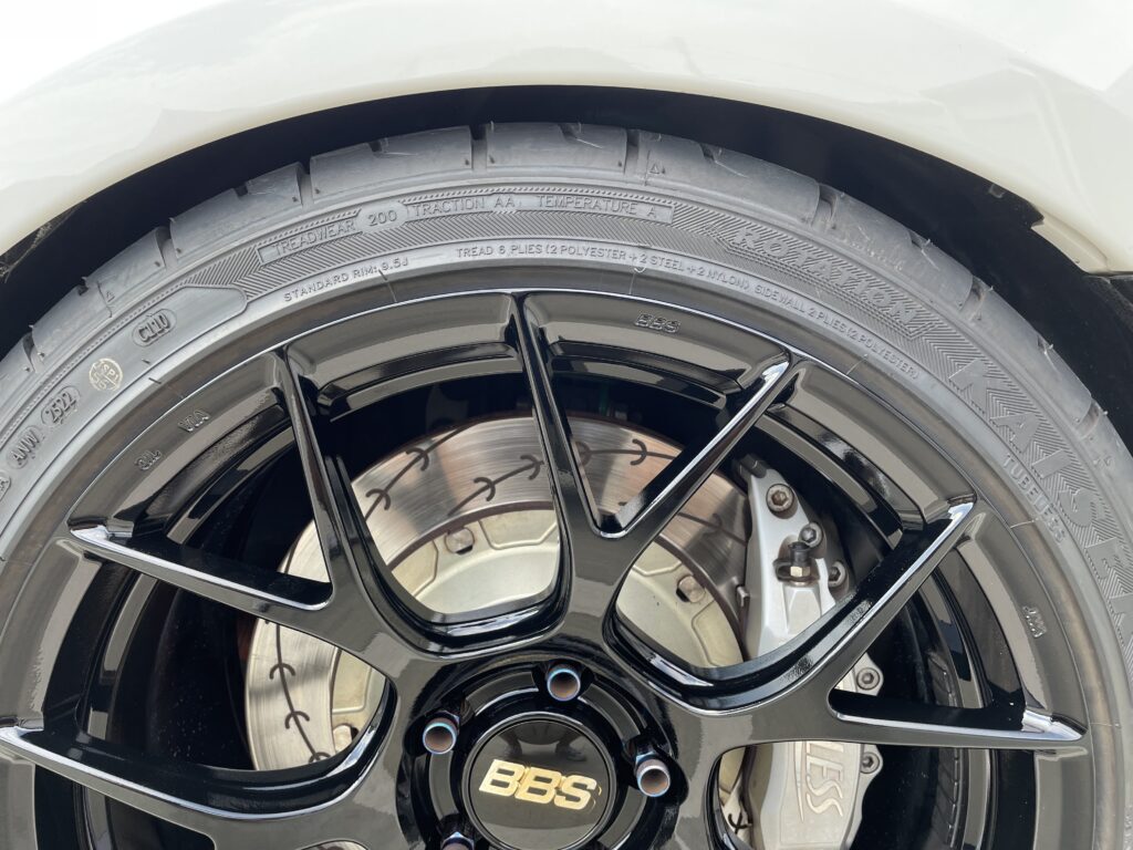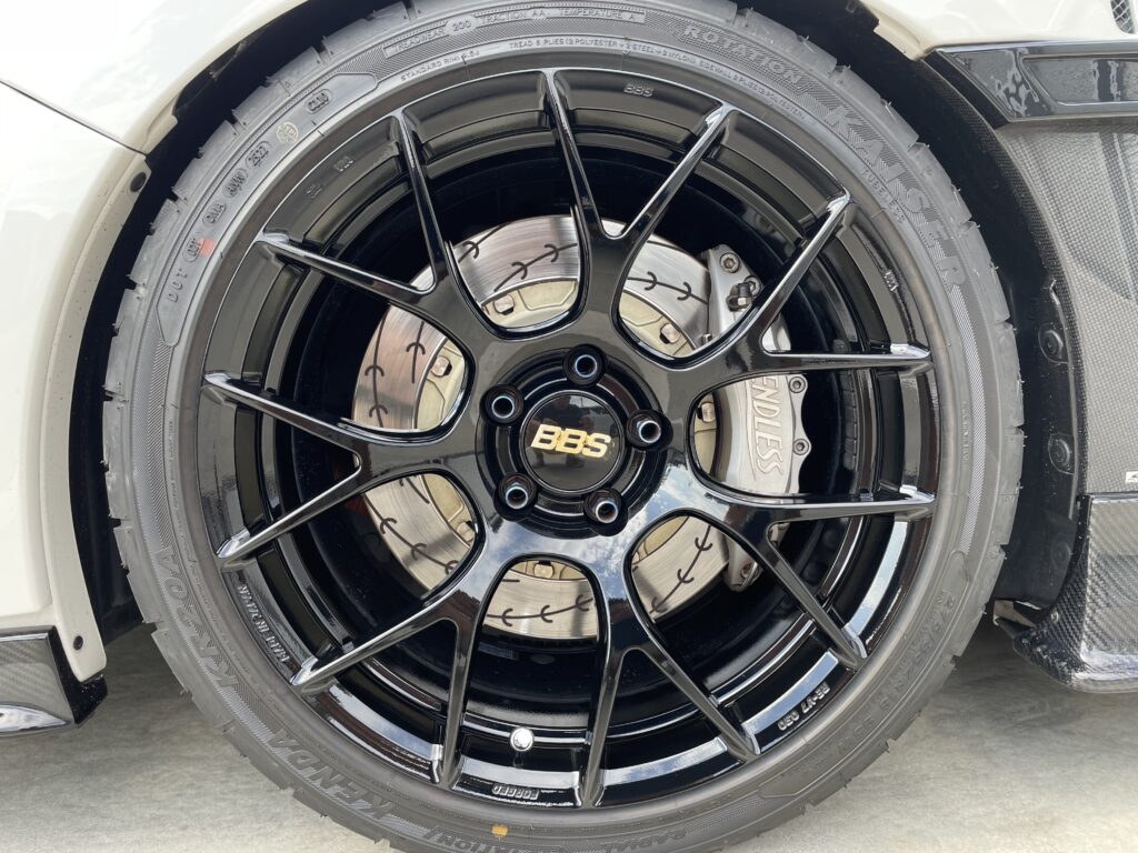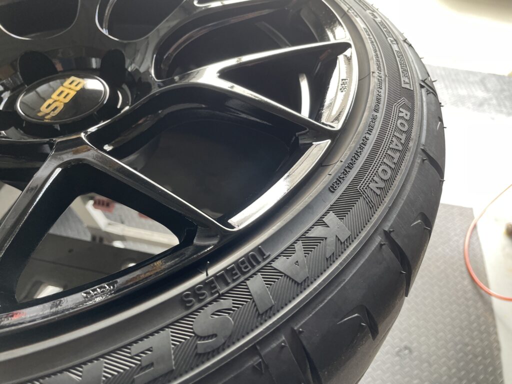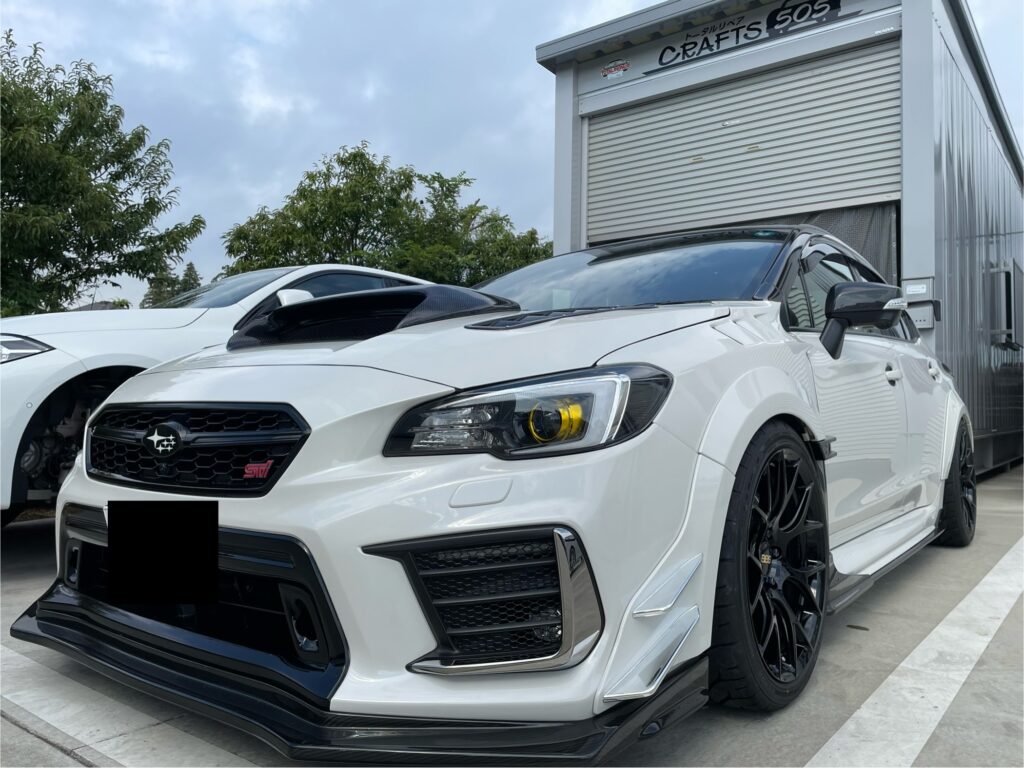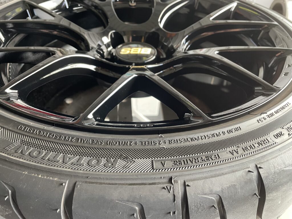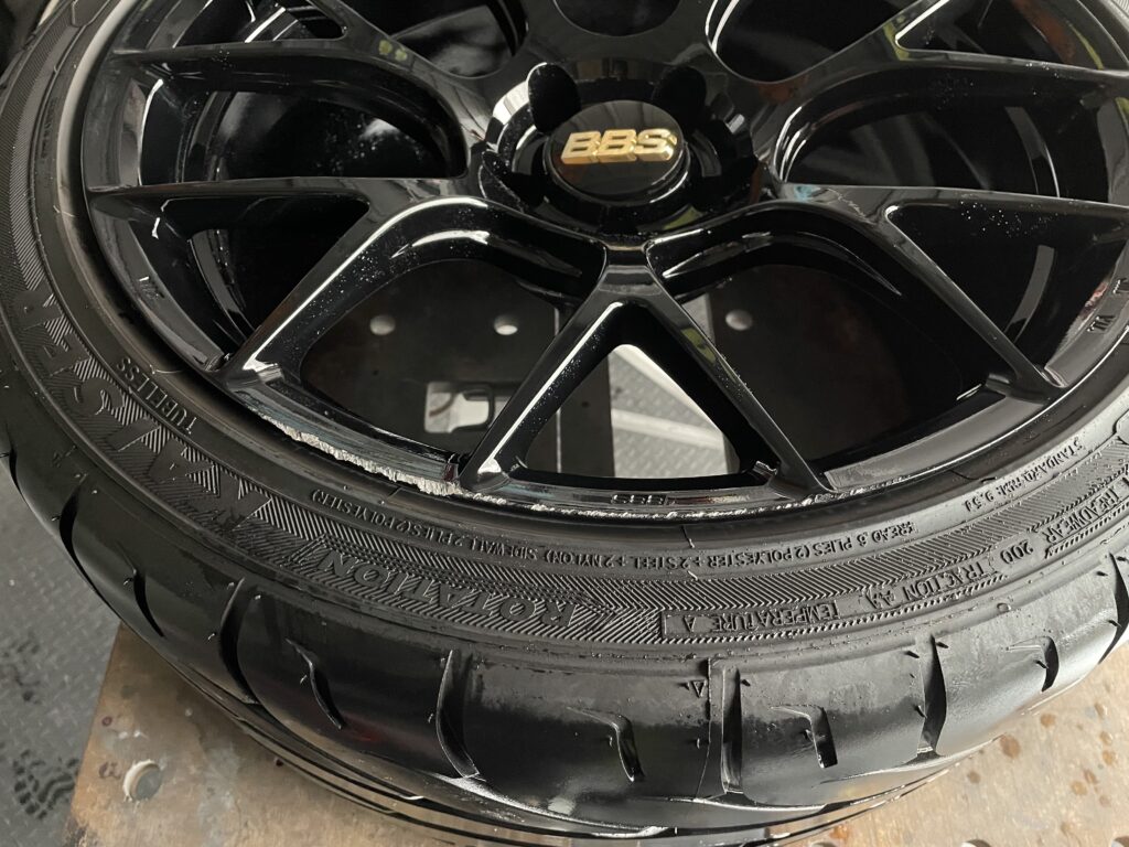 本日の施工はスバルレヴォーグSTIスポーツ#の純正BBSホイールガリキズをスーパーブラックハイラスター塗装でリペアさせていただきました。