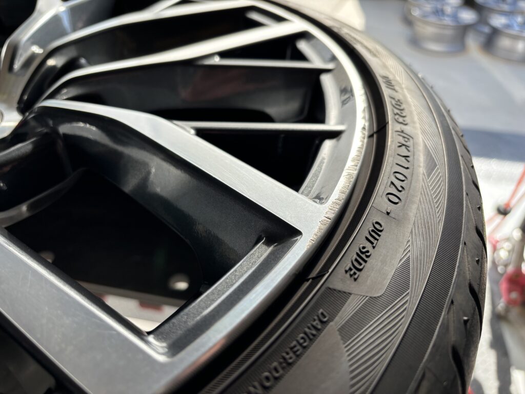 本日はフォルクスワーゲン販売ディーラーからの依頼でパサート純正ホイールガリキズを形状がかわらないようアルミパテを充填してガンメタ塗装でリペアさせていただきました。