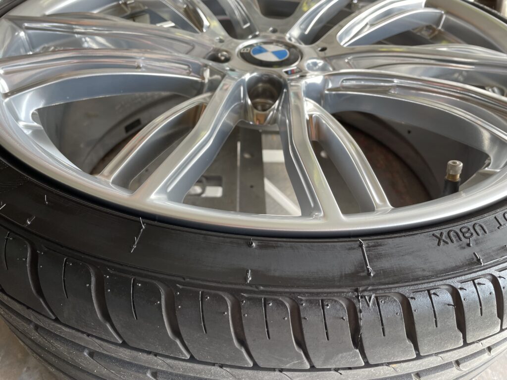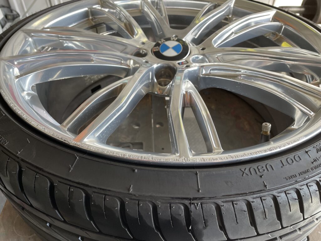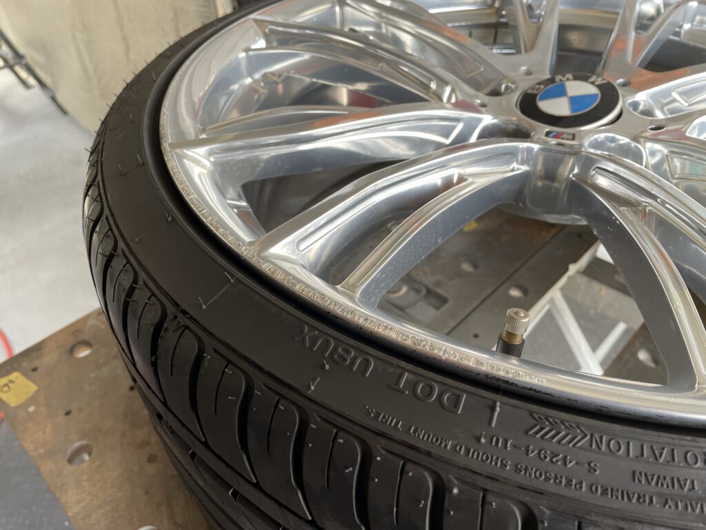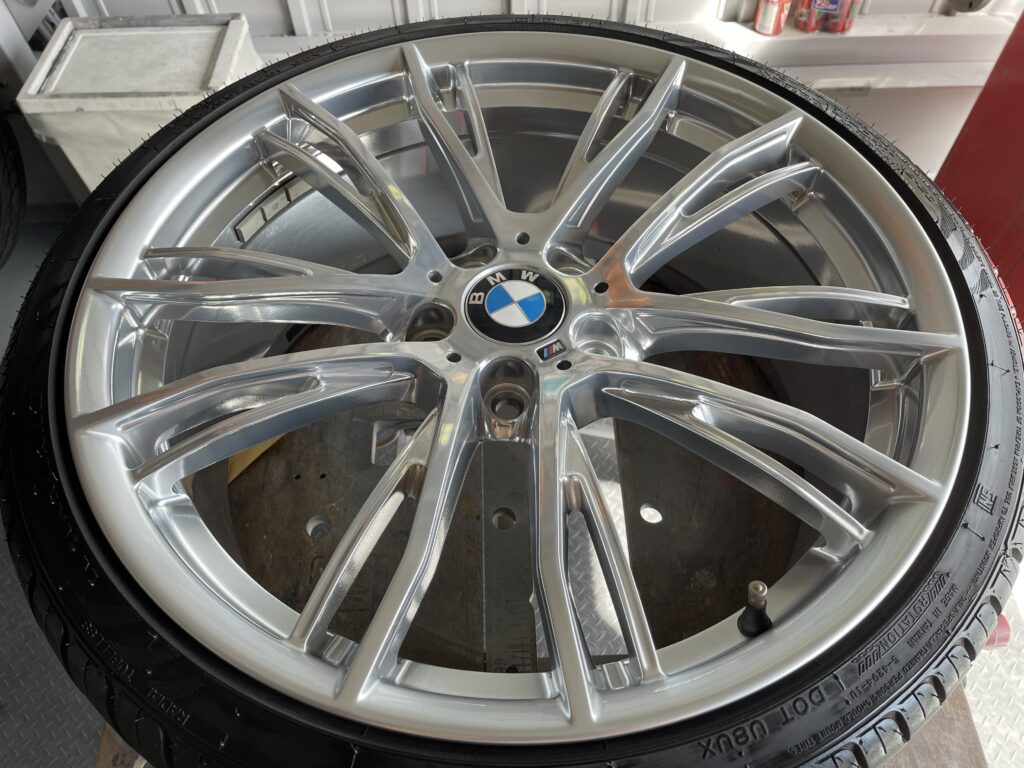 本日の施工はBMW販売ディーラーからの依頼で320i Mパフォーマンスポリッシュホイールガリキズをポリッシュ塗装でリペアさせていただきました。