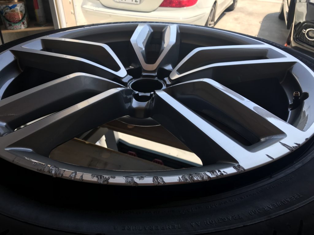 4本ともリムにキズがある状態です、3本はキズが深く研磨では整形ができないため、アルミニウムパテの充填が必要となります。
