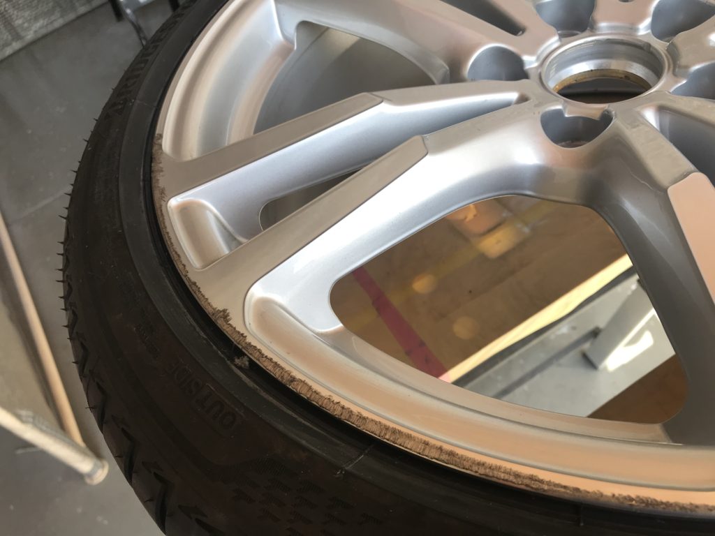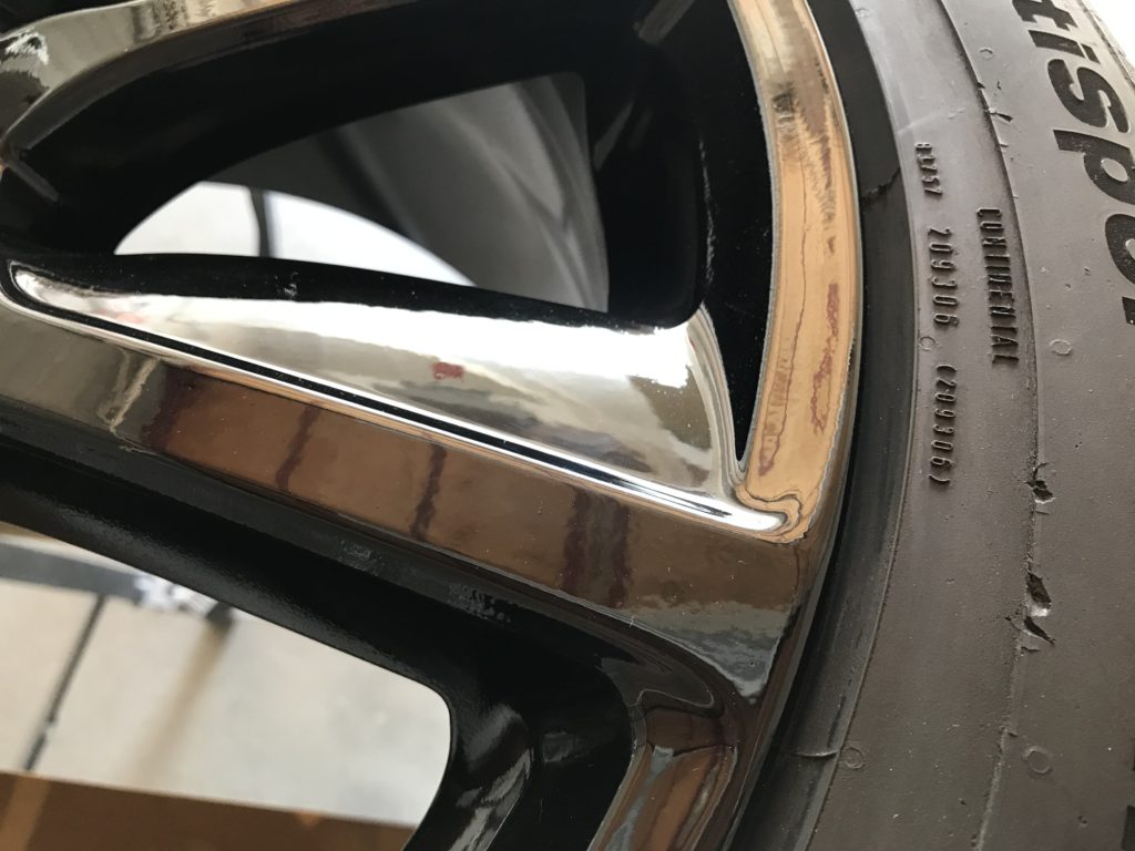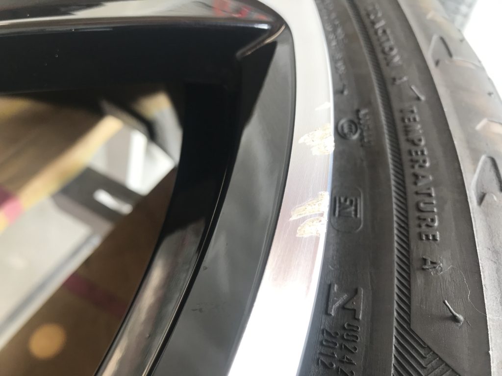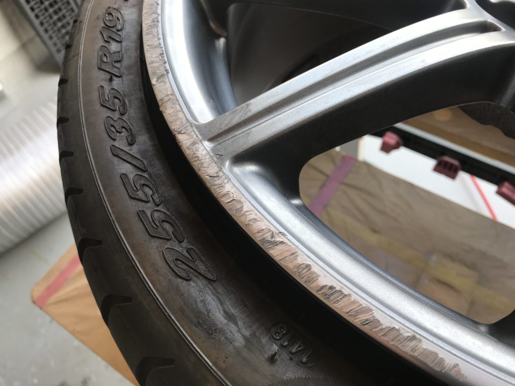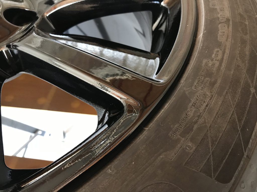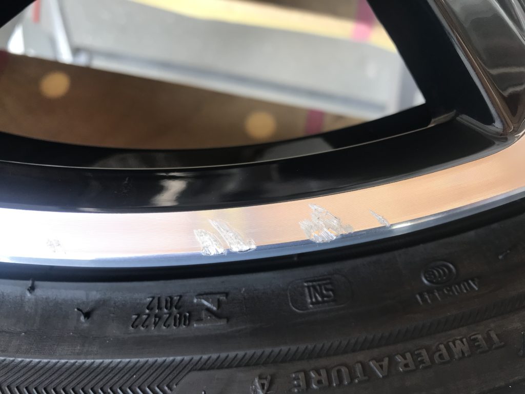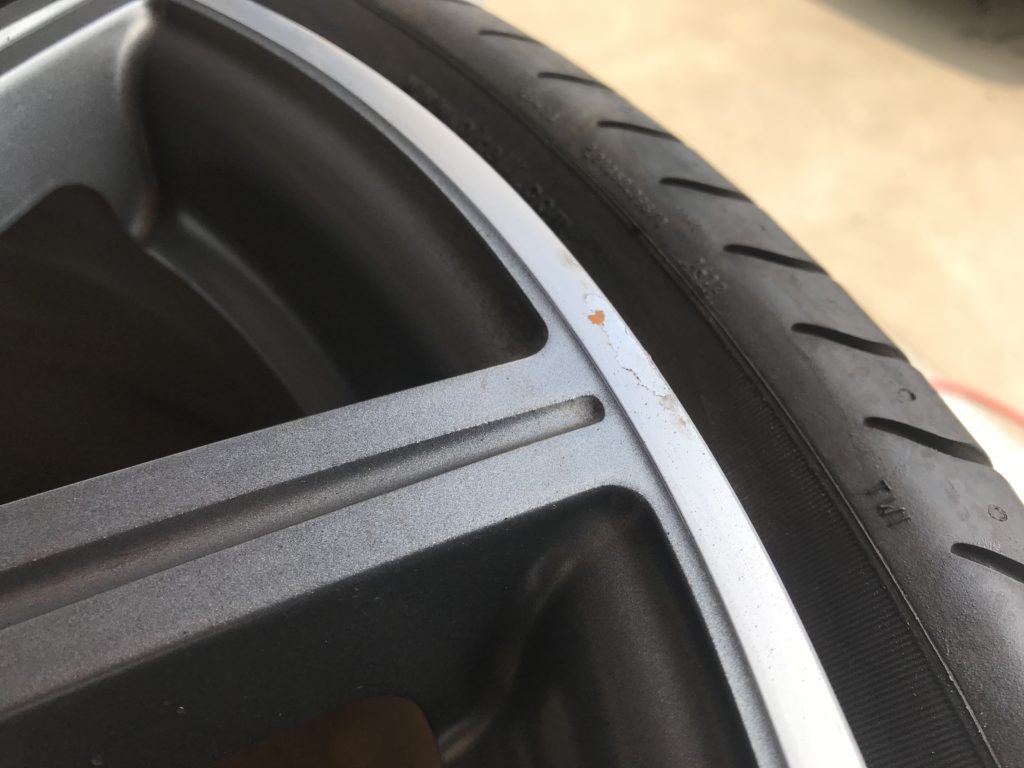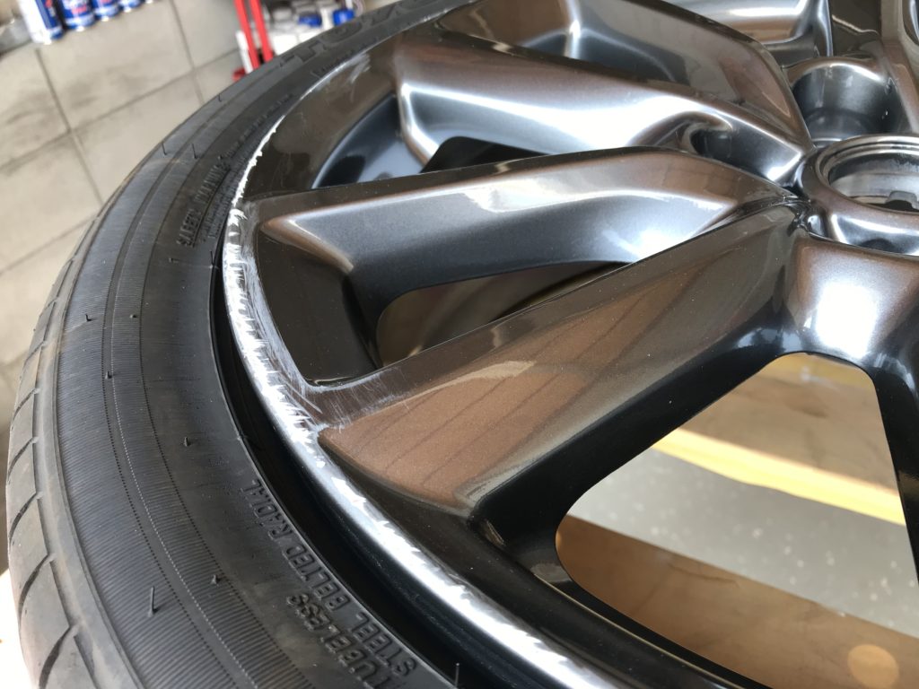 CRAFTS505の施工実績をご覧いただきありがとうございます、本日の施工はレイズレッドライン入りホイールのリムキズをブラック塗装でリペアさせていただきました。