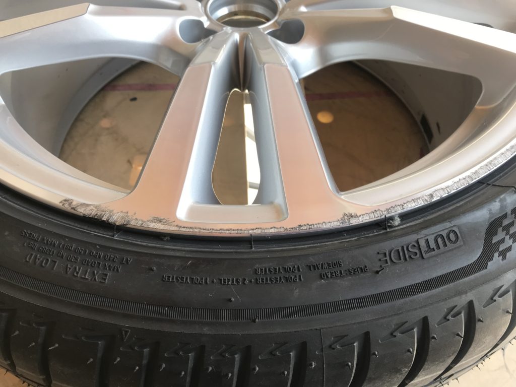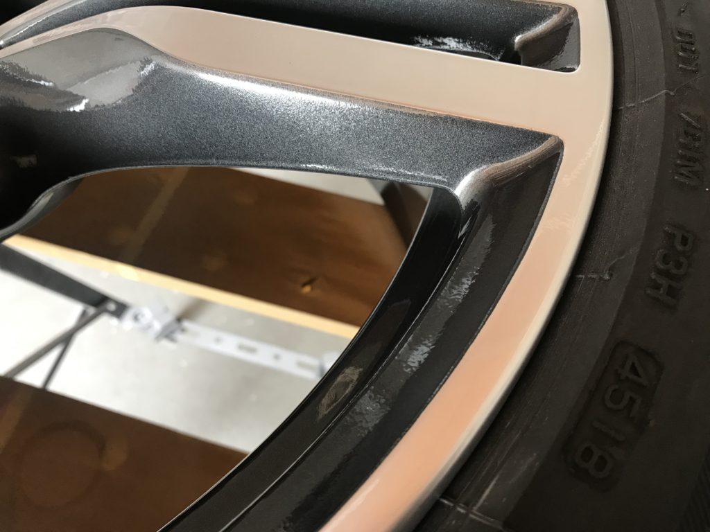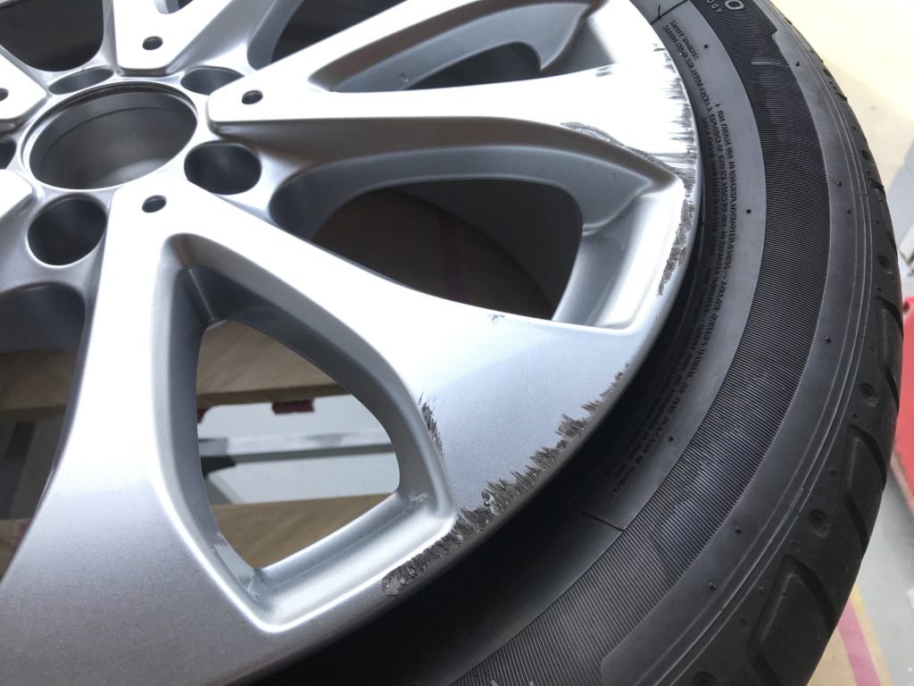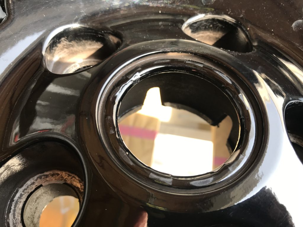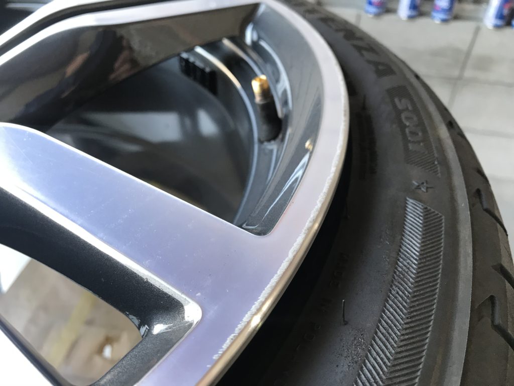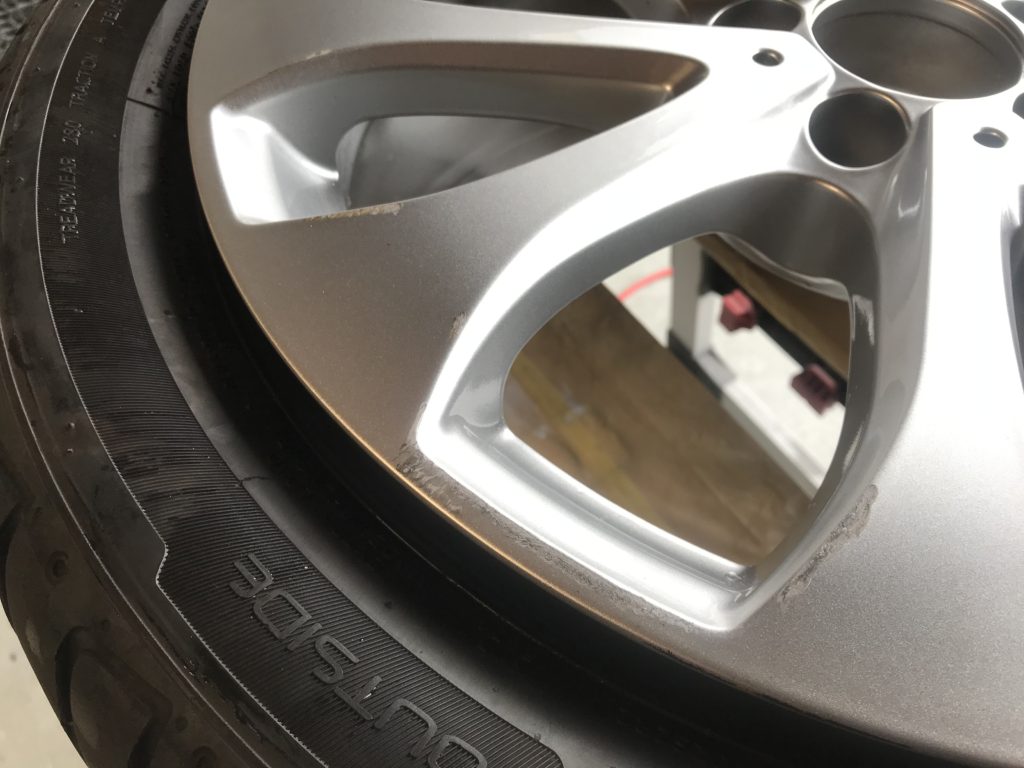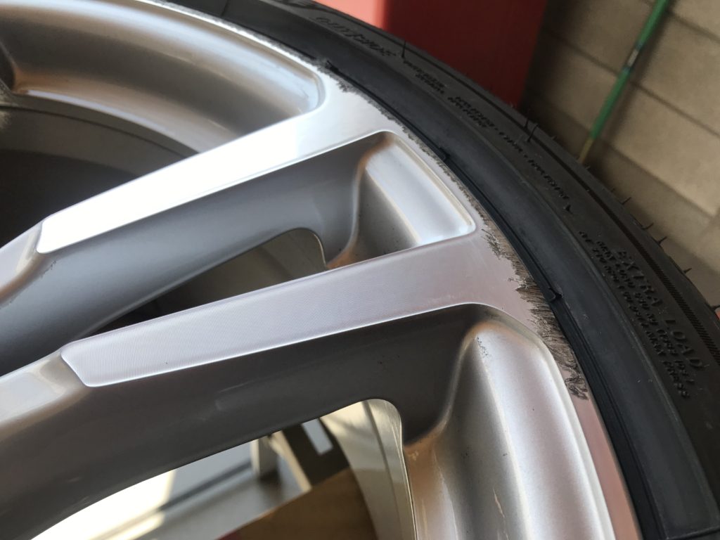 CRAFTS505の施工実績をご覧いただきありがとうございます、本日の施工はレイズレッドライン入りホイールのリムキズをブラック塗装でリペアさせていただきました。