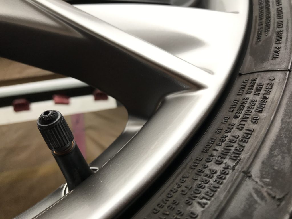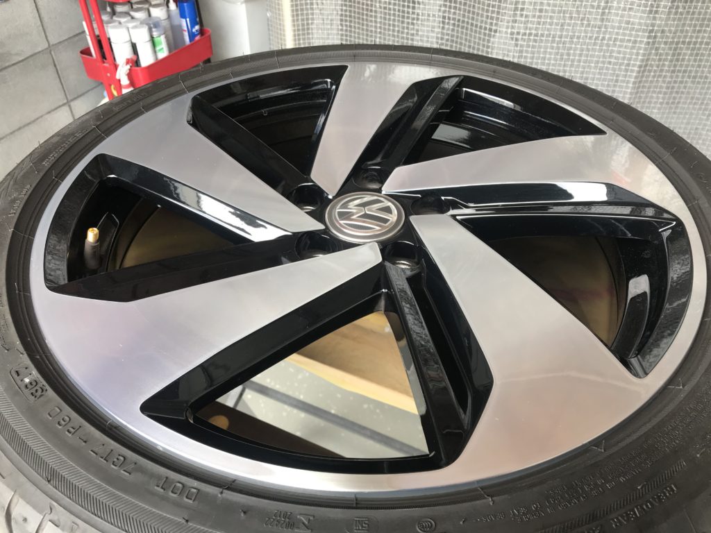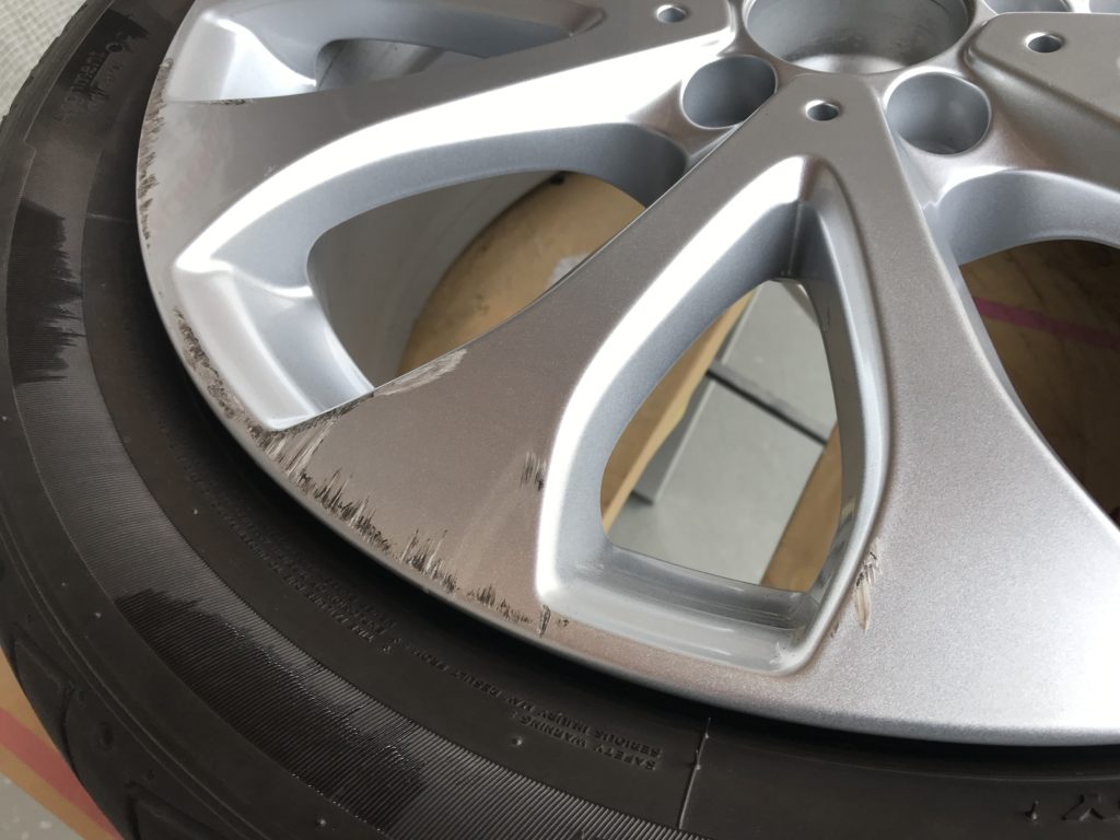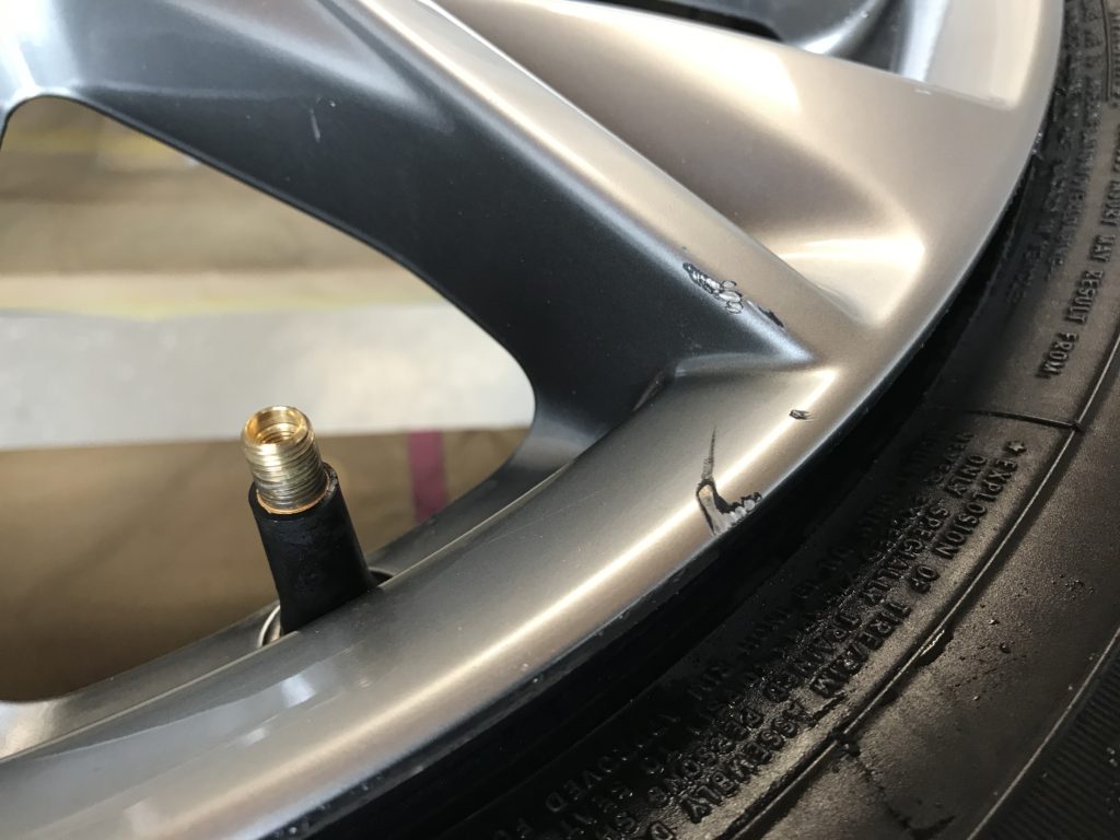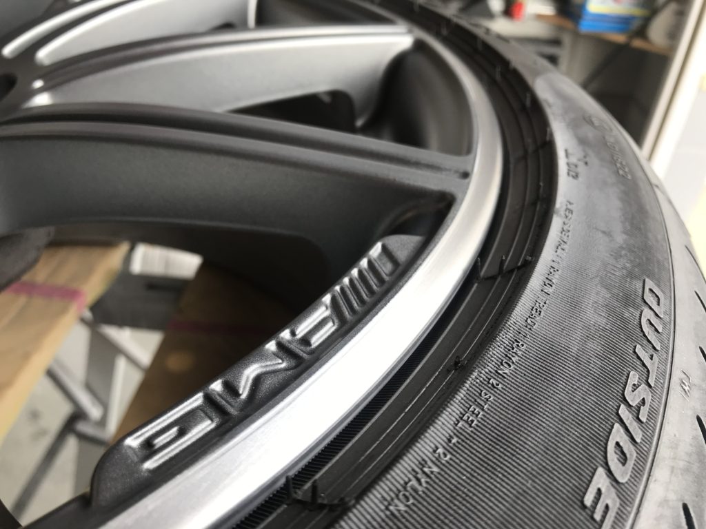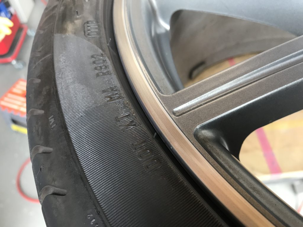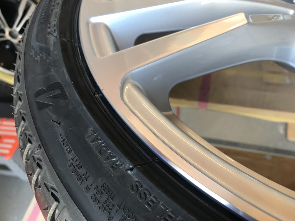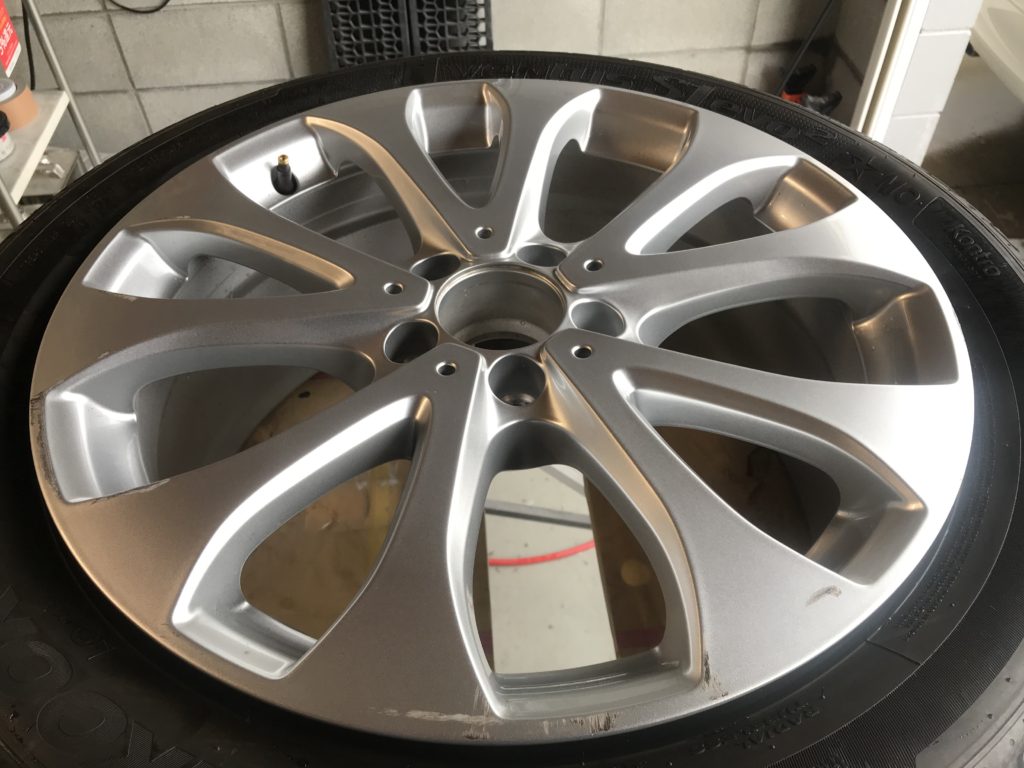 CRAFTS505の施工実績をご覧いただきありがとうございます、本日の施工はレイズレッドライン入りホイールのリムキズをブラック塗装でリペアさせていただきました。