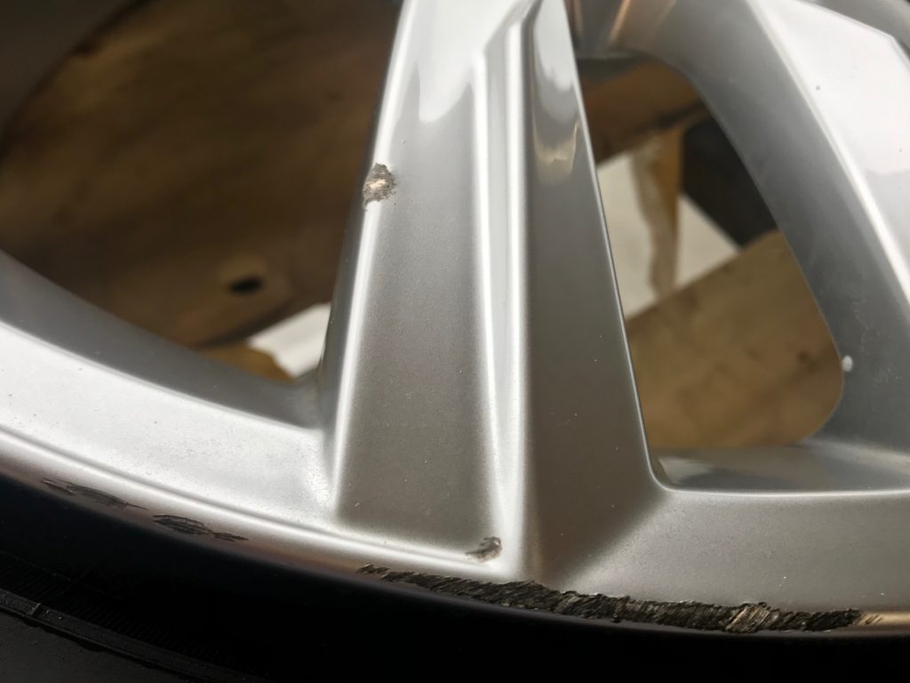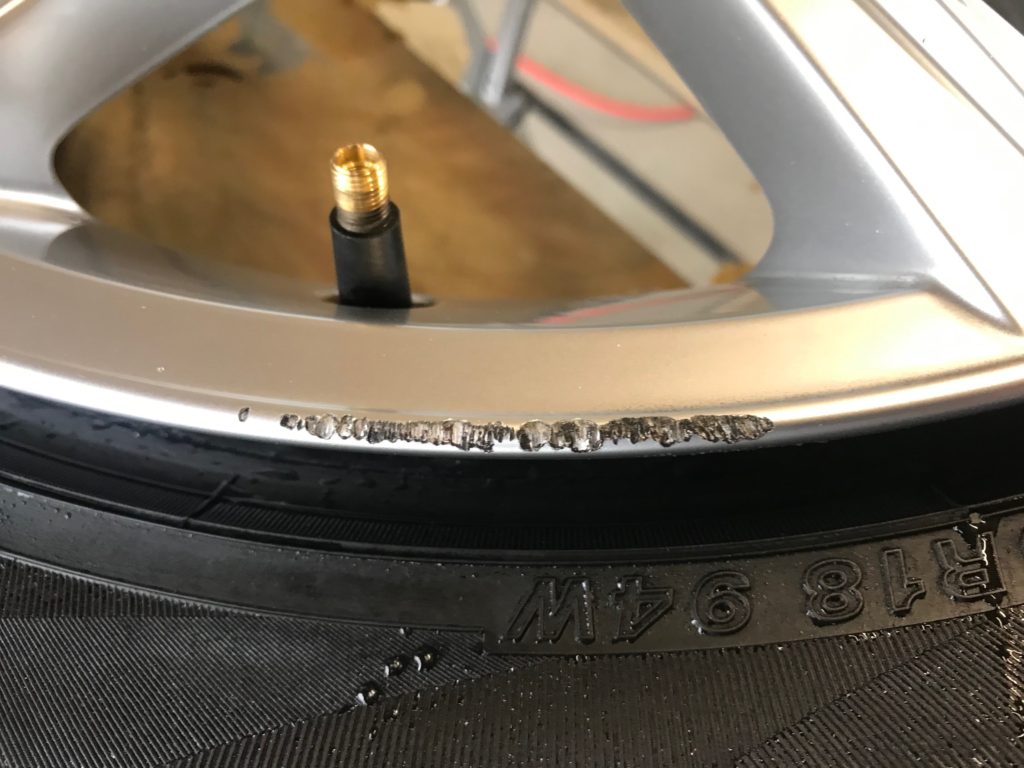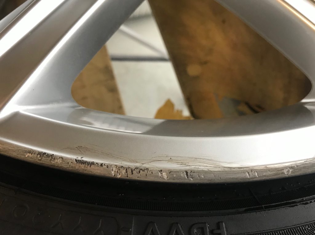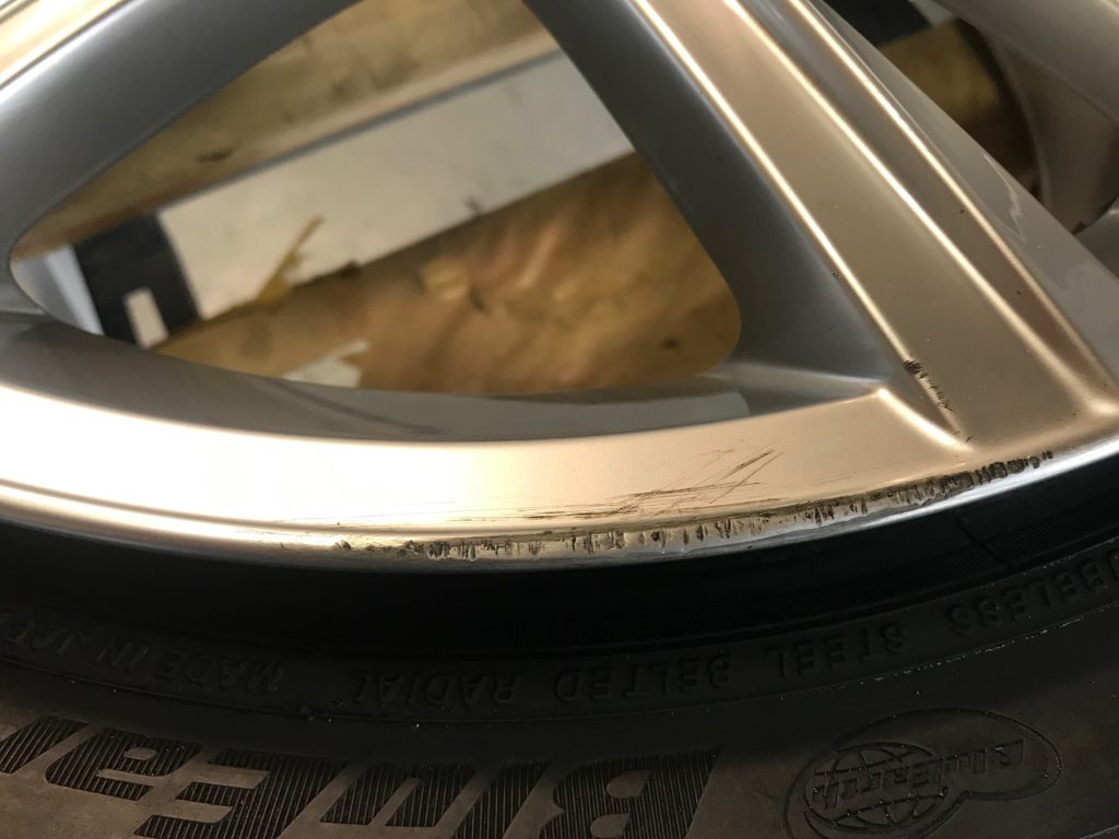 販売店様からのご依頼をいただきハイパーシルバーのアルミホイールをリペアさせていただきました。ご依頼いただいた傷は2箇所でしたが、所々飛び石でのキズやクリアの剥がれなどが多数ある状態でした、通常はご依頼いただいた箇所以外の施工はしませんが私が気になってしまい目立つ箇所は施工してしまいました。