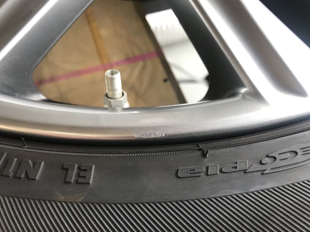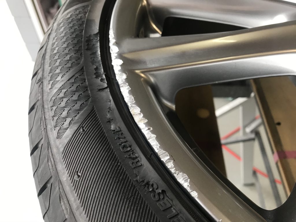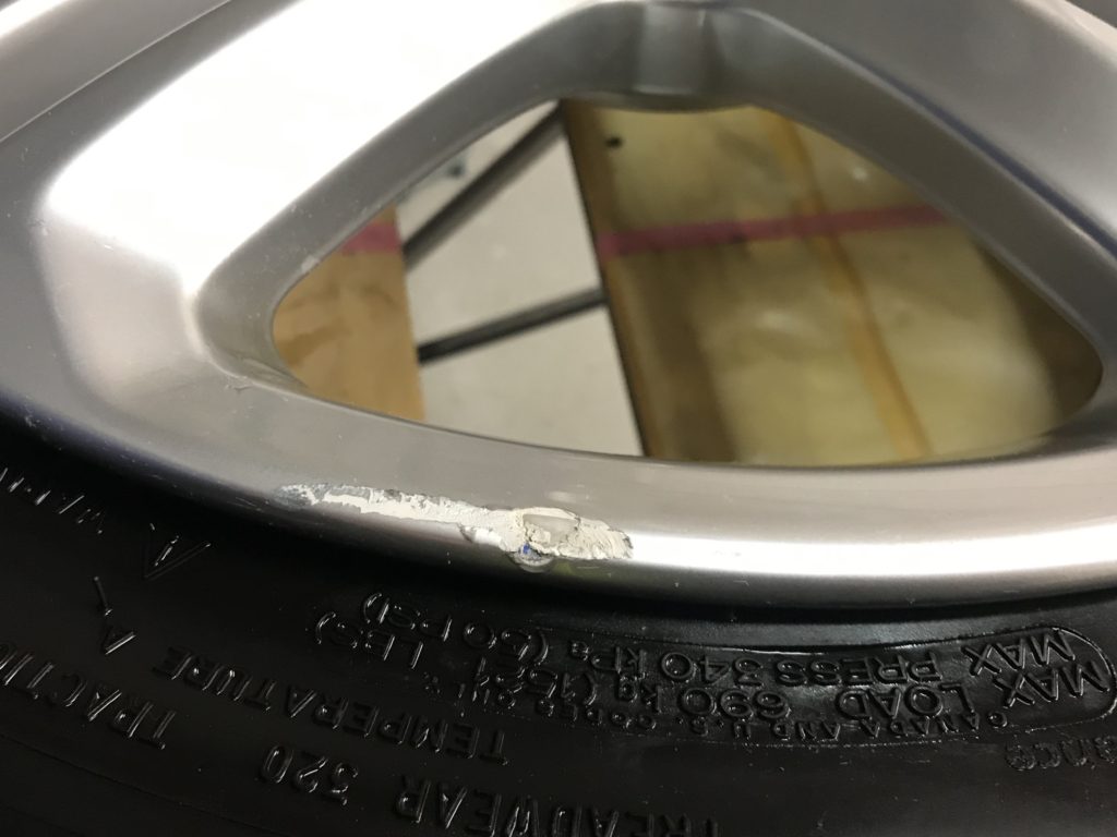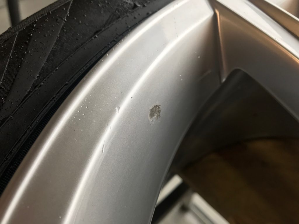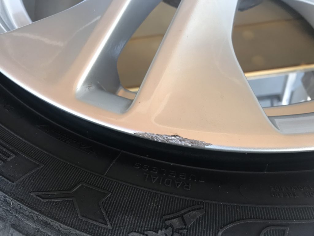 販売店様からのご依頼をいただきハイパーシルバーのアルミホイールをリペアさせていただきました。ご依頼いただいた傷は2箇所でしたが、所々飛び石でのキズやクリアの剥がれなどが多数ある状態でした、通常はご依頼いただいた箇所以外の施工はしませんが私が気になってしまい目立つ箇所は施工してしまいました。