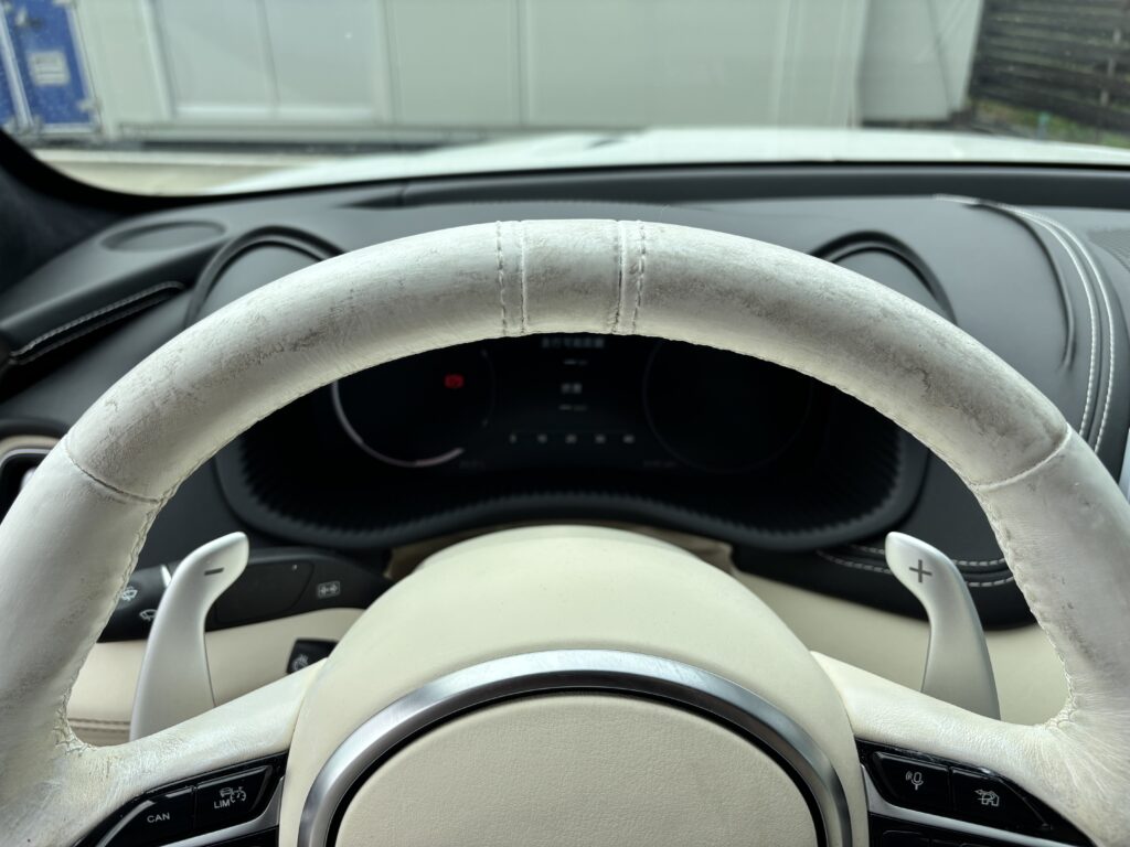 本日はASTON MARTIN DBX1913EDITIONの本革/レザーステアリングの表皮劣化を本革風塗装でリペアさせていただきました。