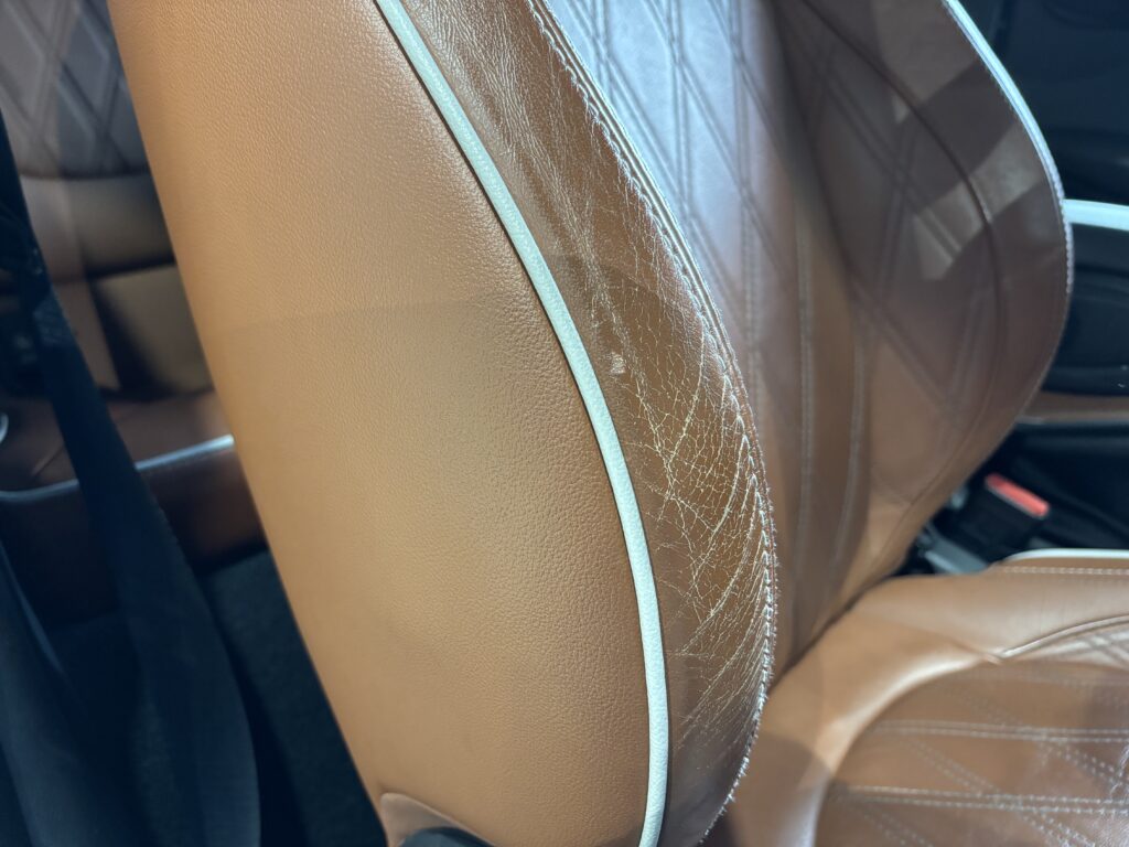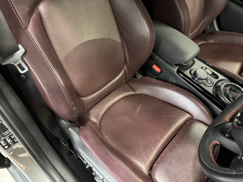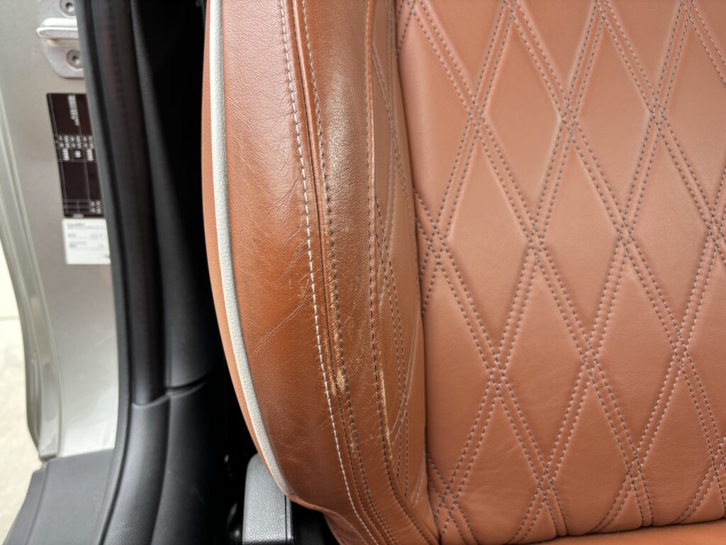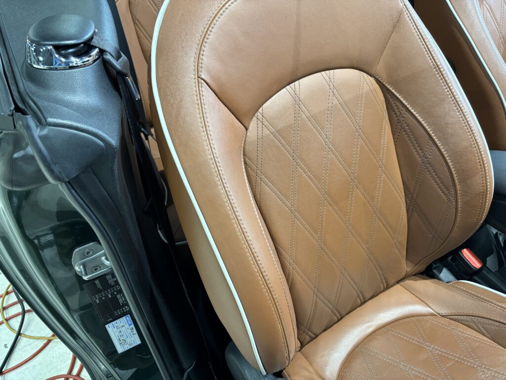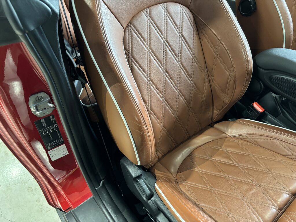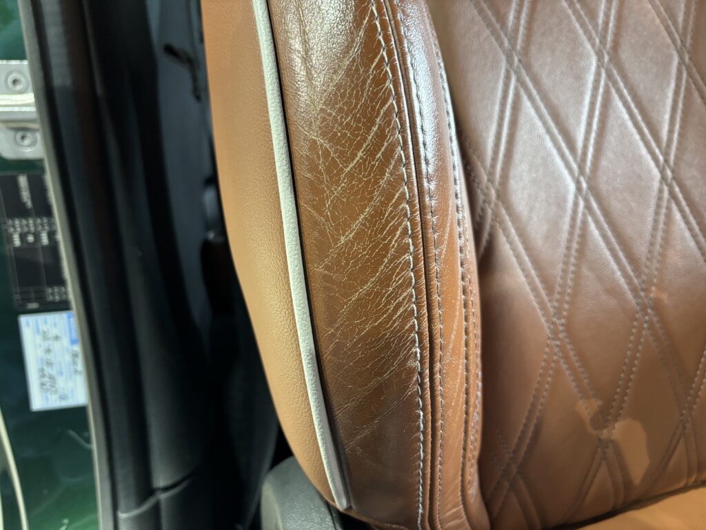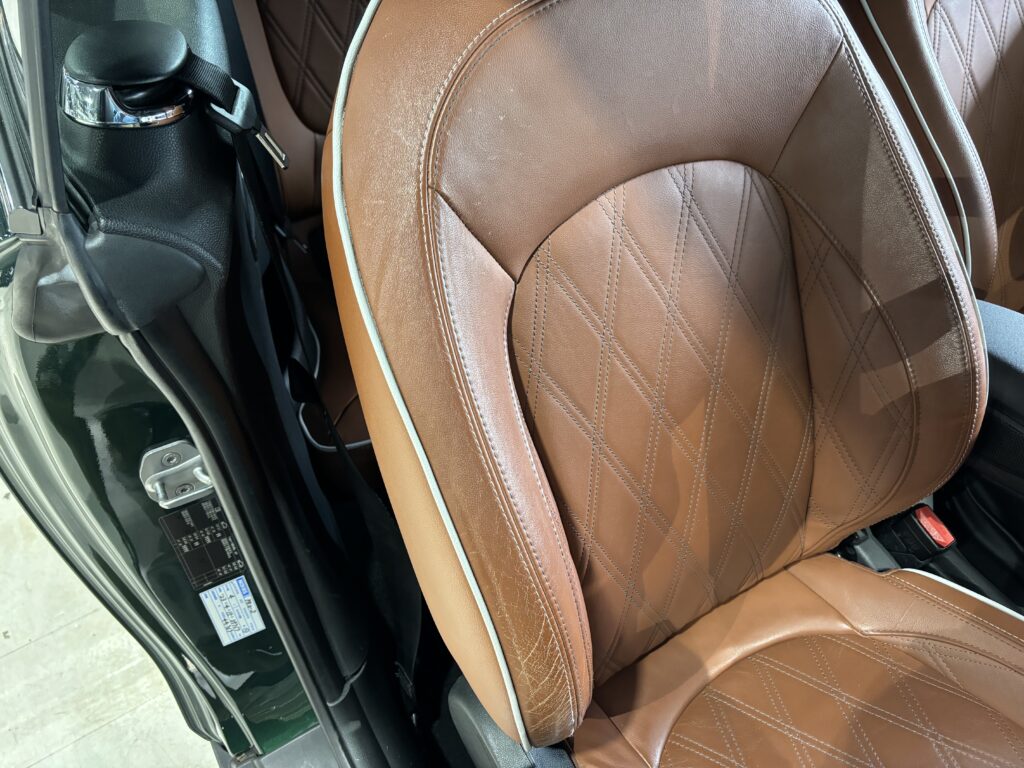 本日はシトロエン・DS3の本革/レザーシート劣化をレザー用パテを充填して表面を整え本革風塗装でリペアさせていただきました。