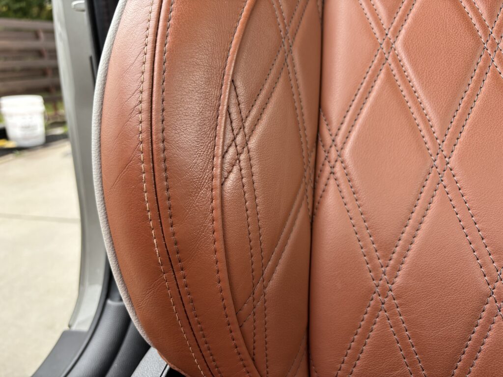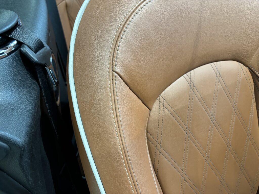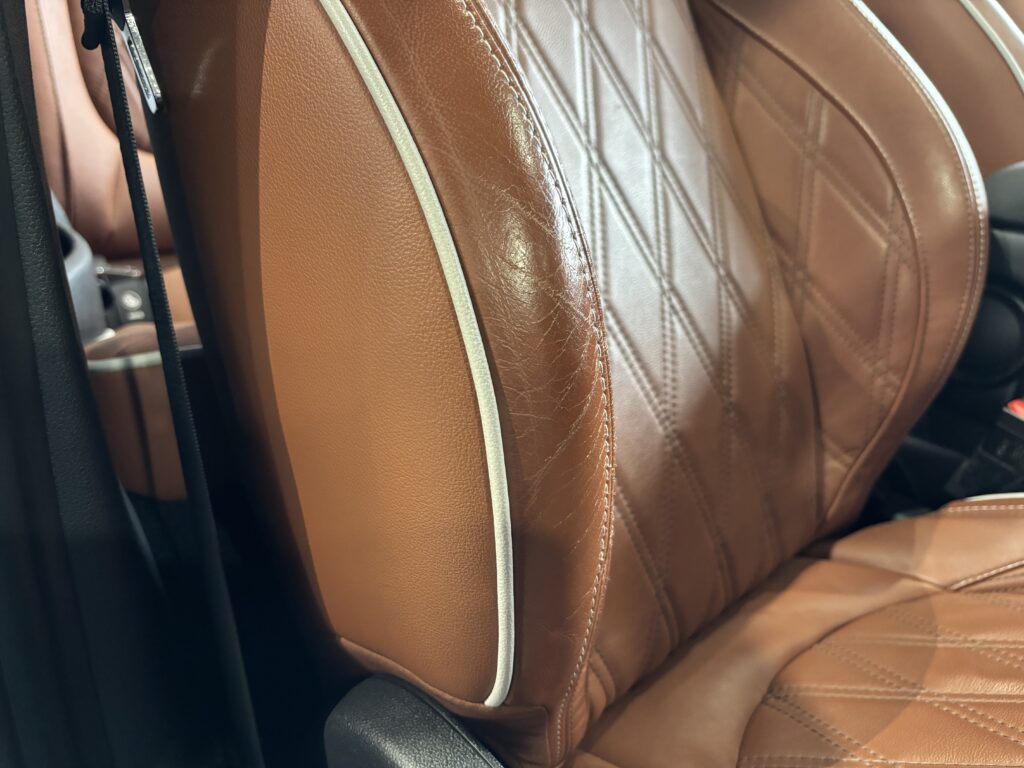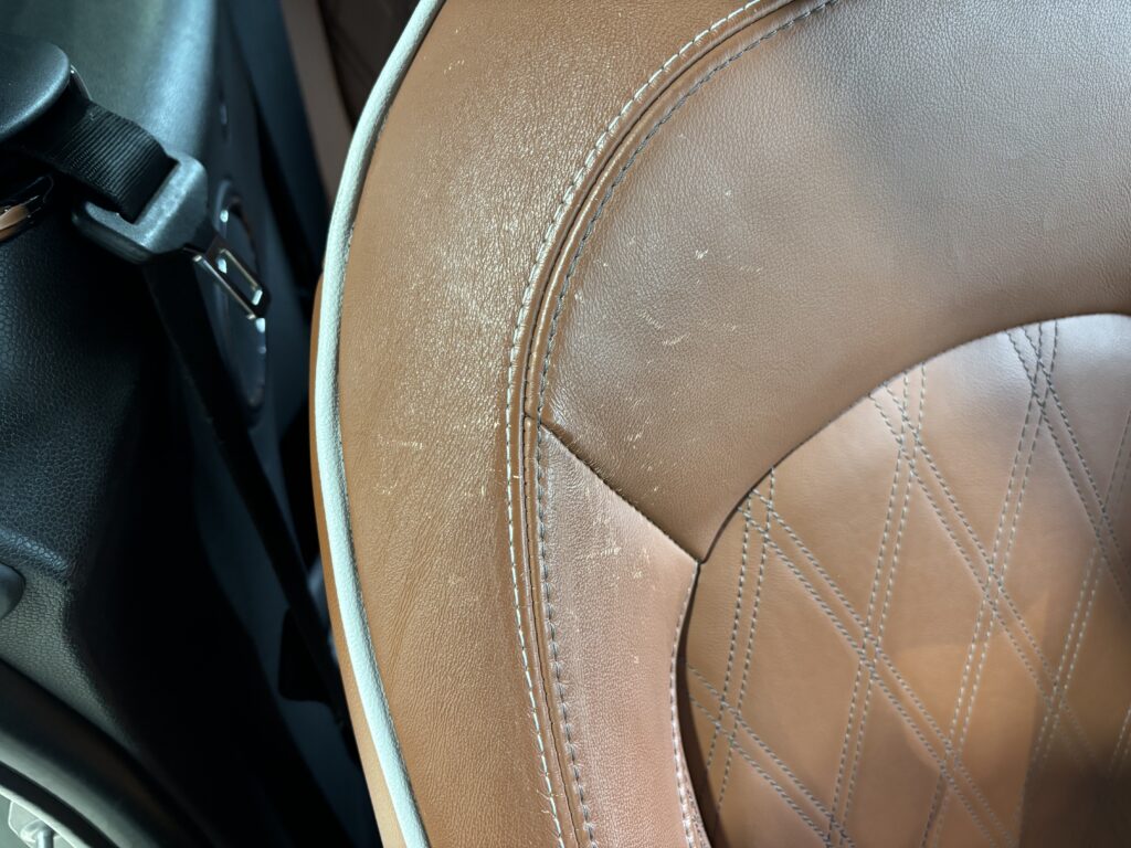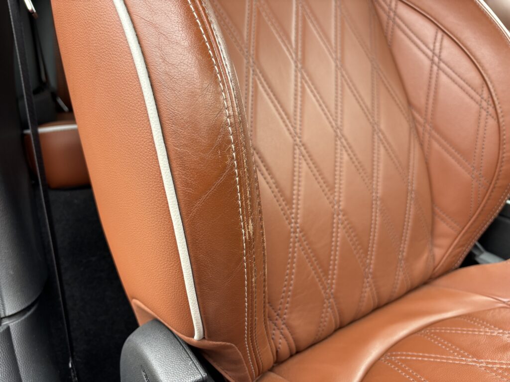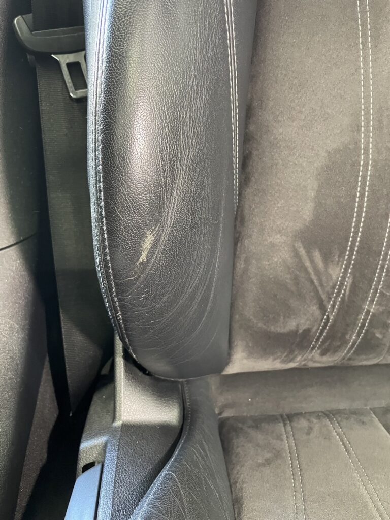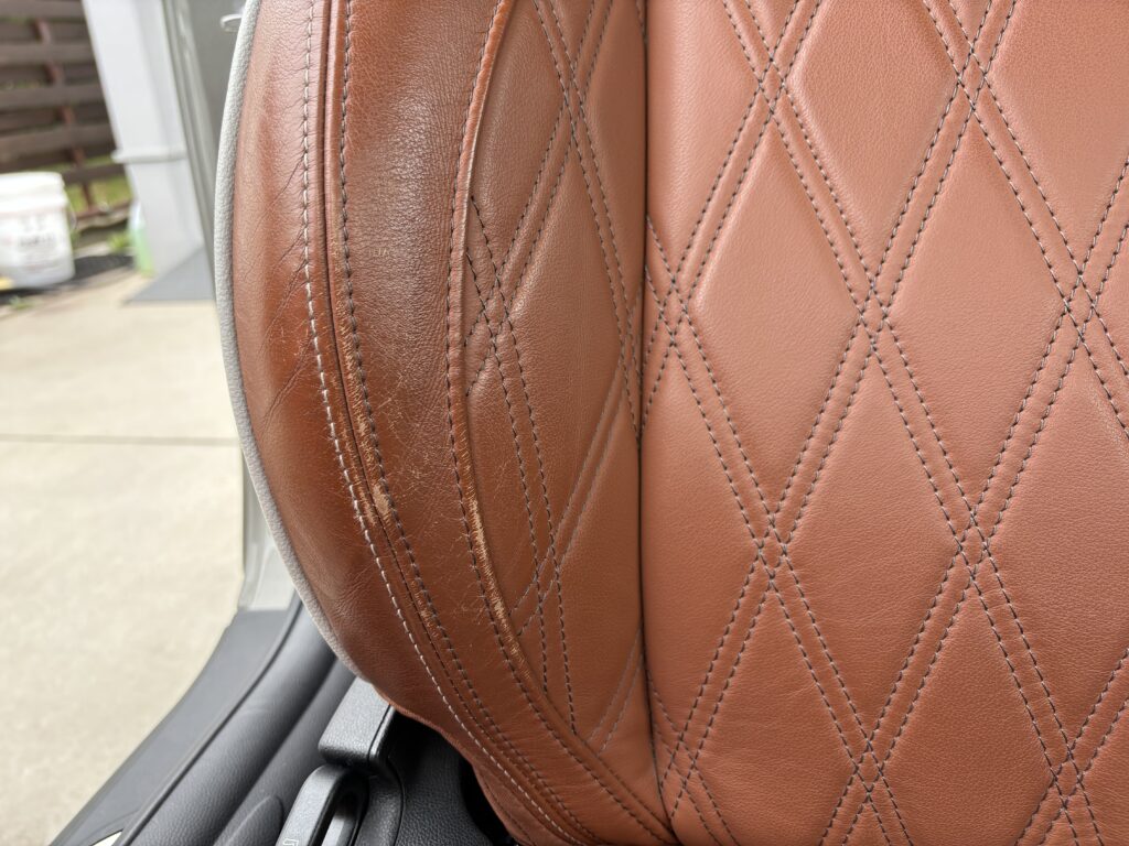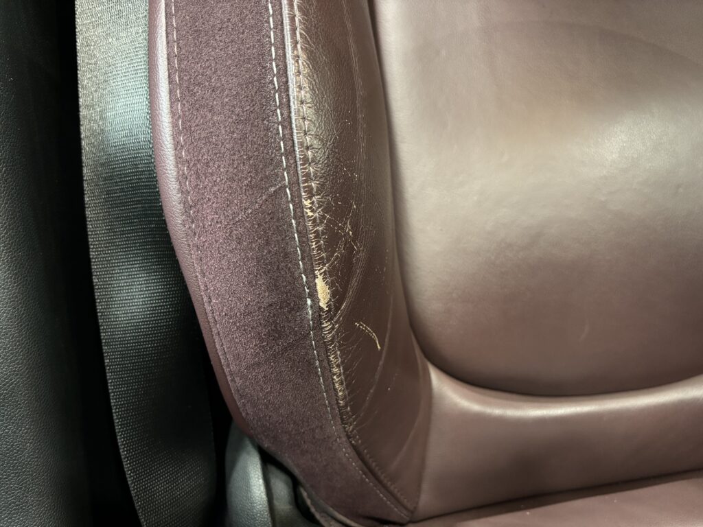 本日はシトロエン・DS3の本革/レザーシート劣化をレザー用パテを充填して表面を整え本革風塗装でリペアさせていただきました。