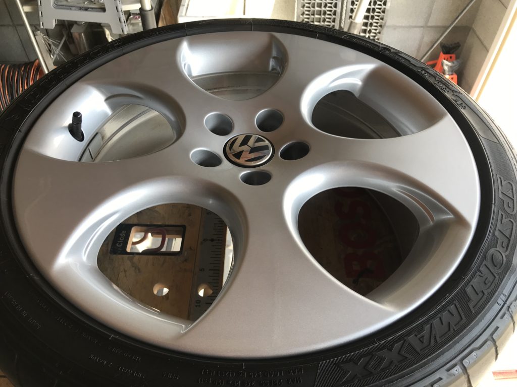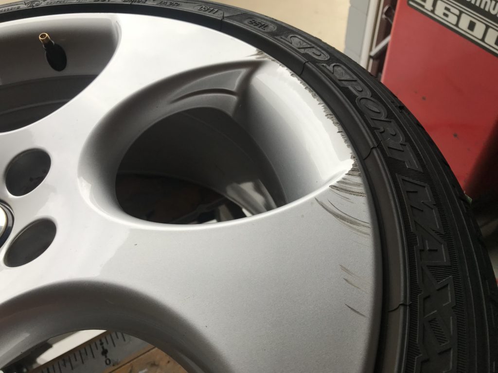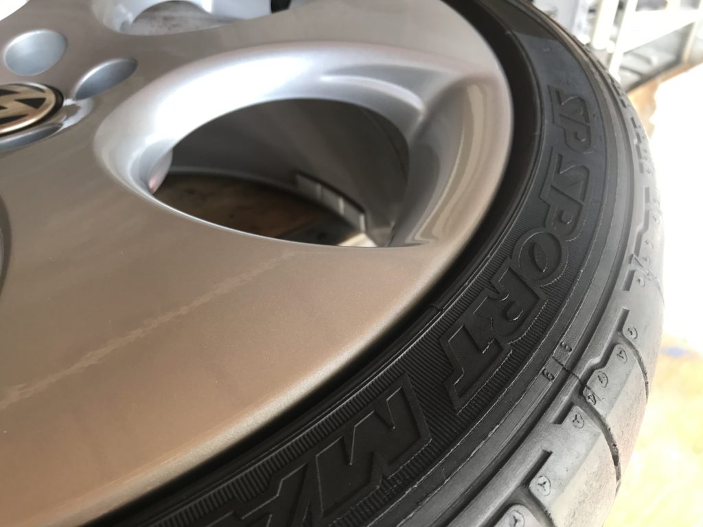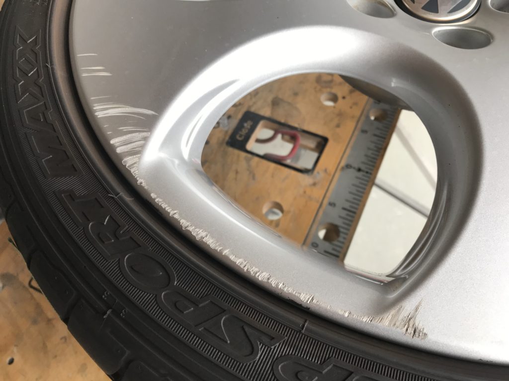 CRAFTS505の施工実績をご覧いただきありがとうございます、本日はミニクーパーのホイール を当日仕上げでリペアさせていただきました。キズはリム一周にあり、キズの他に厄介な鉄粉の付着が全体にあるため少々時間をかけ除去してシルバー塗装でリペアさせていただきました。