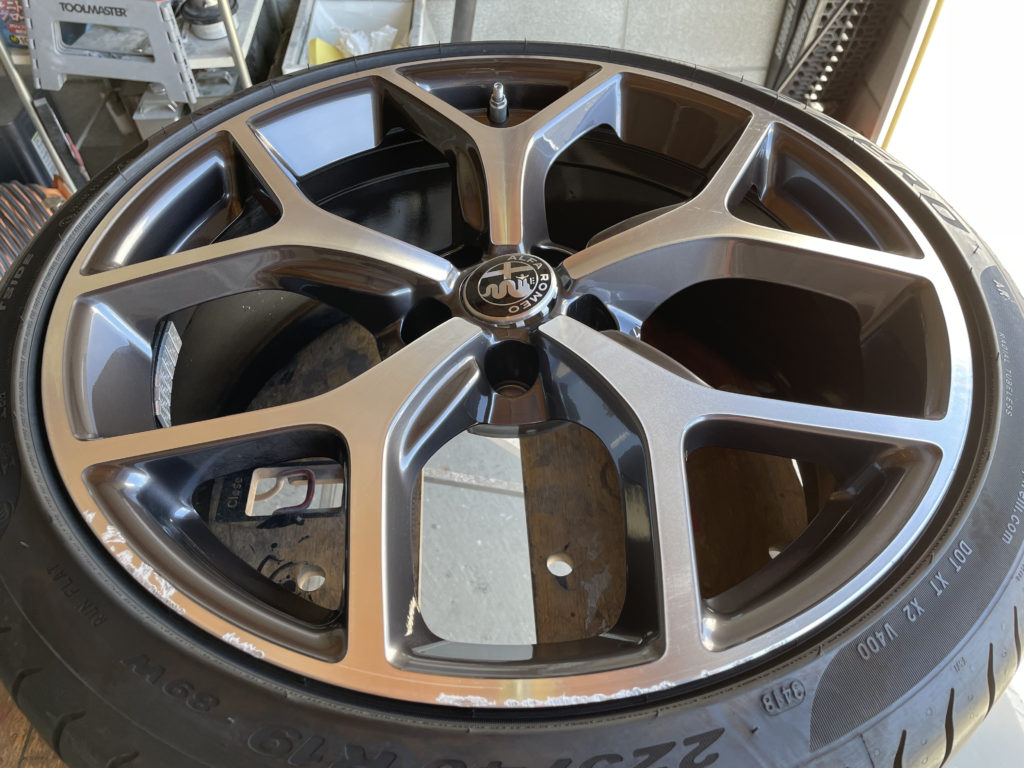 CRAFTS505の施工実績をご覧いただきありがとうございます、本日はアルファロメオ ジュリアの純正ダイヤモンドカットポリッシュホイールガリキズ をポリッシュ塗装でリペアさせていただきました。