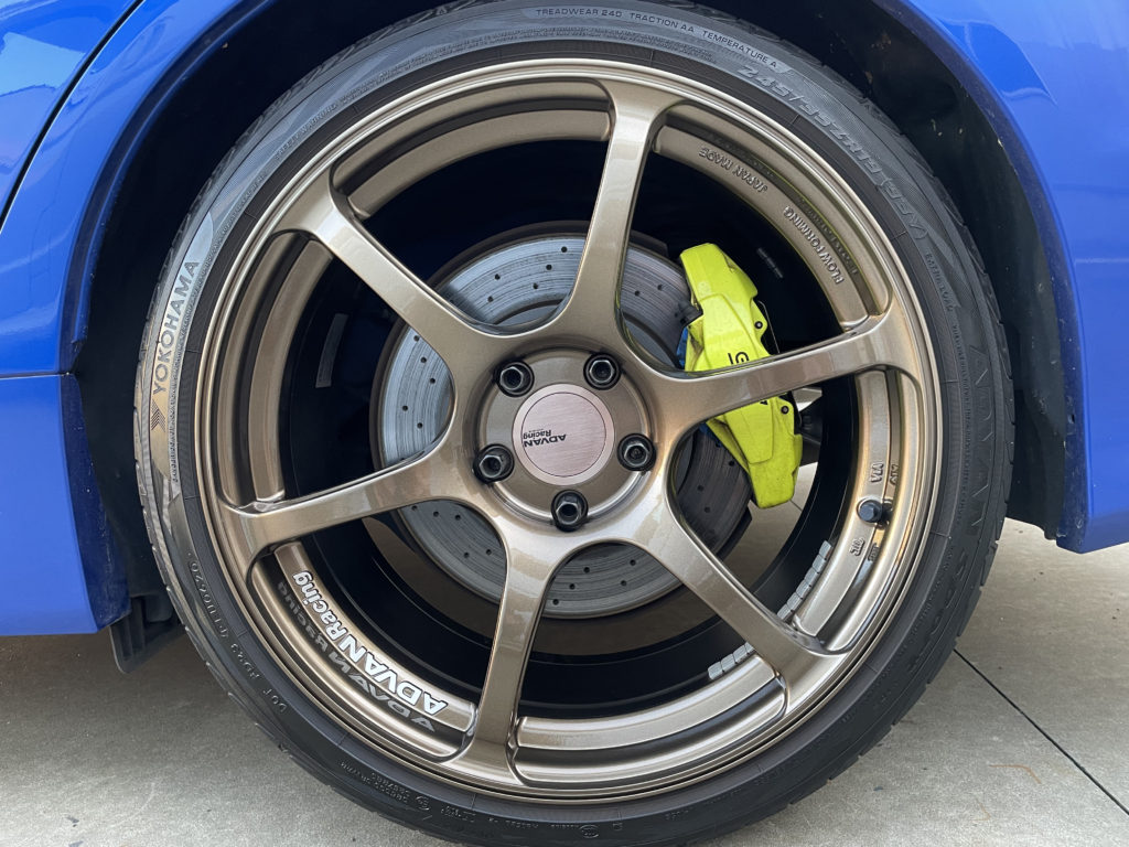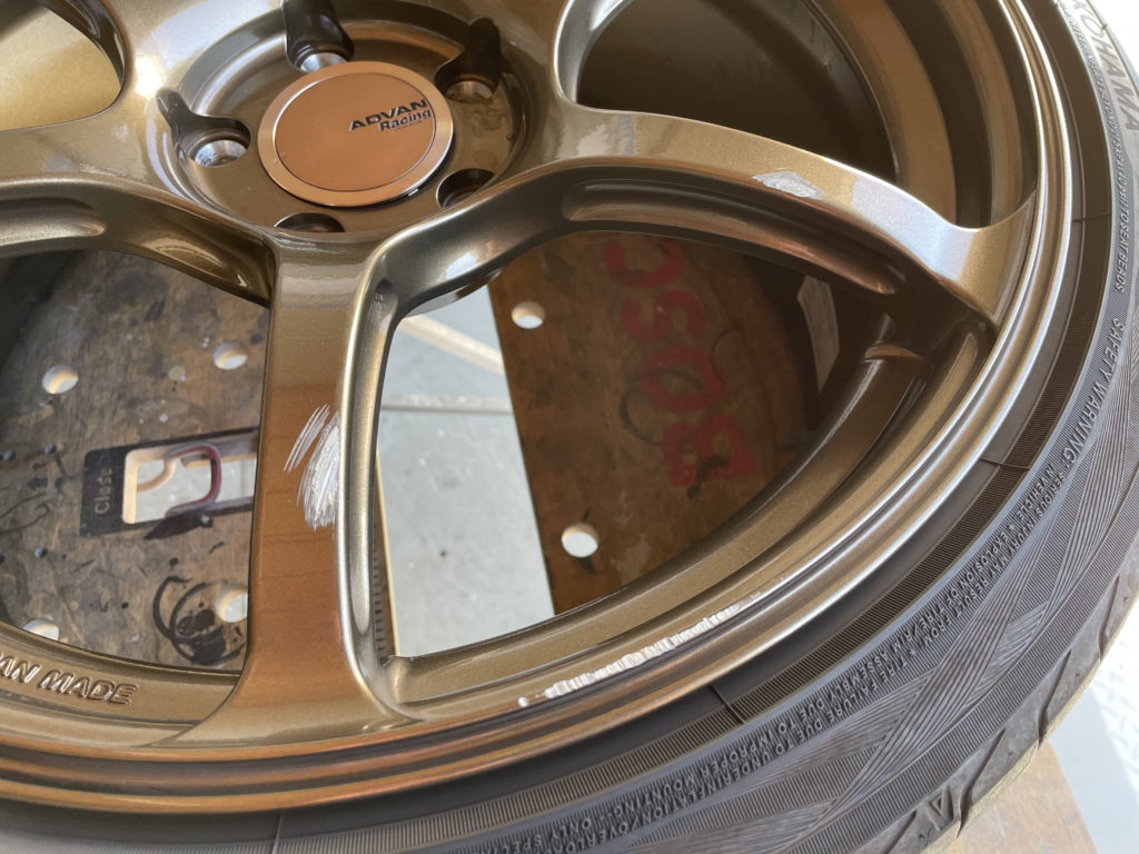 CRAFTS505の施工実績をご覧いただきありがとうございます、本日はスバルWRX STI装着のアドバンレーシングブロンズホイールガリキズをブロンズ塗装でリペアさせていただきました。
