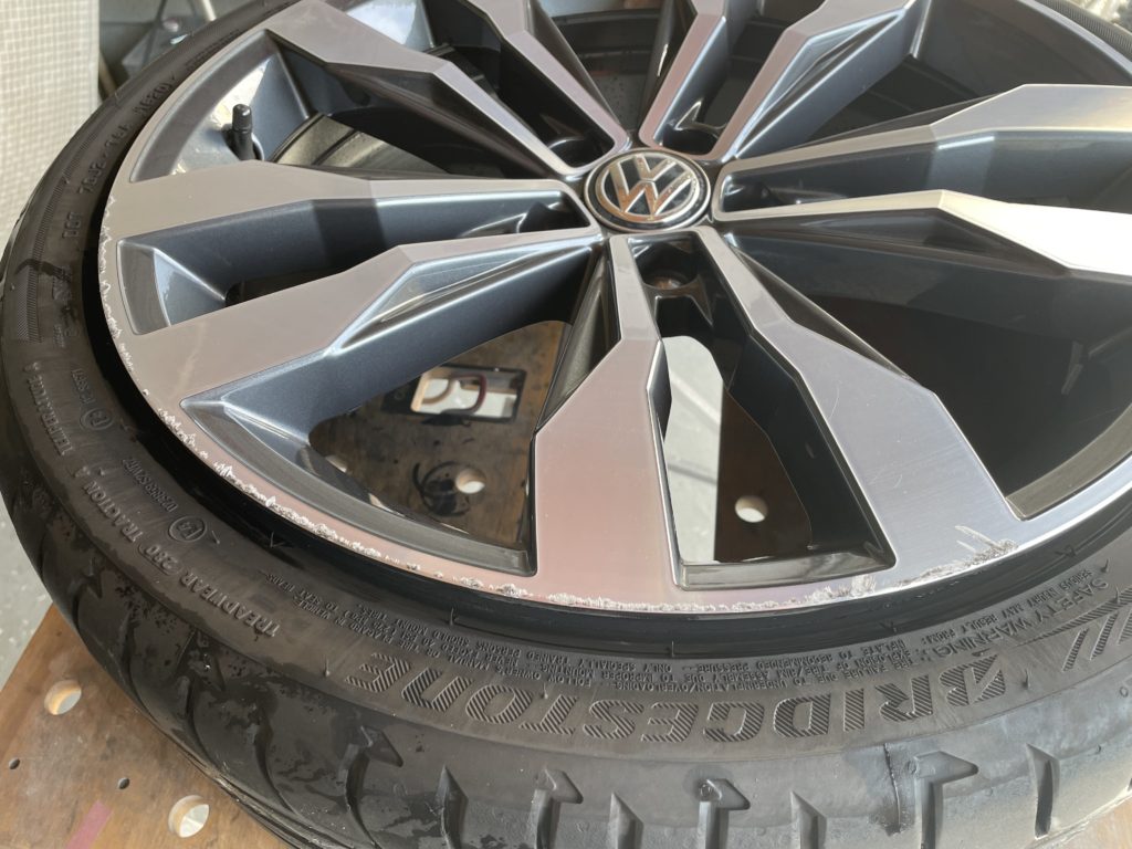 CRAFTS505の施工実績をご覧いただきありがとうございます、本日はフォルクスワーゲン販売ディーラー様からTロック純正ガンメタ/ダイヤモンドカットポリッシュホイールガリキズをポリッシュ塗装でリペアさせていただきました。