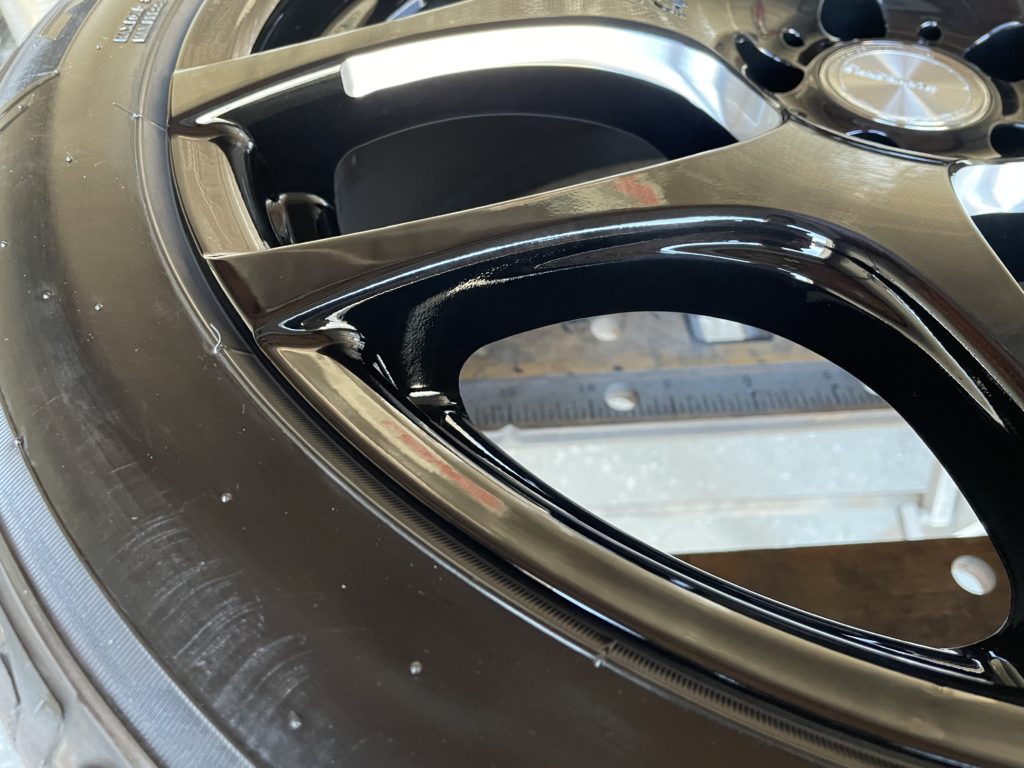 CRAFTS505の施工実績をご覧いただきありがとうございます、本日はカスタマイズショップ様よりヴァルケンBTCベーシックのグロスブラックホイールガリキズ をグロスブラック塗装でリペアさせていただきました。