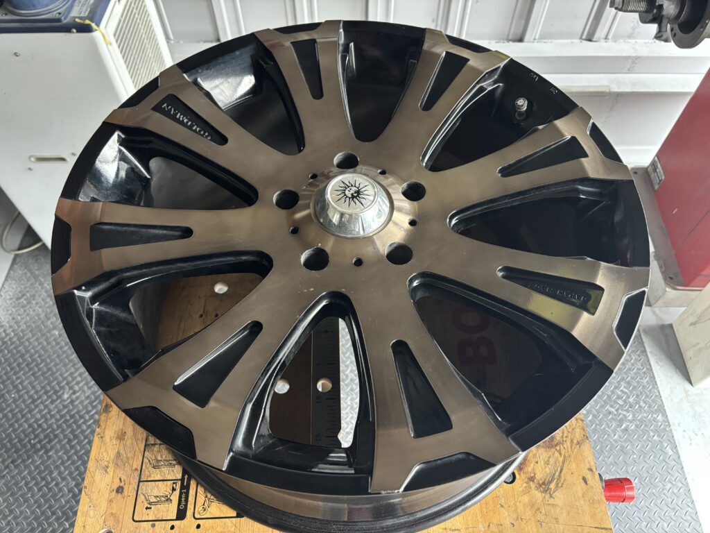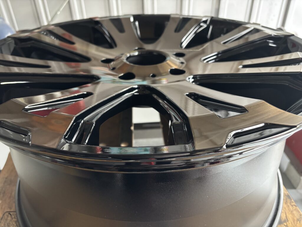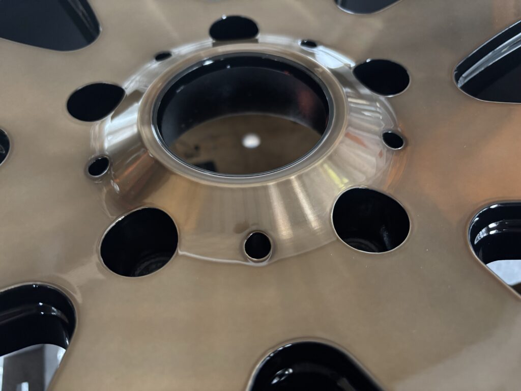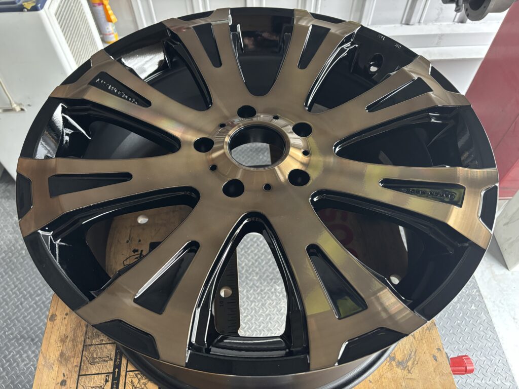 本日はクリムソン ゴールドマンクルーズ ブラック/ゴールドポリッシュホイールキズをダイヤカット加工を行い、カラークリアー仕上げでリペアさせていただきました。