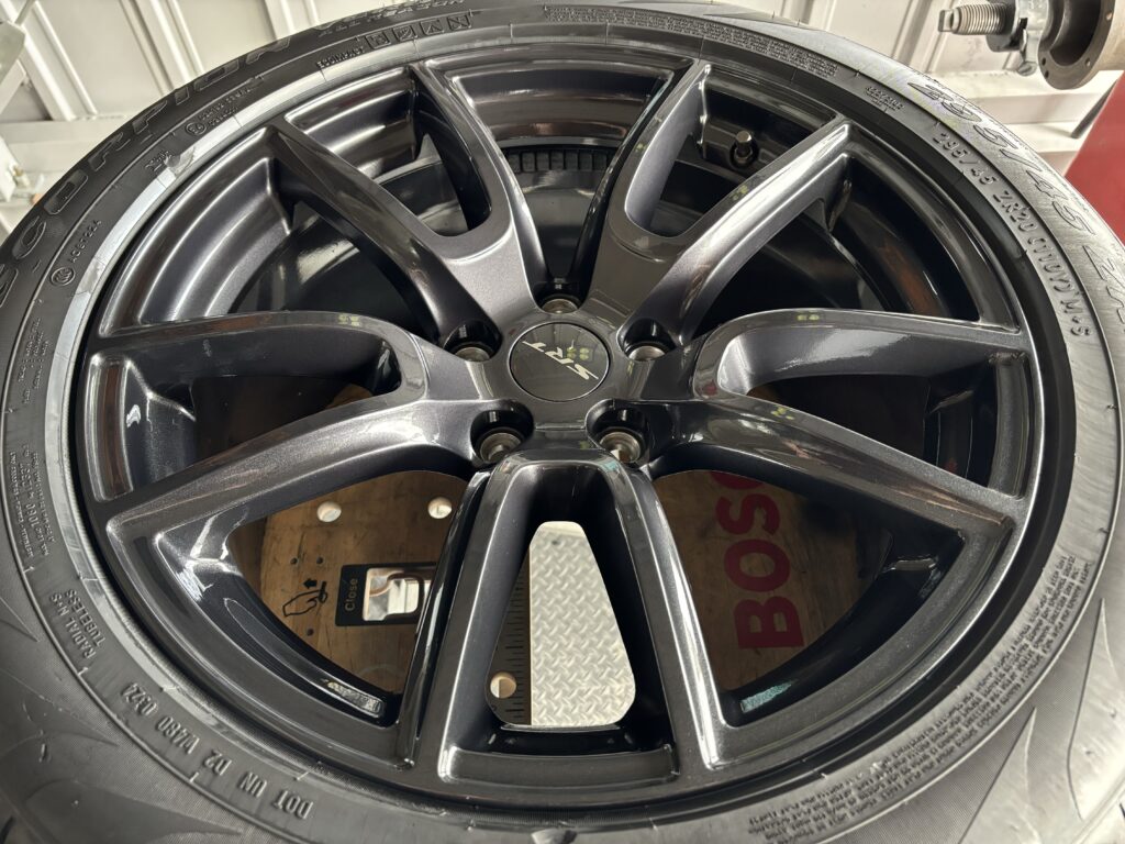 本日はダッジ デュランゴSRT392のアルミホイールガリキズをアルミ硬化パテで丁寧に形状を整え、ガンメタ塗装でリペアさせていただきました。