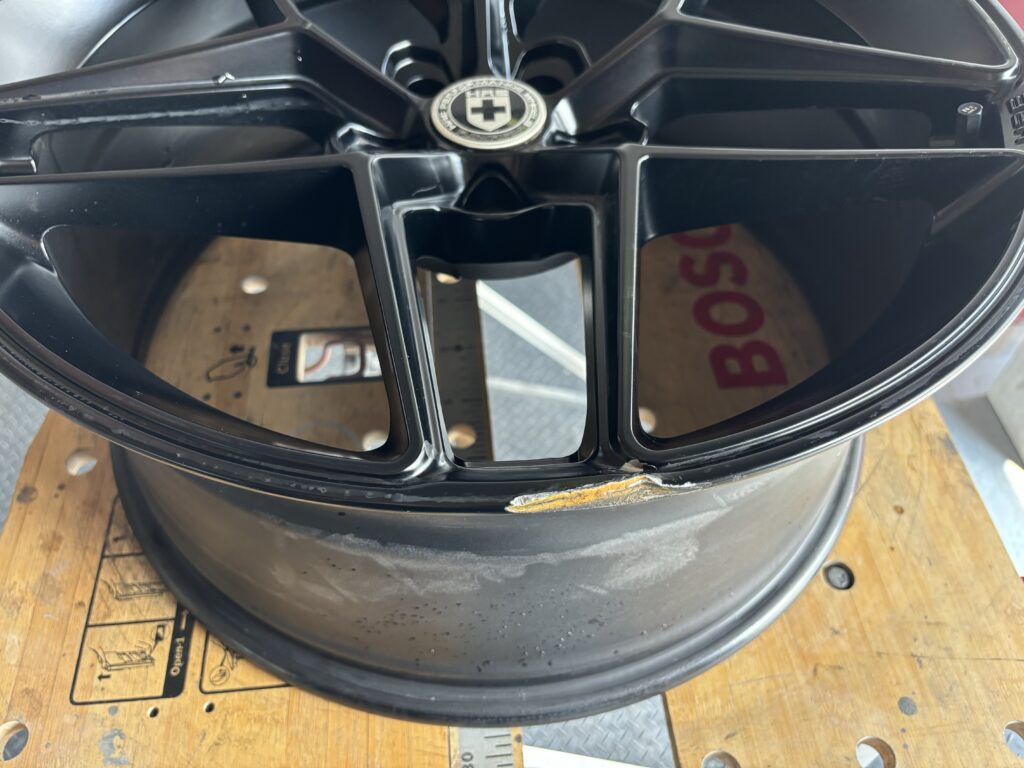 本日はHRE FLOW FORMアルミホイールガリキズをアルミ硬化パテで形状を整えマットブラック塗装でリペアさせていただきました。