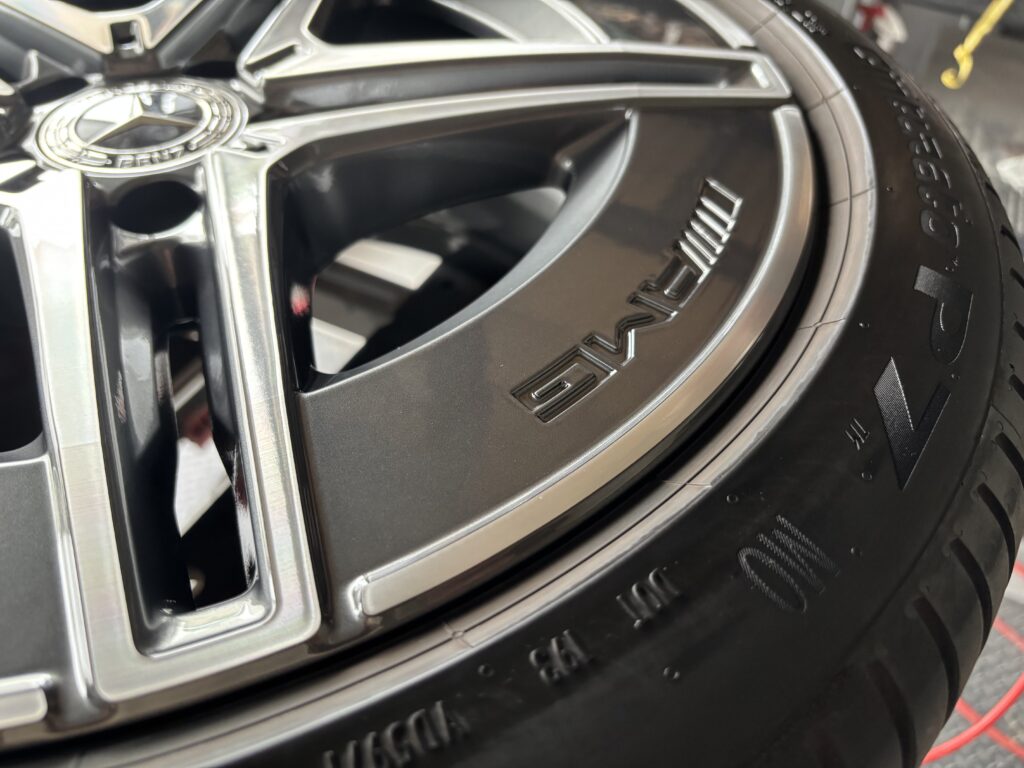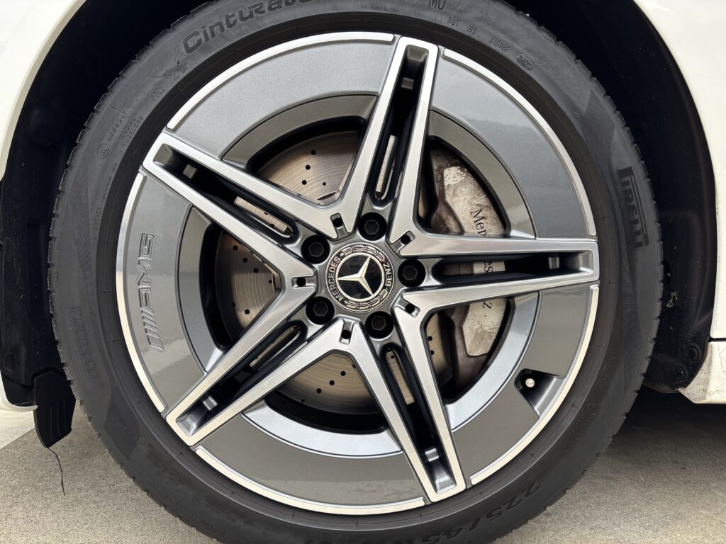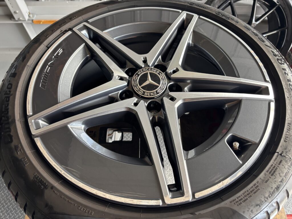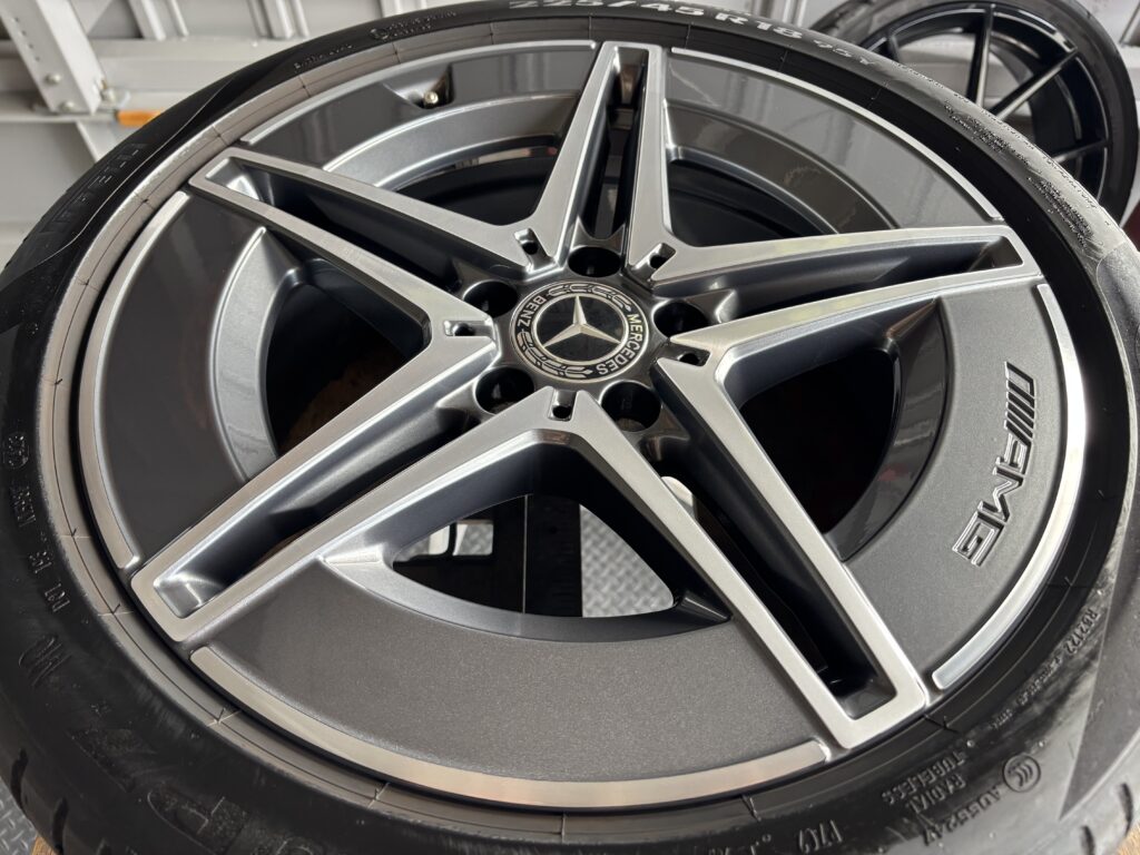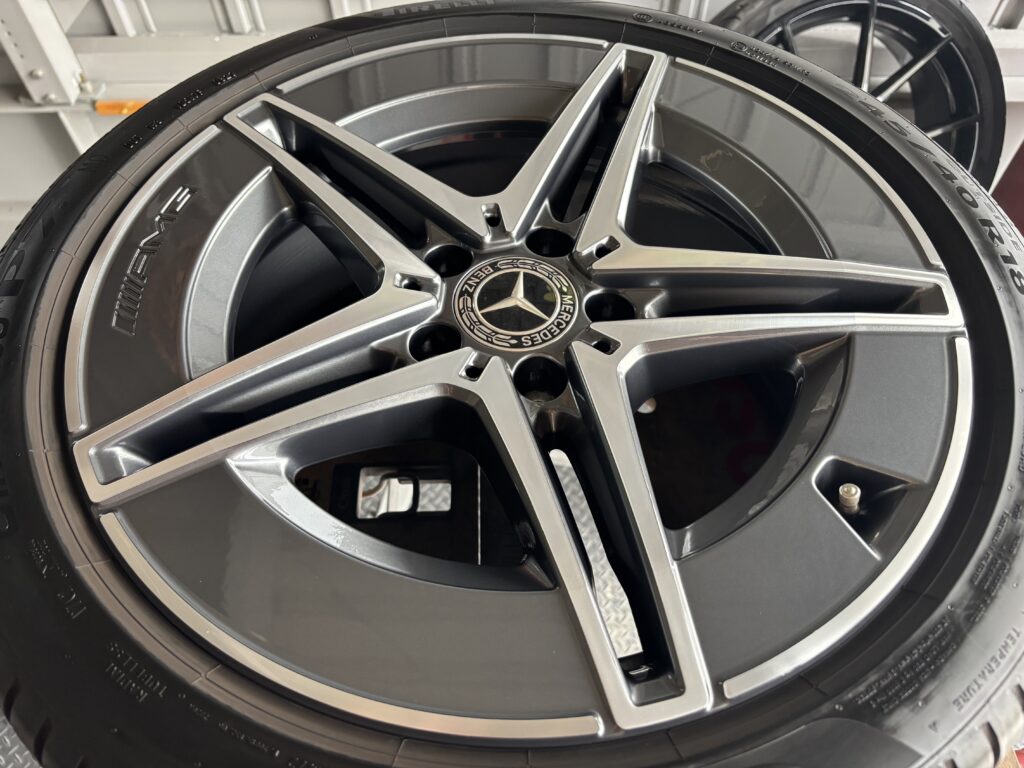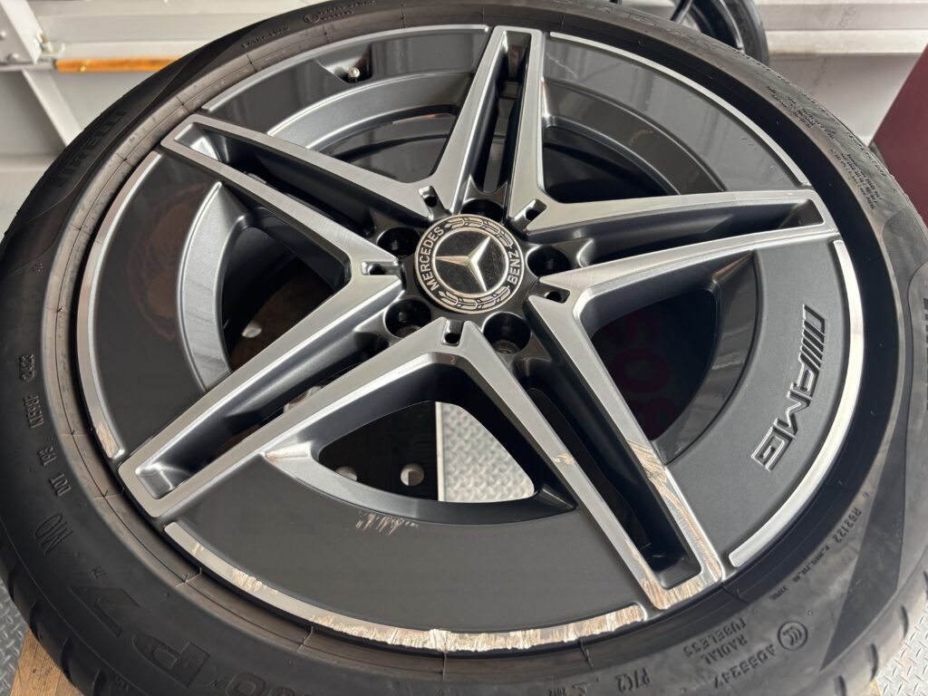 本日はメルセデス・ベンツC220dの純正アルミホイールガリキズ 2本をガンメタ塗装&ポリッシュ塗装&ポリッシュ切削研磨でリペアさせていただきました。
