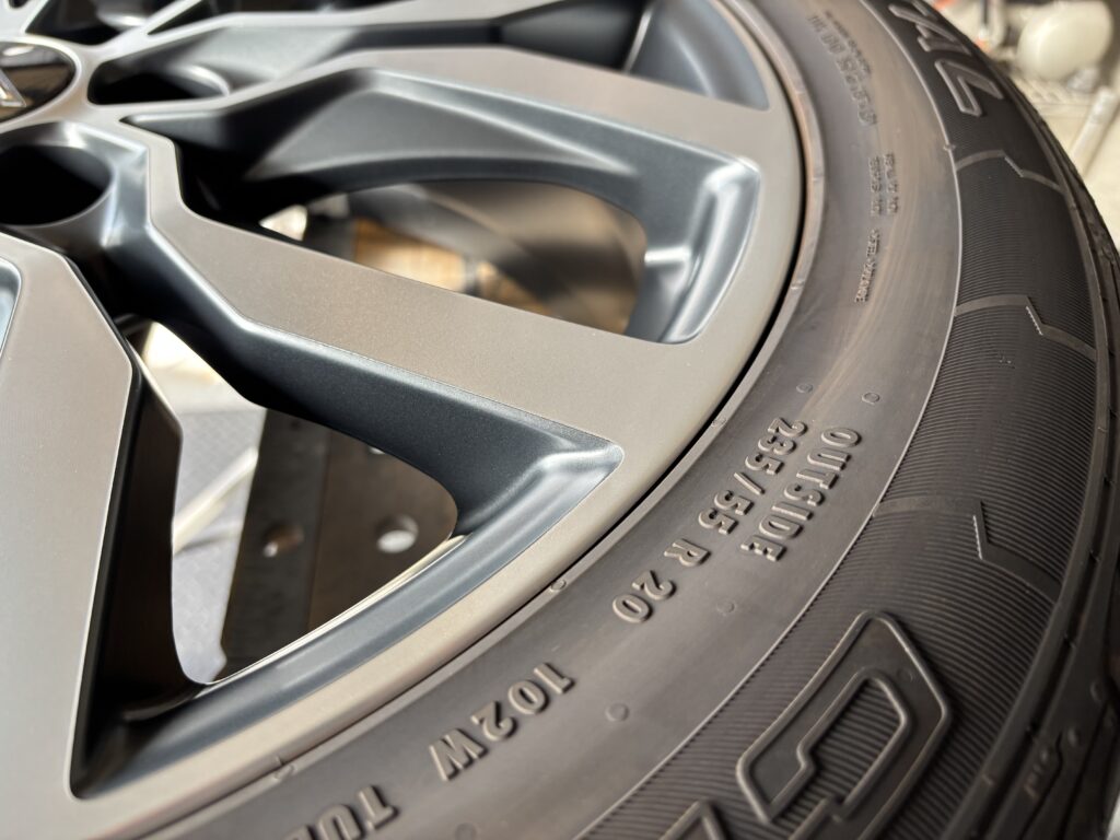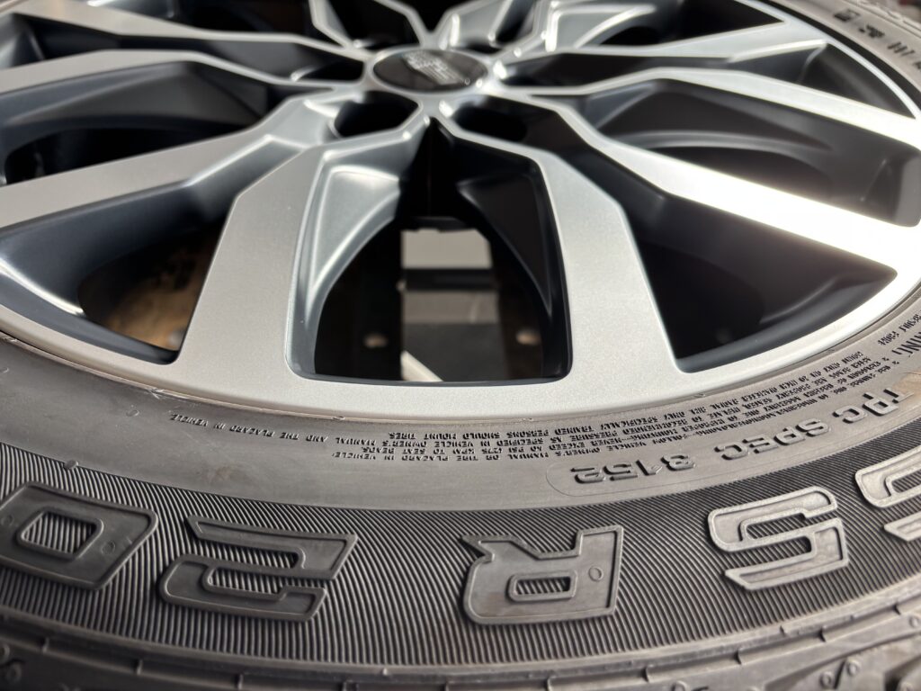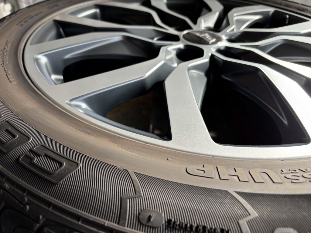 本日はキャデラックXT5の純正アルミホイールガリキズ2本をマットポリッシュ塗装でリペアさせていただきました。