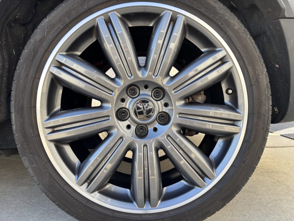 本日はミニ クーパーS E クロスオーバーの純正アルミホイールガリキズをポリッシュリム全周切削研磨でリペアさせていただきました。