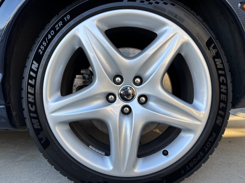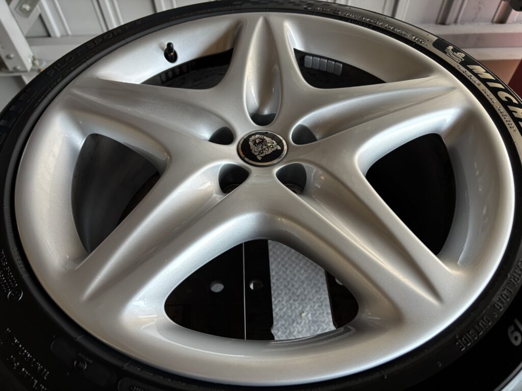 本日はジャガーXJ8の純正アルミホイールガリキズをシルバー塗装でリペアさせていただきました。