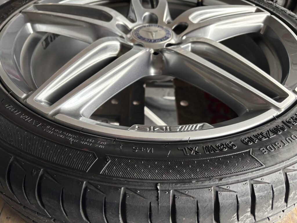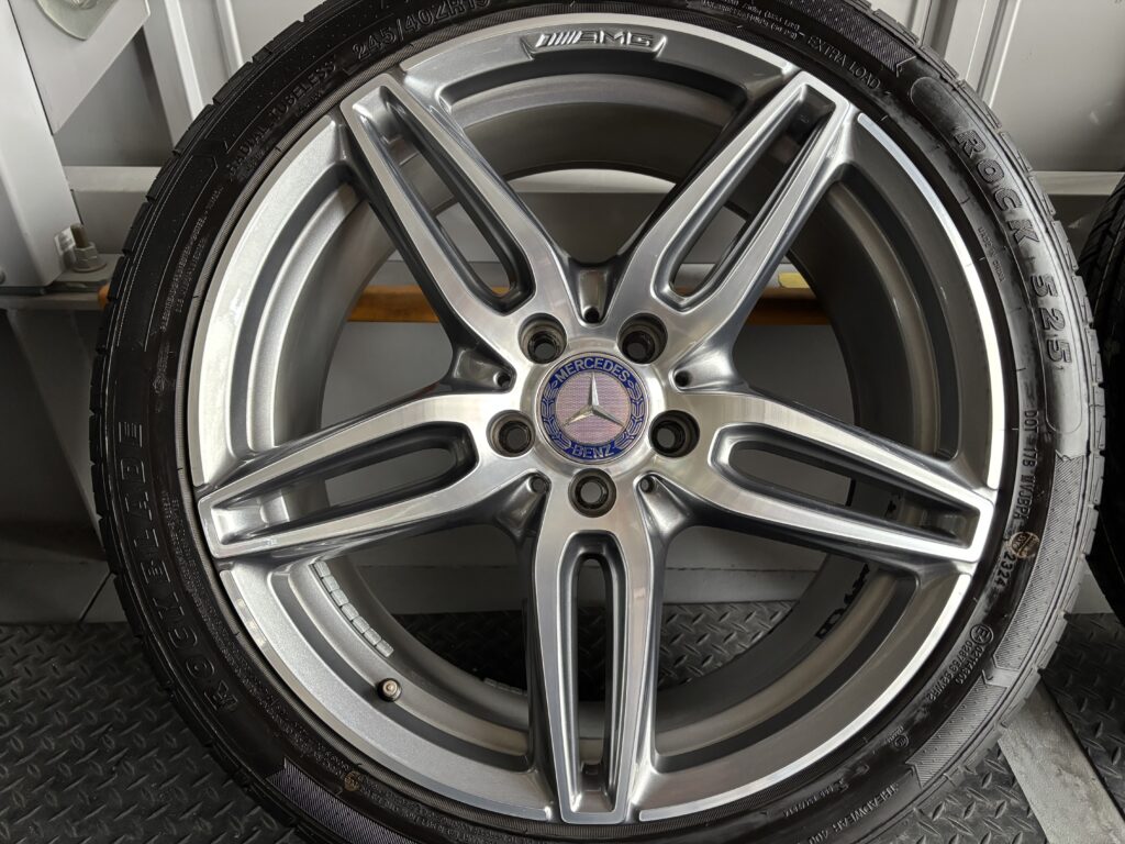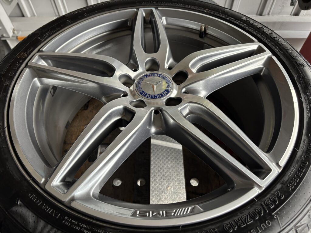 本日はメルセデス・ベンツ純正アルミホイールガリキズをアルミ用パテを充填して、ガンメタ塗装・ポリッシュ塗装でリペアさせていただきました。