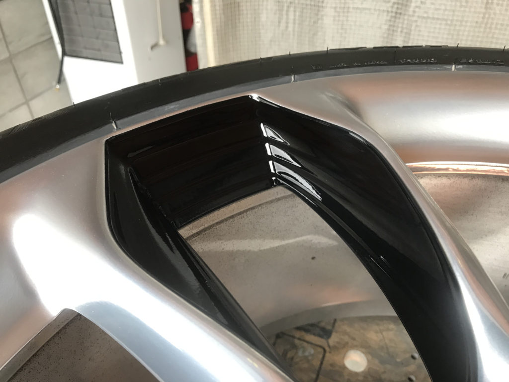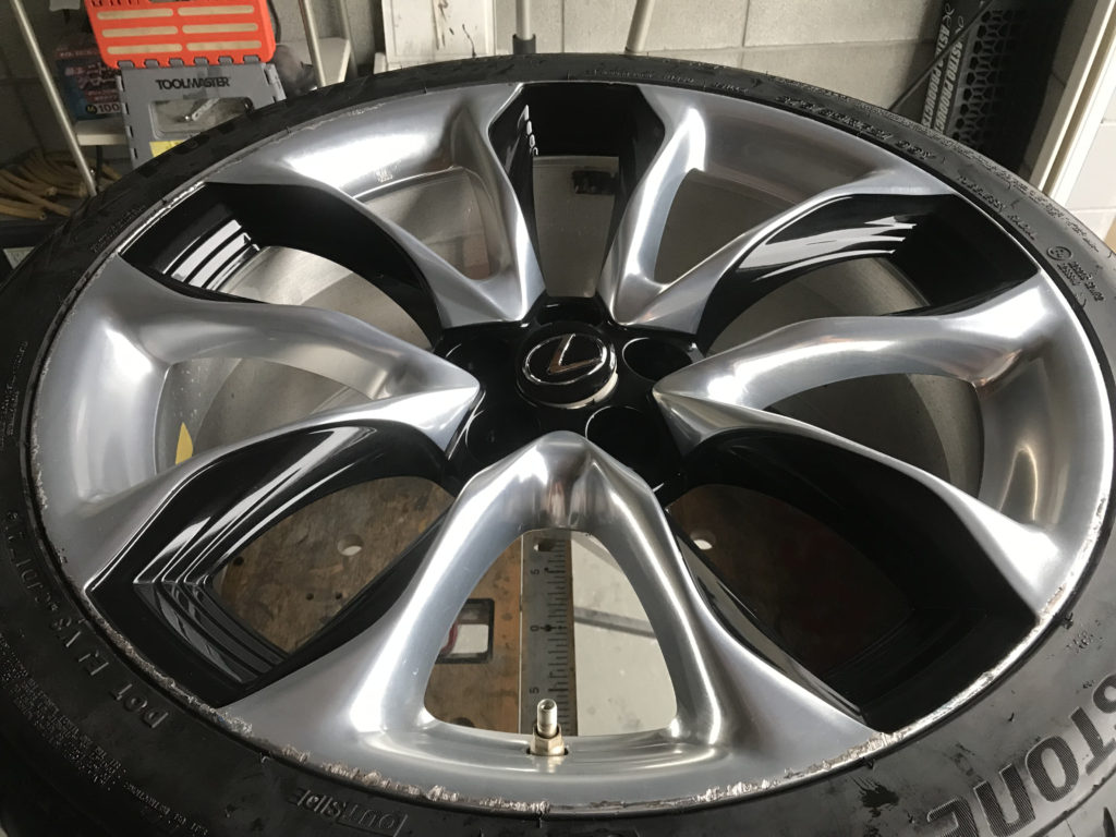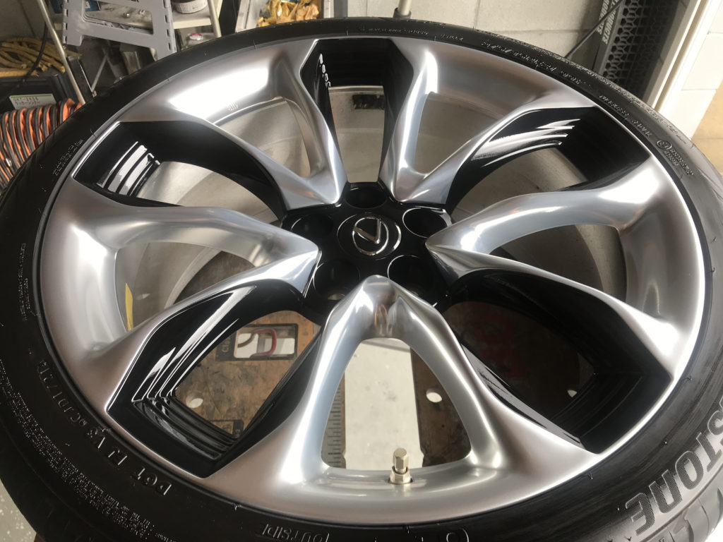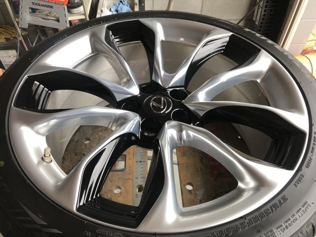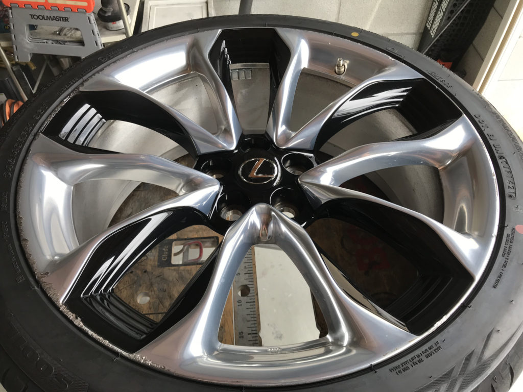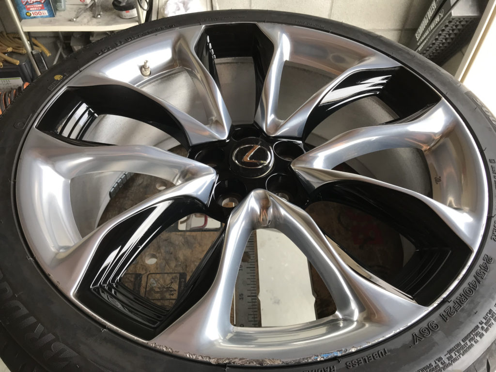 CRAFTS505の施工実績をご覧いただきありがとうございます、本日はレクサスLC500の純正21inch鍛造アルミホイールガリガリキズ4本を硬化パテを使いポリッシュ塗装・ブラック塗装でリペアさせていただきました。