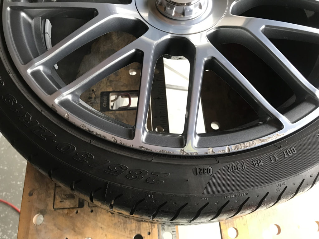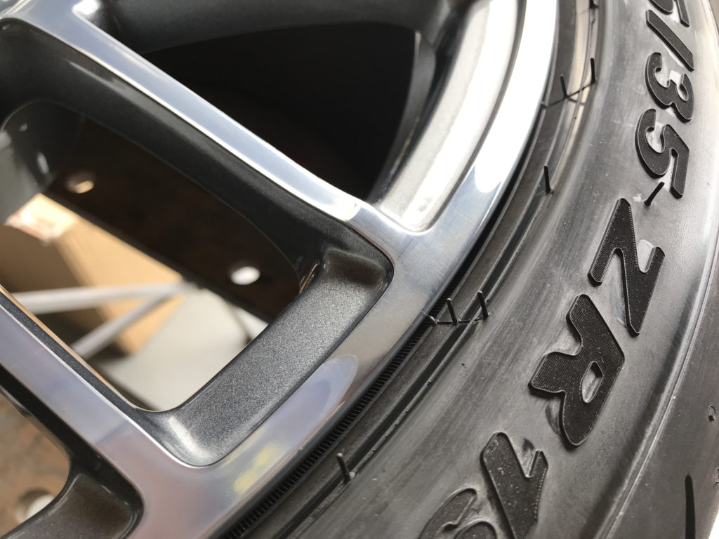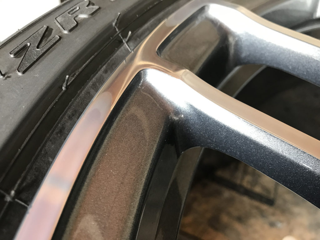 ミラーポリッシュタイプのアルミホイールはポリッシュ塗装か鏡面研磨どちらかの施工となります、それぞれの仕上がりイメージをお客様にご説明した上で今回は部分鏡面研磨でのリペアとなりました。