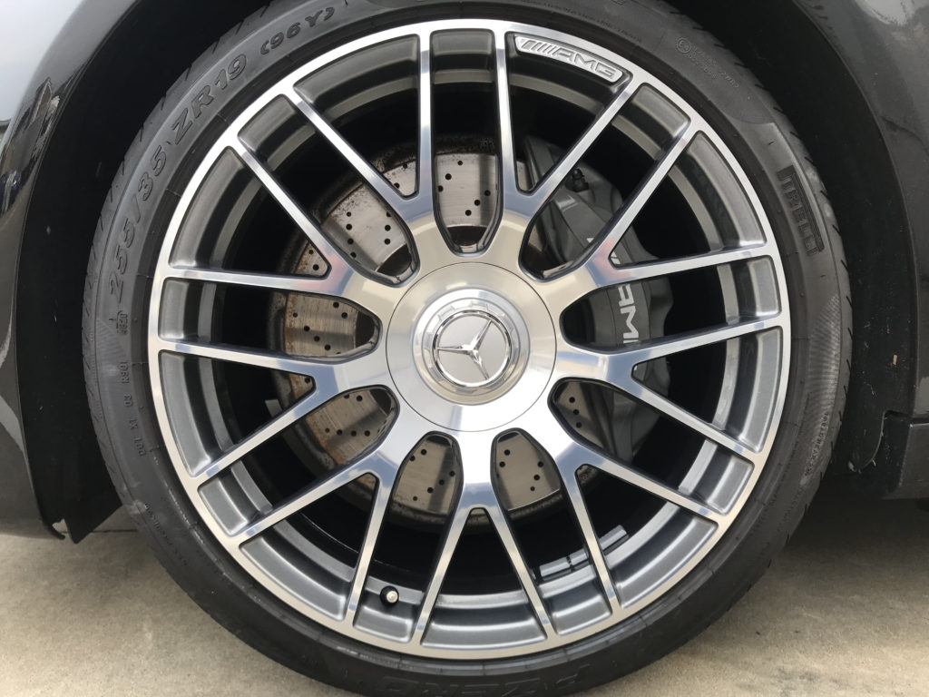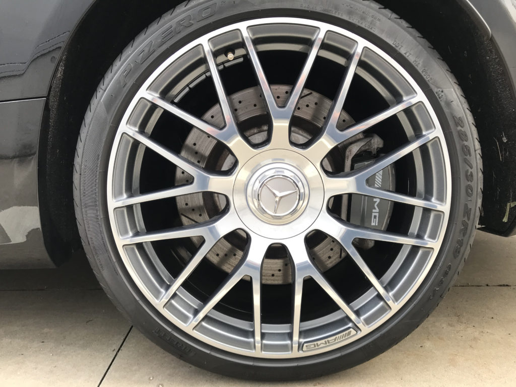 CRAFTS505の施工実績をご覧いただきありがとうございます、本日はメルセデスC63のガンメタ/ミラーポリッシュアルミホイールキズ4本を部分鏡面研磨でリペアさせていただきました。