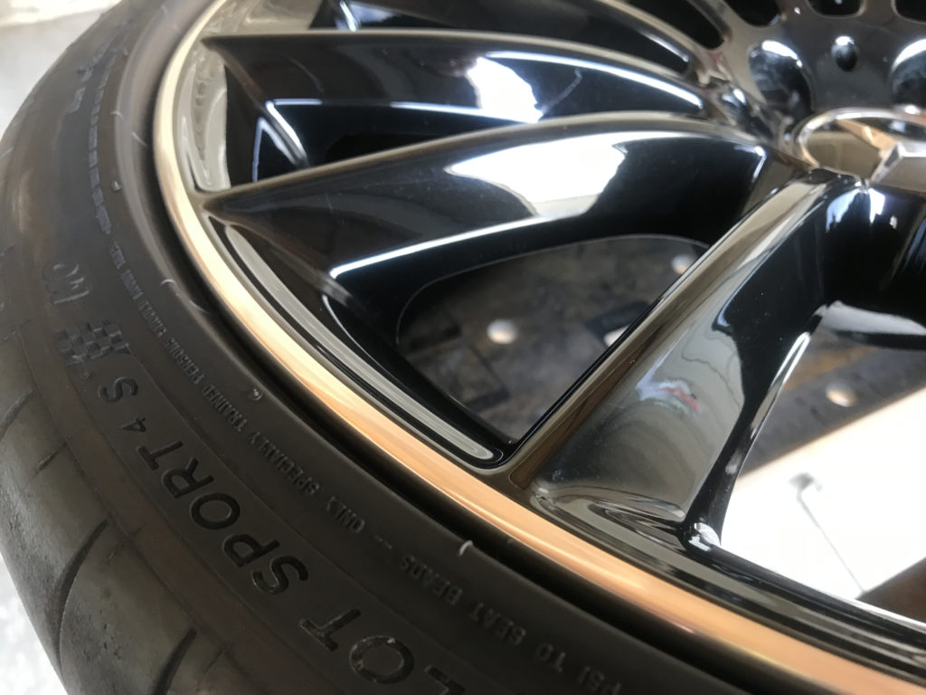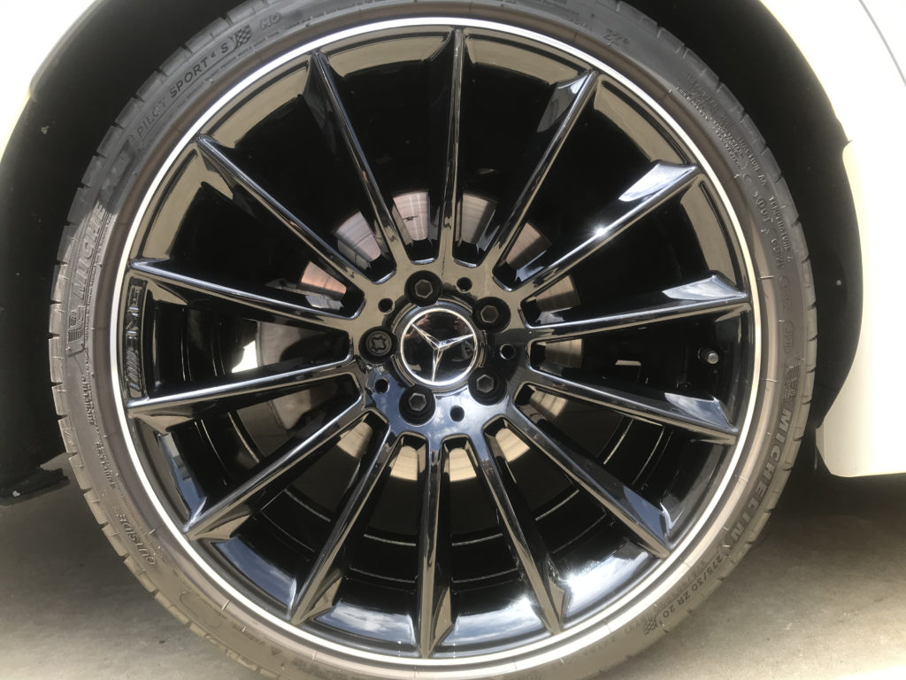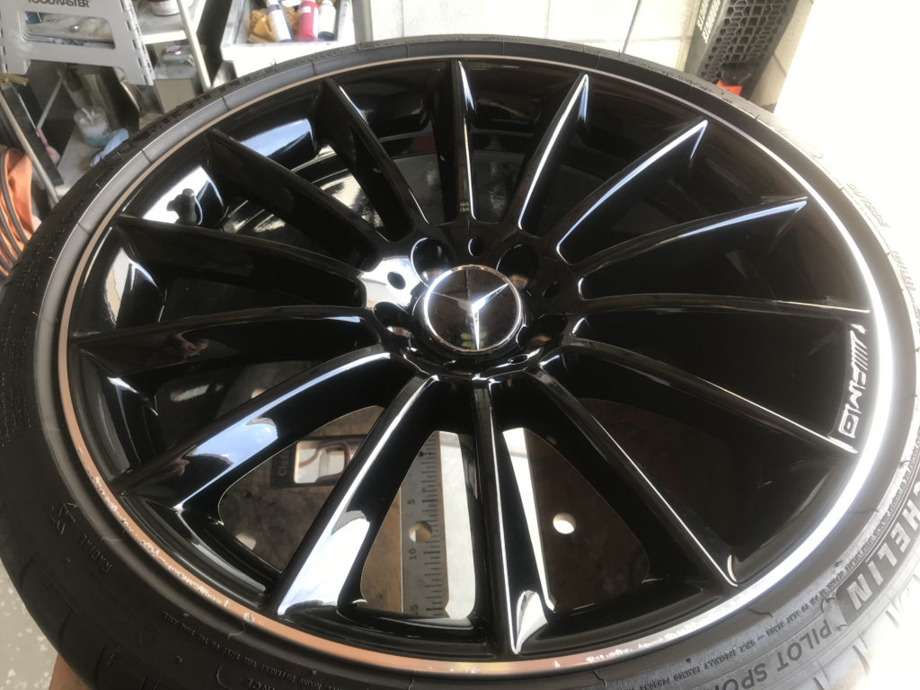 CRAFTS505の施工実績をご覧いただきありがとうございます、本日はメルセデスCLS220dの純正ブラック/ダイヤモンドカットアルミホイールキズをポリッシュ切削研磨でリペアさせていただきました。
