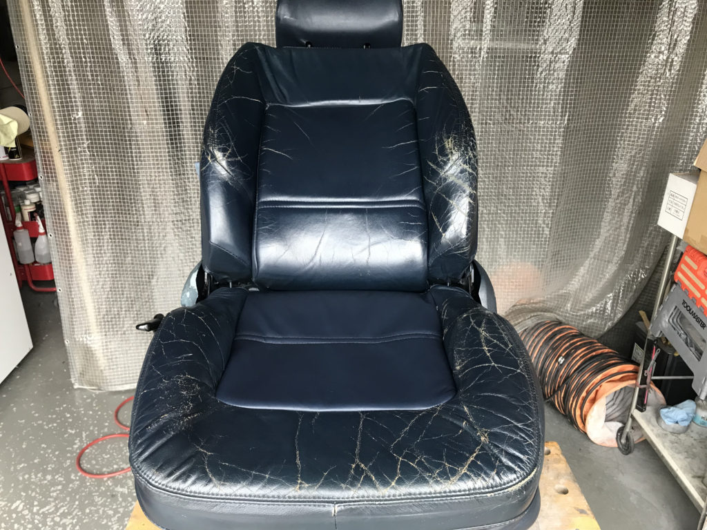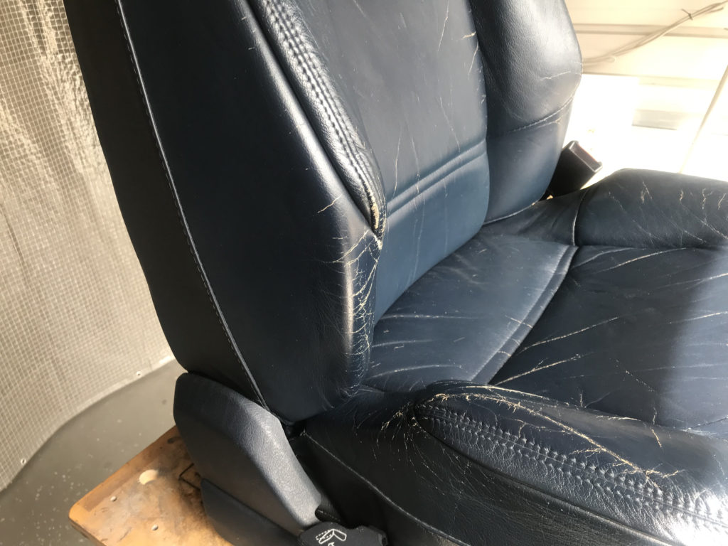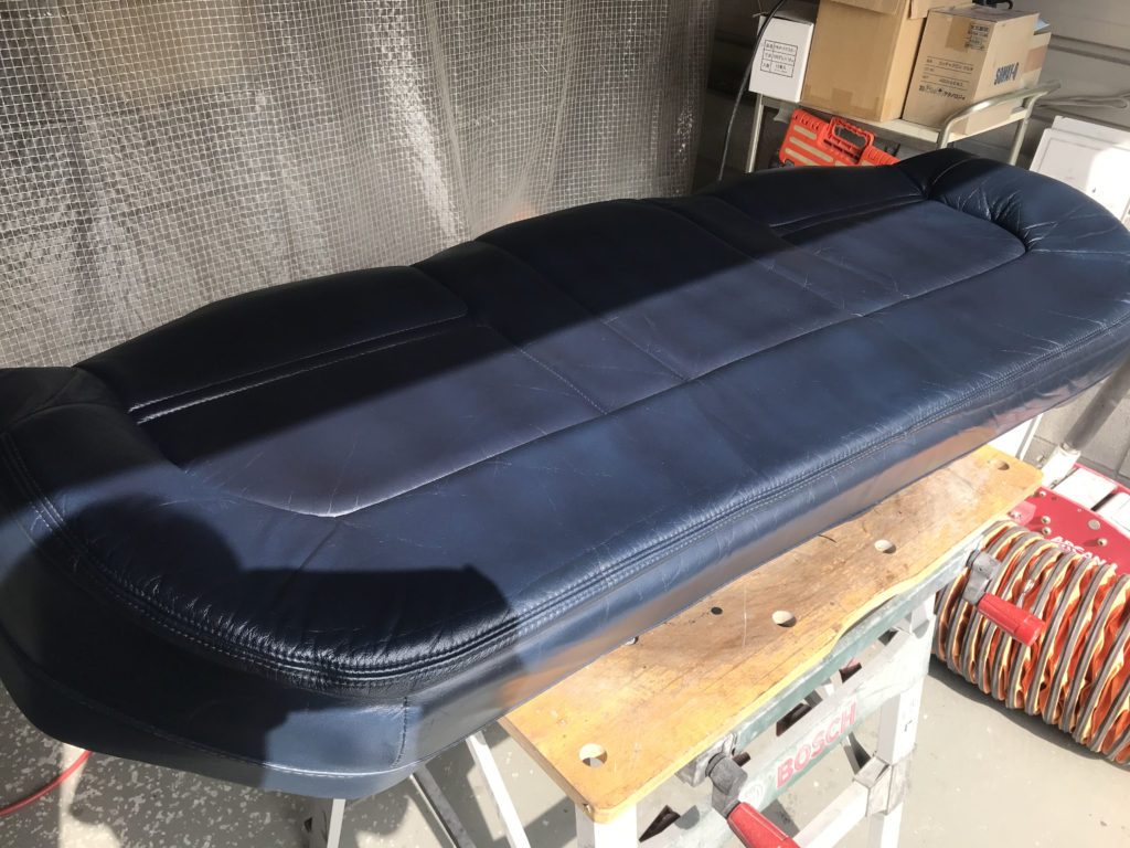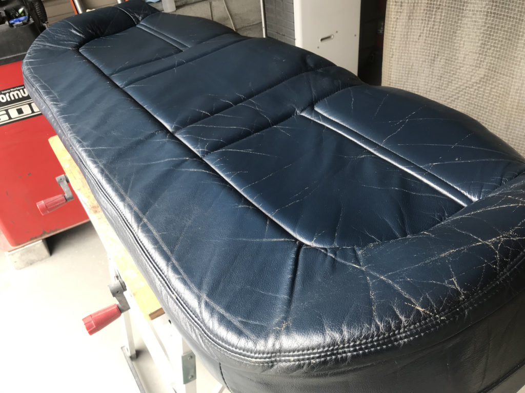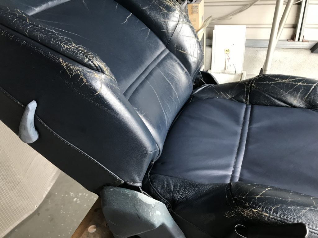 CRAFTS505の施工実績をご覧いただきありがとうございます、本日は80年代のプジョー505のレザーシート(運転席・助手席・リアシートクッション)ひび割れ劣化を車両から外しリペアさせていただきました。