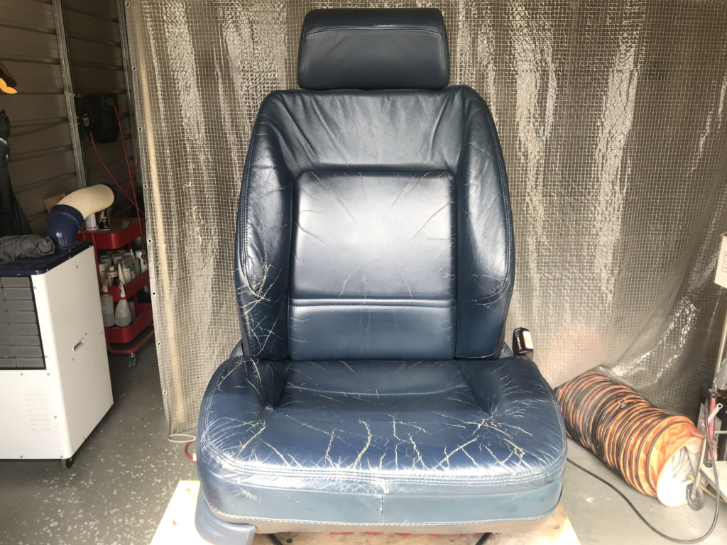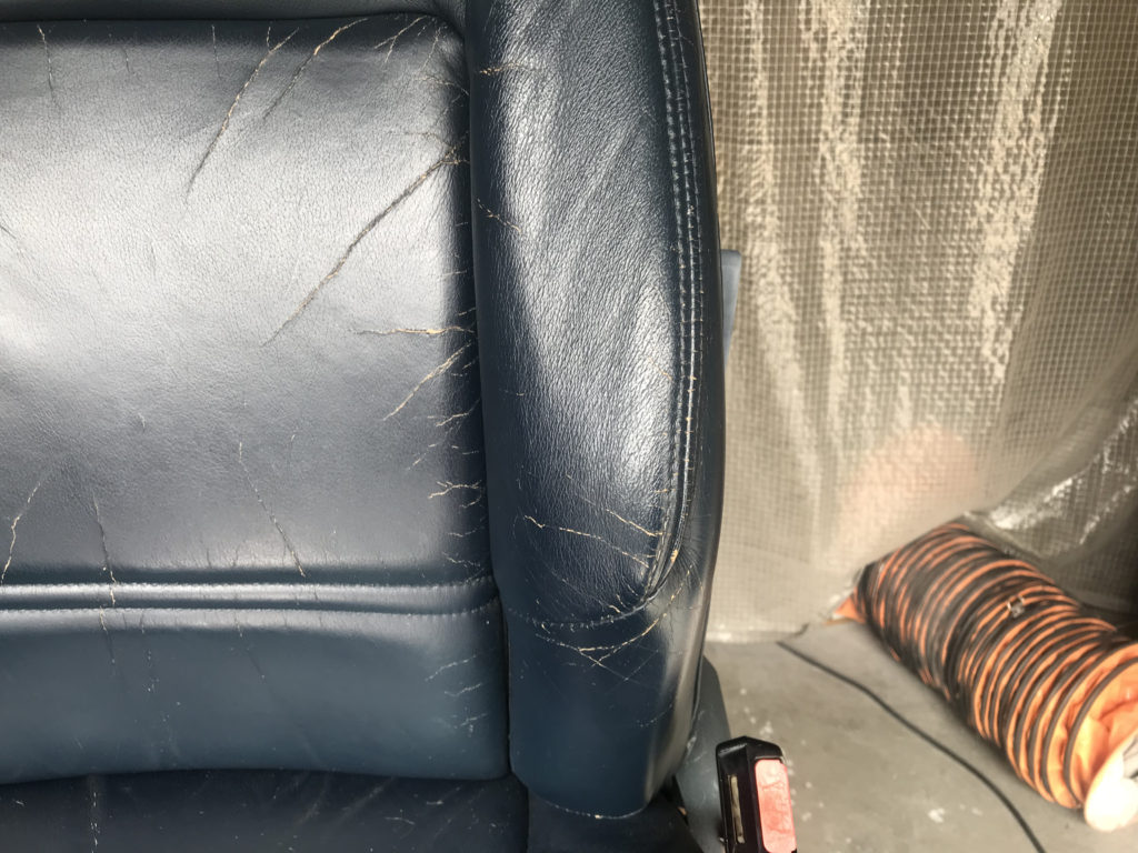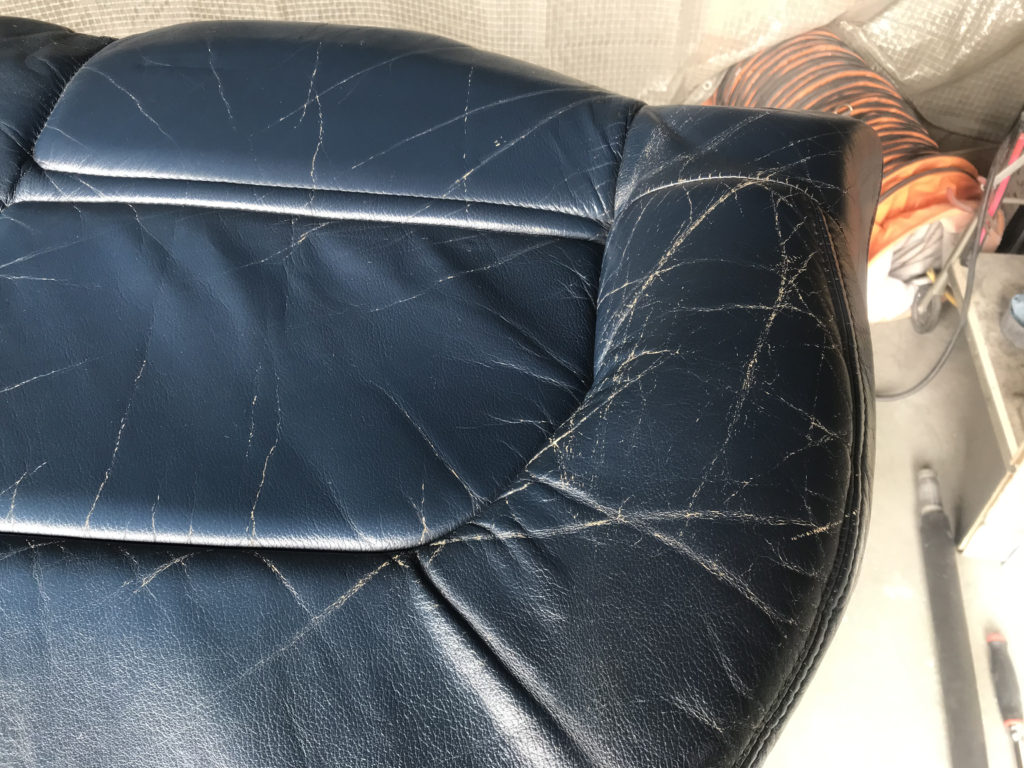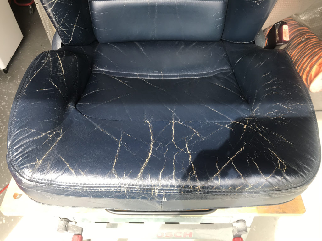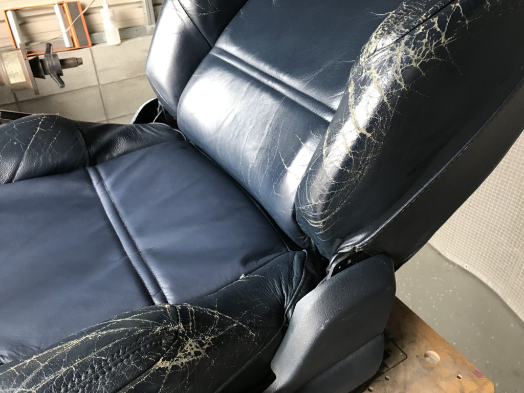 CRAFTS505の施工実績をご覧いただきありがとうございます、本日は80年代のプジョー505のレザーシート(運転席・助手席・リアシートクッション)ひび割れ劣化を車両から外しリペアさせていただきました。