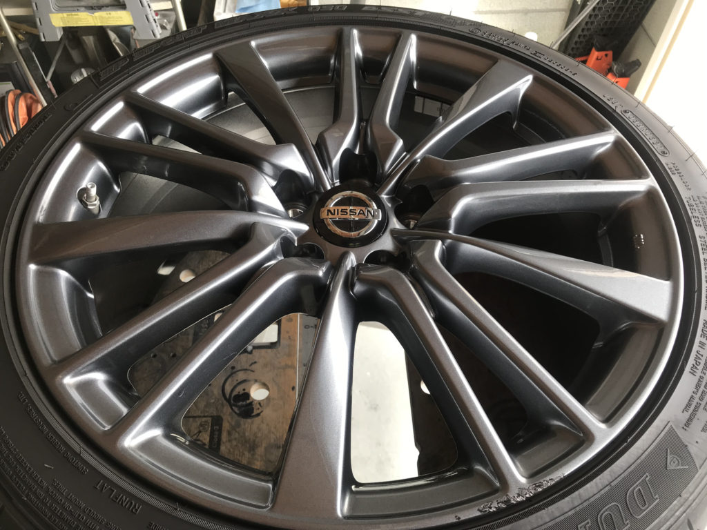 CRAFTS505の施工実績をご覧いただきありがとうございます、本日は日産スカイライン400Rの純正ホイールガリキズをガンメタ塗装でリペアさせていただきました。