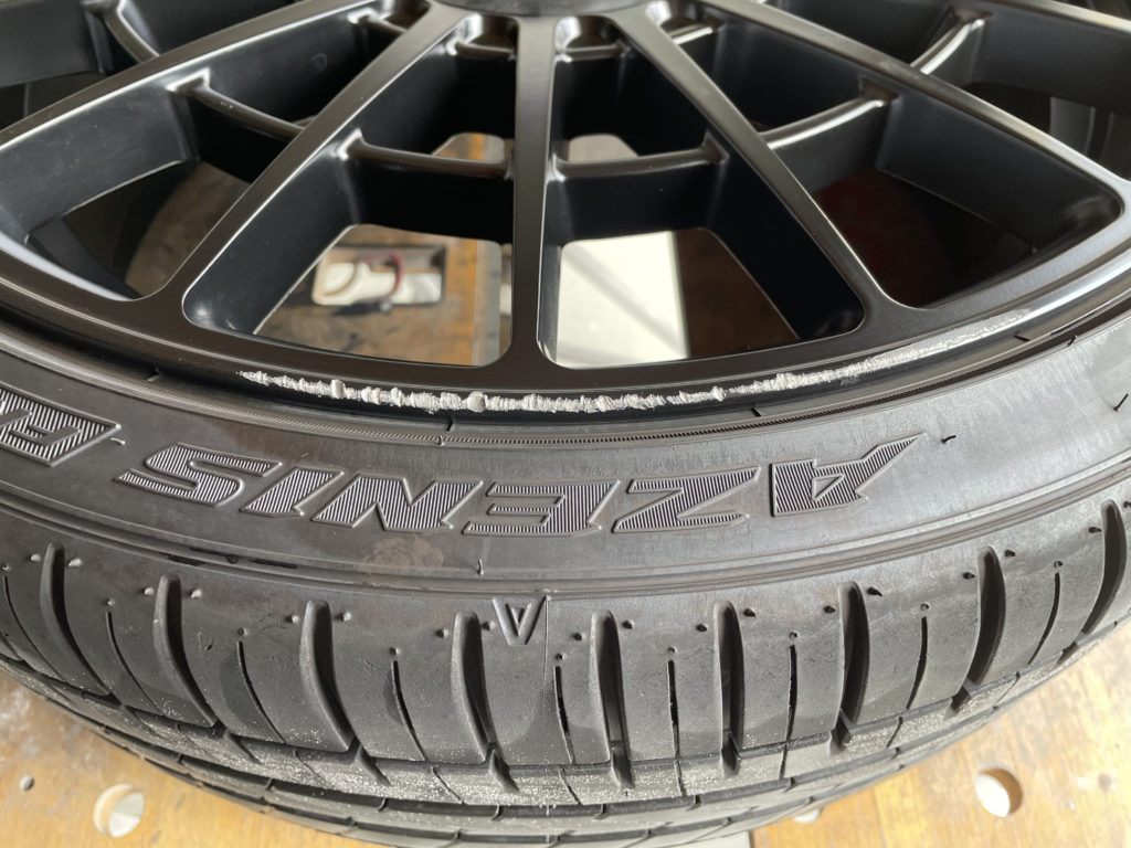 CRAFTS505の施工実績をご覧いただきありがとうございます、本日はフォルクスワーゲンパサートRラインに装着されたロティフォームLAS-Rマットブラックのガリキズ をマットブラック塗装でリペアさせていただきました。