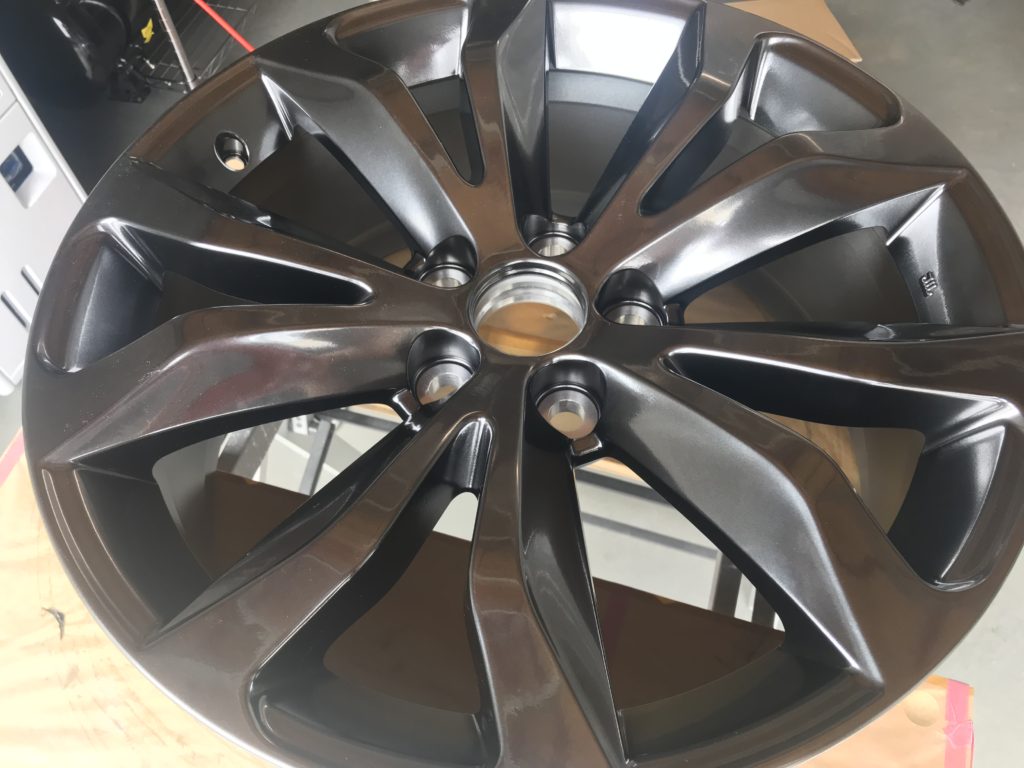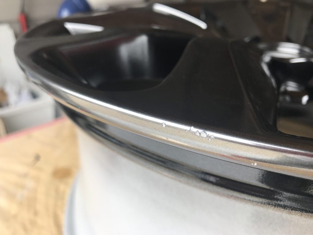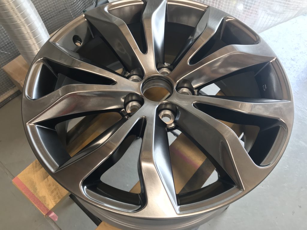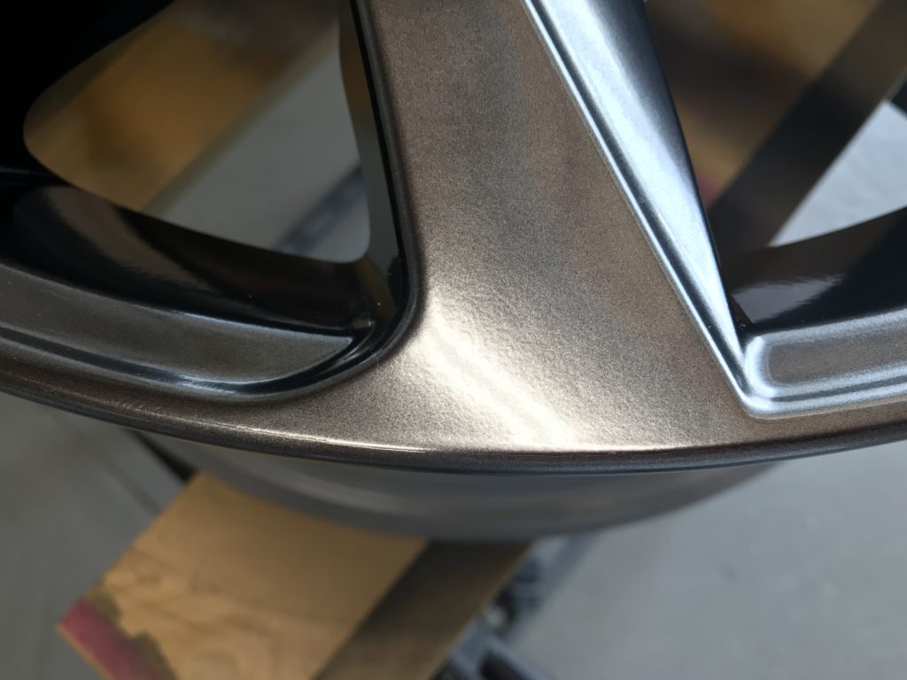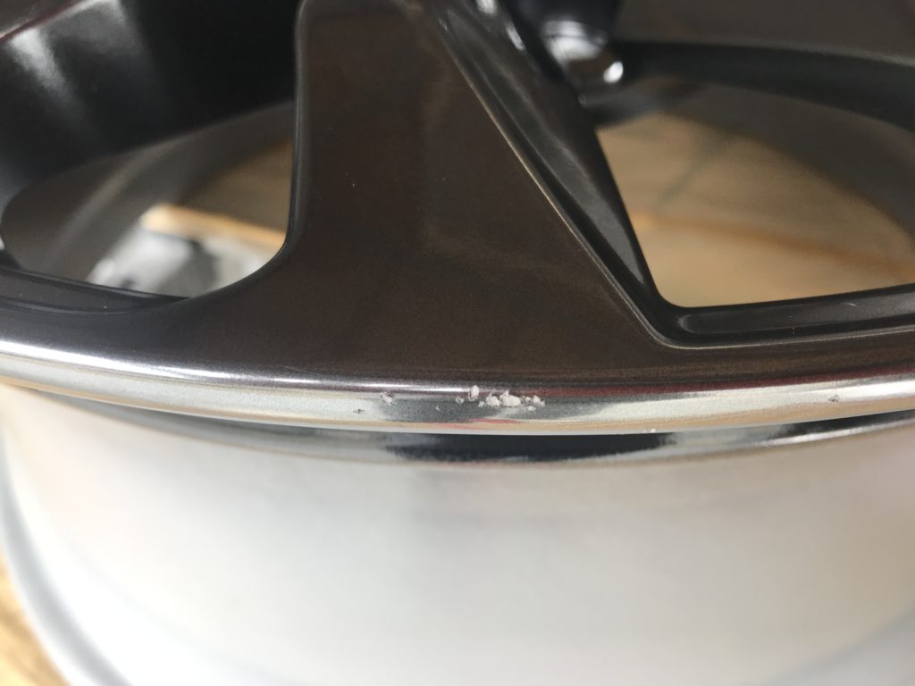 新品アルミホイールを地面に落として傷を付けてしまったホイールリペアになります。ご覧の通り光輝性の高い高級感のあるハイパーシルバーホイールです、さすがレクサス!!正直新品ホイールのリペアは避けたいところですが、逃げずに施工して行きます。