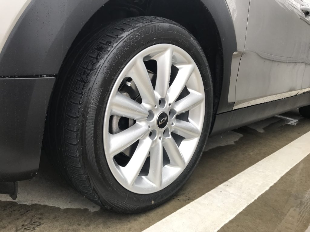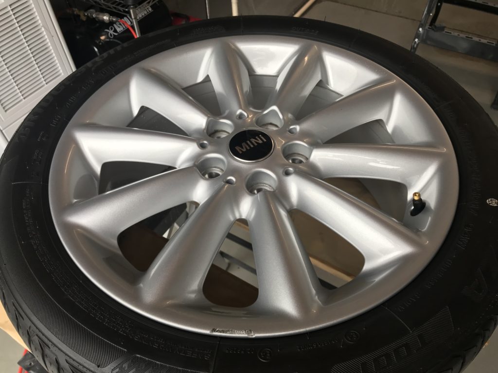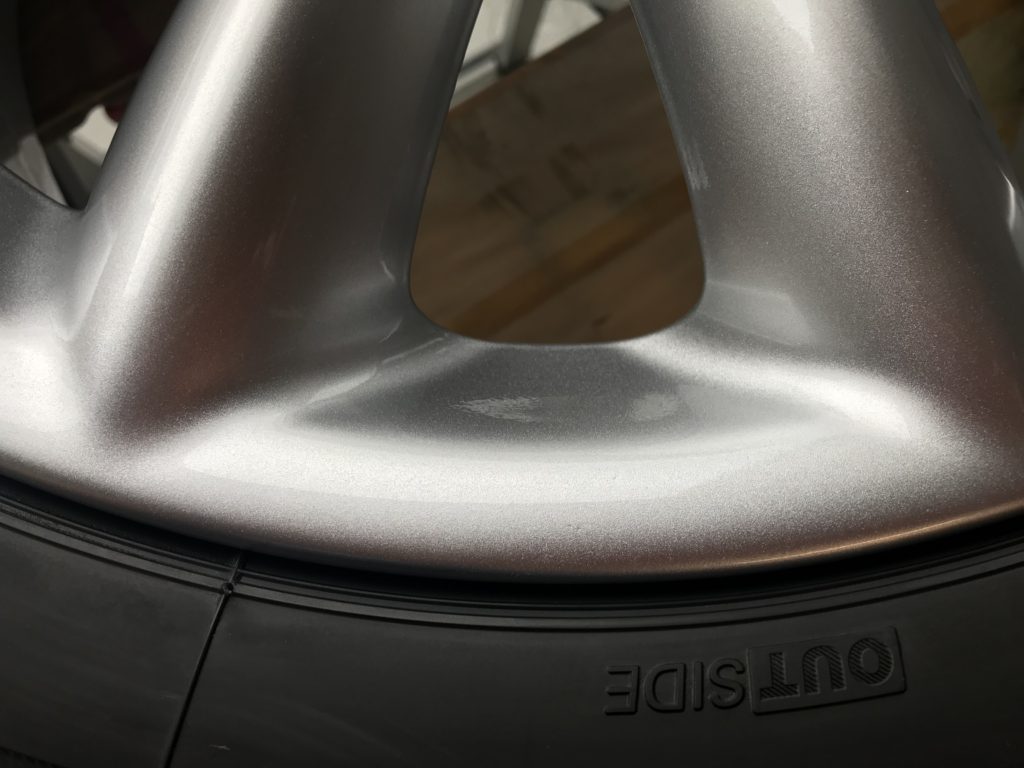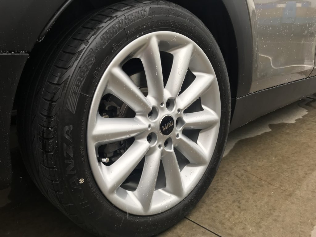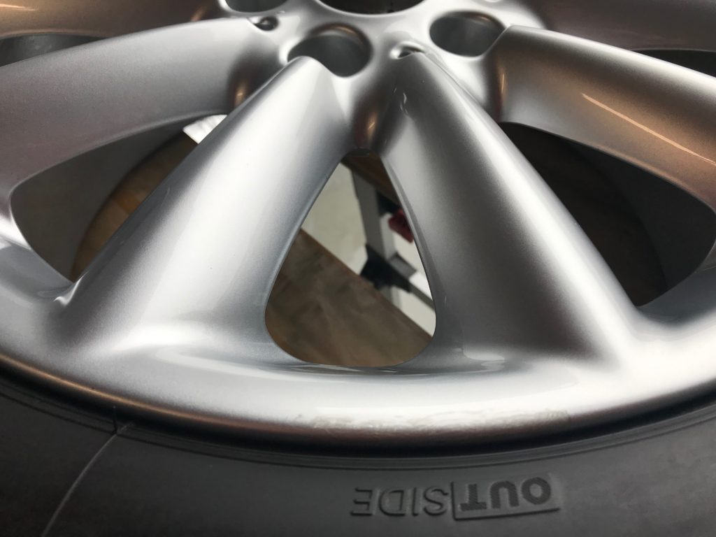 本日のリペアはミニクパークラブマン 純正ホイール3本になります、全数キズは浅いため整形後シルバー塗装で施工して行きます。