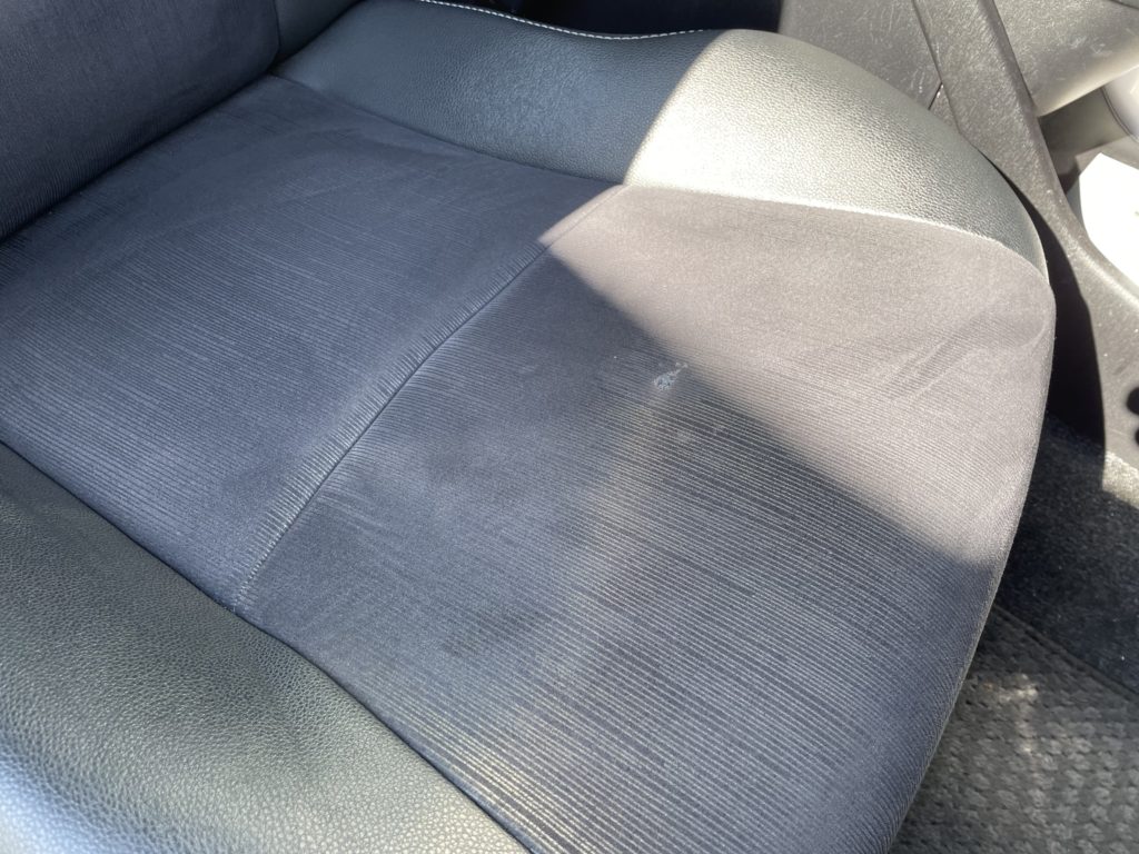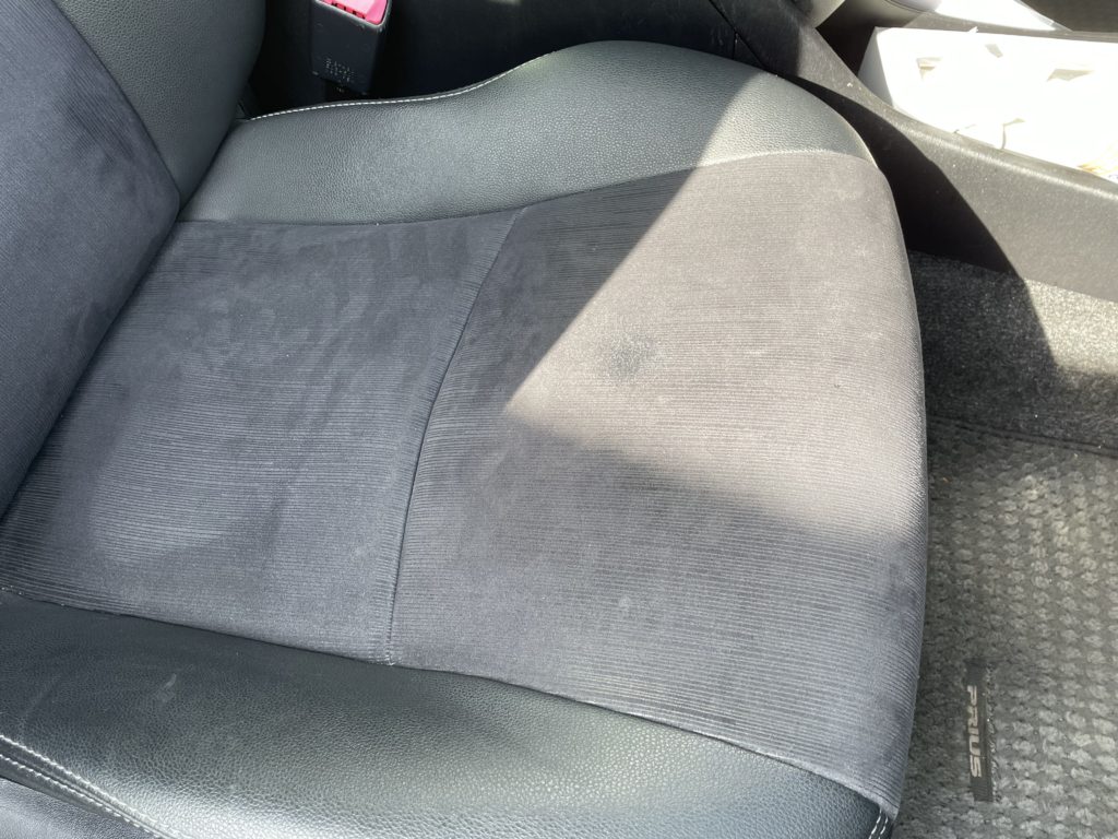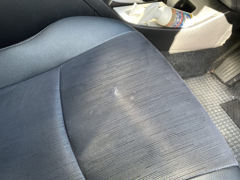 CRAFTS505(クラフツゴーマルゴ)の施工実績をご覧いただきありがとうございます、本日の施工はトヨタプリウスのファブリックシートタバコ焦げ穴を特殊ファイバーを注入して簡易的にリペアさせていただきました。