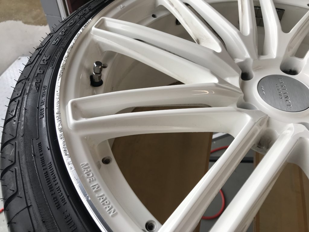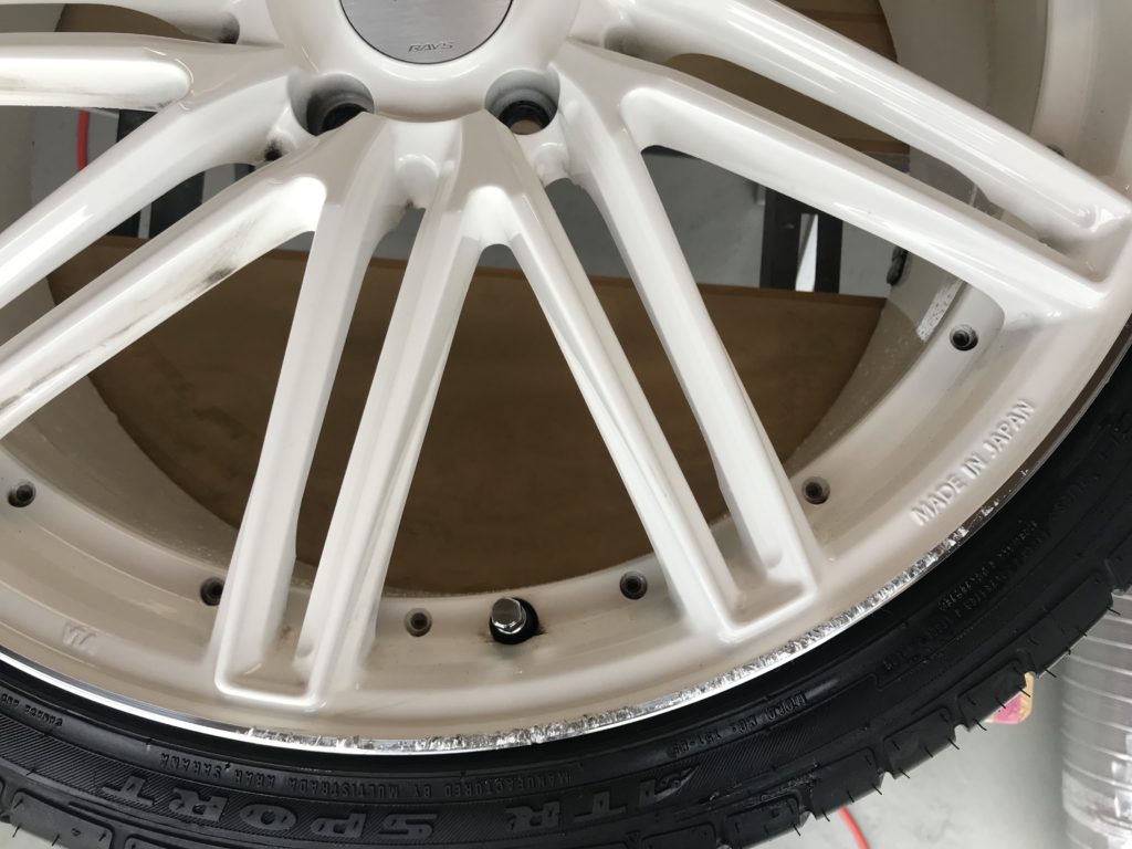 今回のホイールは、レイズシリーズでは設定のないホワイトパールに塗装されたセンスの光る綺麗なホイールになります。リムはポリッシュでリム部に深い傷が入っており研磨リペアでのご意向のため鏡面仕上げを行います。