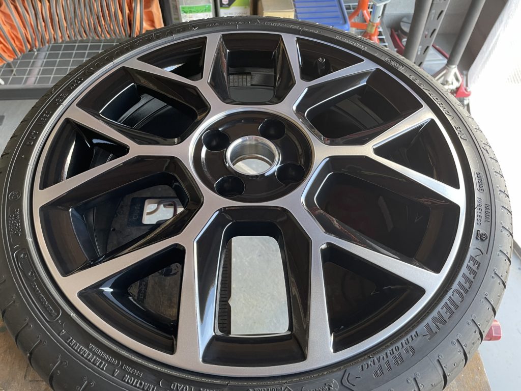 CRAFTS505(クラフツゴーマルゴ)の施工実績をご覧いただきありがとうございます、本日はフォルクスワーゲン・UP GTIの純正ブラック/ダイヤモンドカットポリッシュガリキズ を硬化パテを充填してポリッシュ塗装・ブラック塗装でリペアさせていただきました。