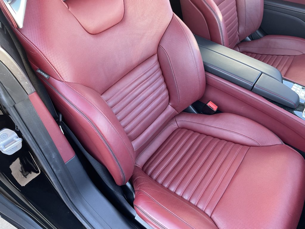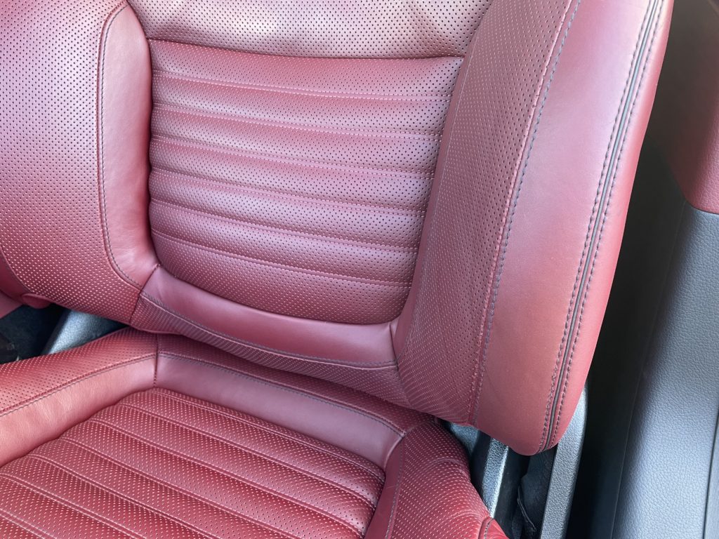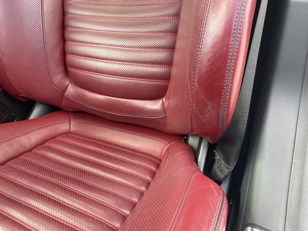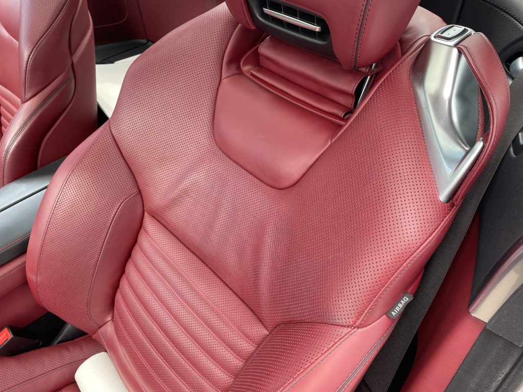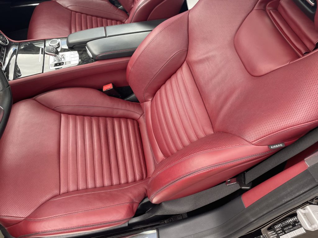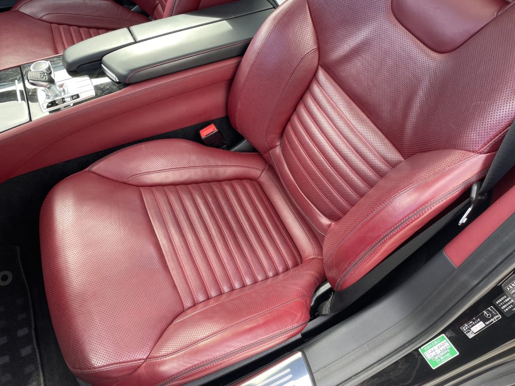 CRAFTS505(クラフツゴーマルゴ)の施工実績をご覧いただきありがとうございます。本日はメルセデス・ベンツSL400のレザーシートクリーニングとレザーシート劣化を柔軟性のあるパテを充填して塗装リペアさせていただきました。