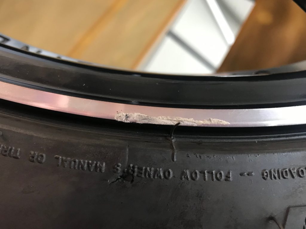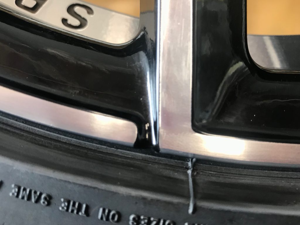 2本目ポリッシュは、スポークにつながるリムにもキズがある状態です。同じく鏡面研磨仕上げで行いますが、スポーク部に研磨する事による塗膜ラインが必ず出てしまいます。オーナー様にはその事をご説明してリペアとなります。