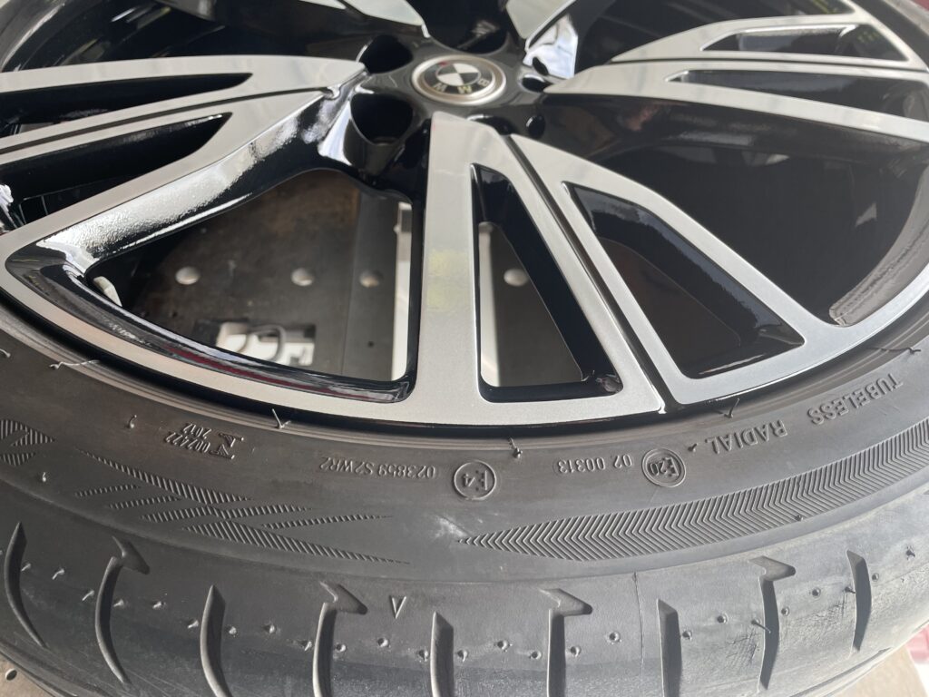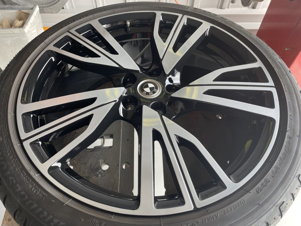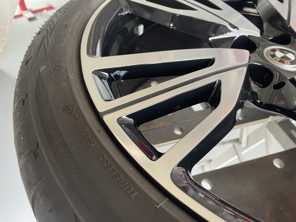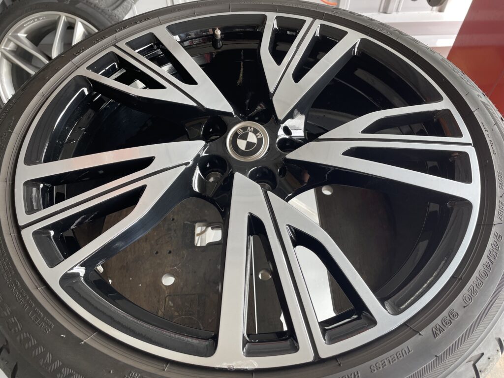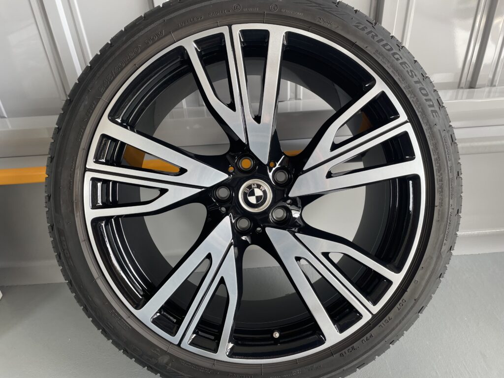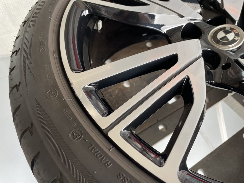 本日はBMW i8の純正ブラック/ポリッシュアルミホイールキズをブラック塗装・ポリッシュ塗装でリペアさせていただきました。