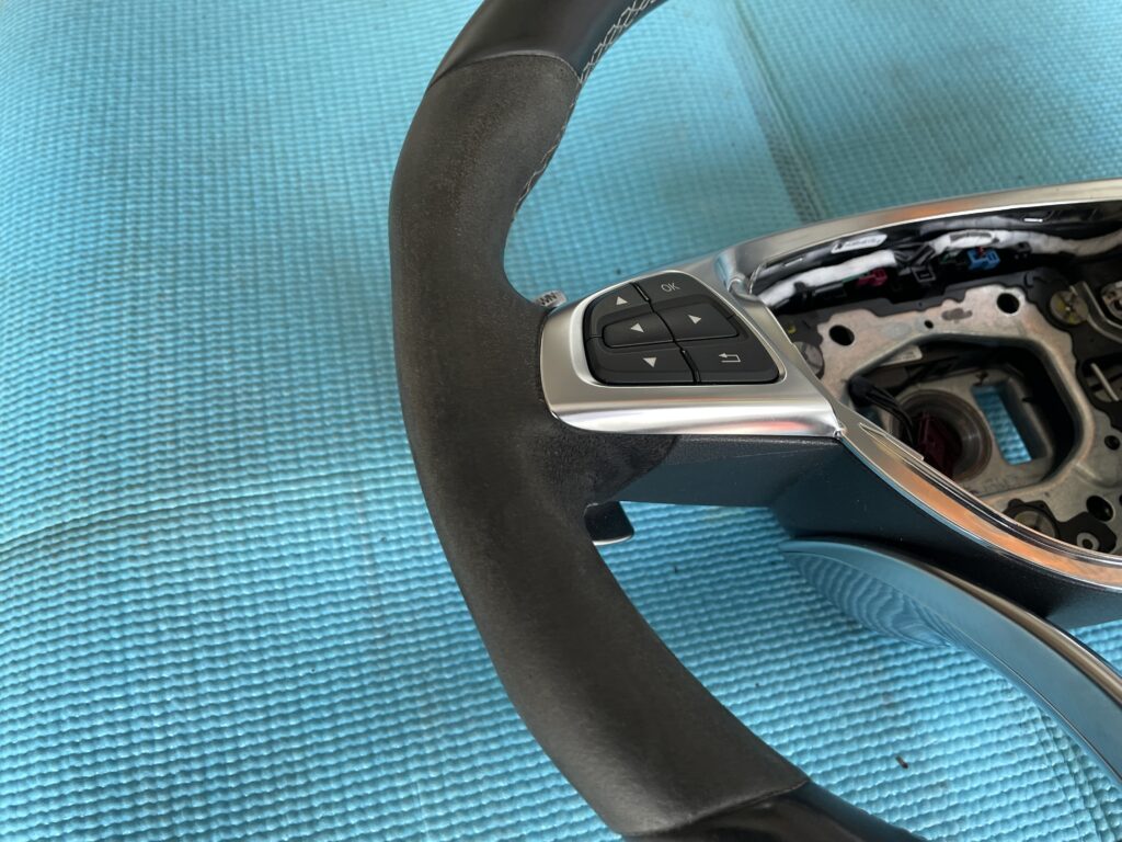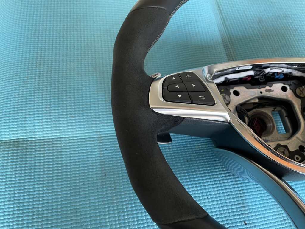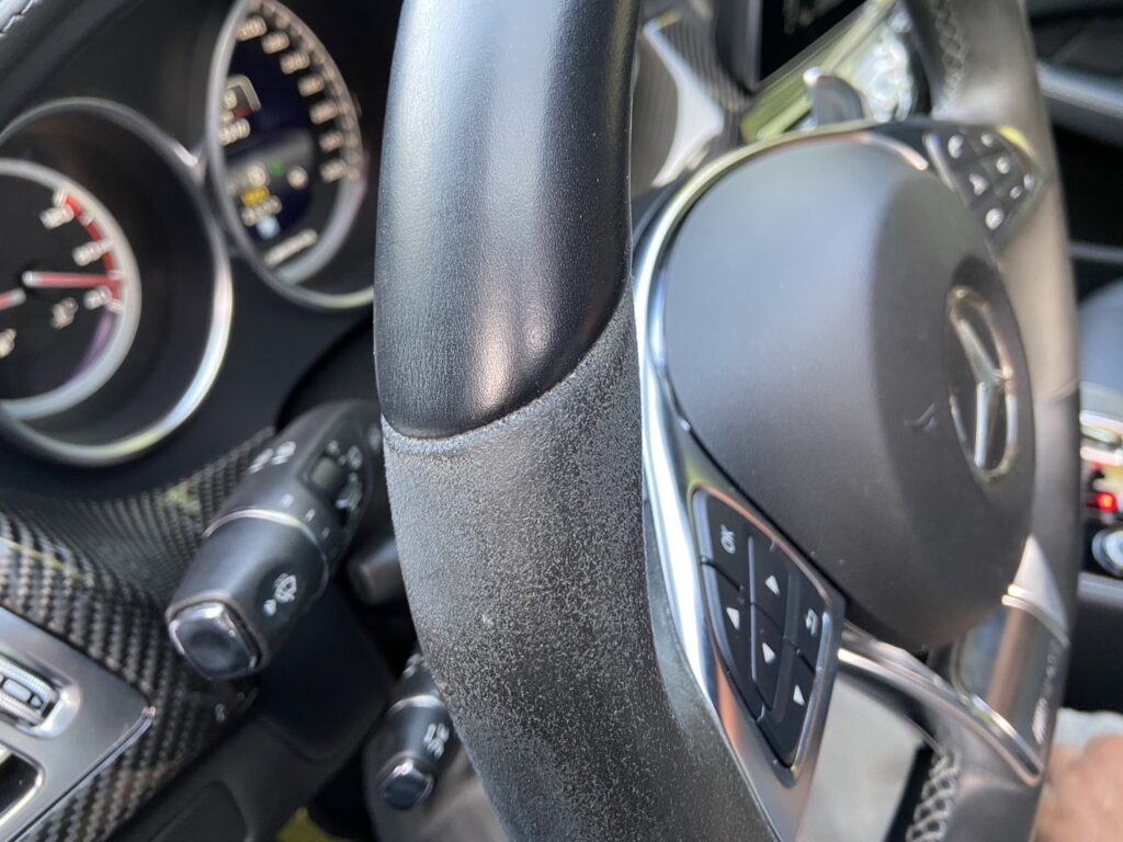 本日はメルセデス・ベンツCLS63純正ステアリングでグリップ部のアルカンターラ素材が汚れなどで風合いを失い見栄えが良くないとのことで特殊な洗剤を使い全体のクリーニングをさせていただきました。