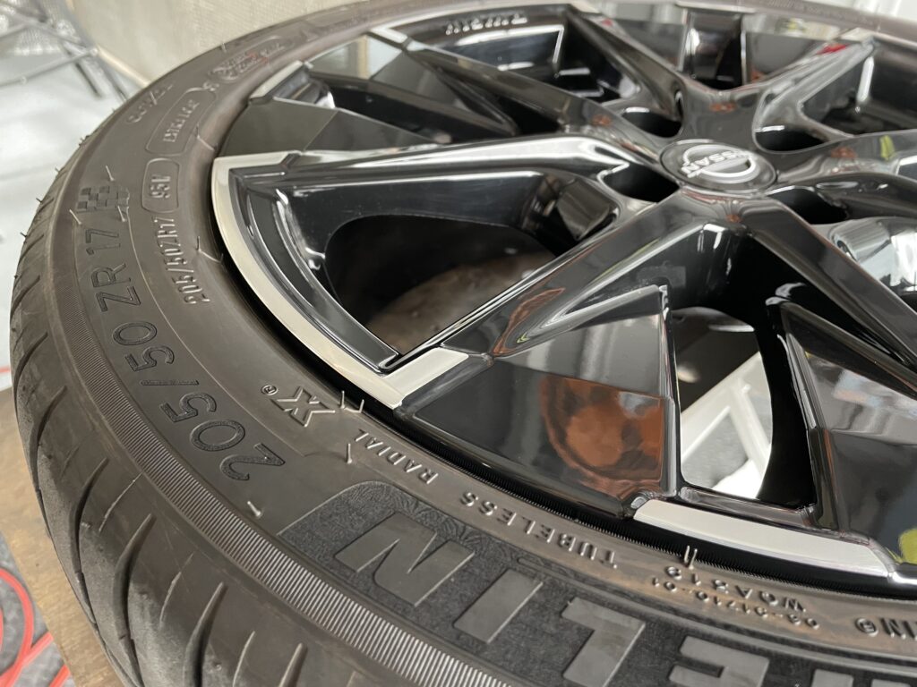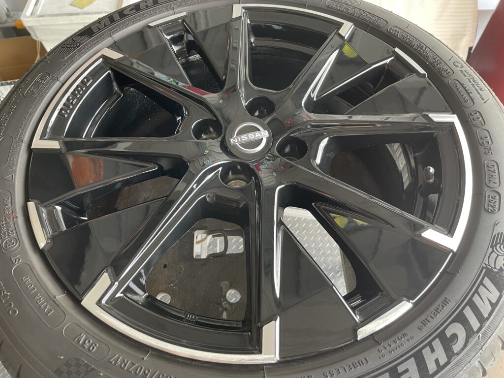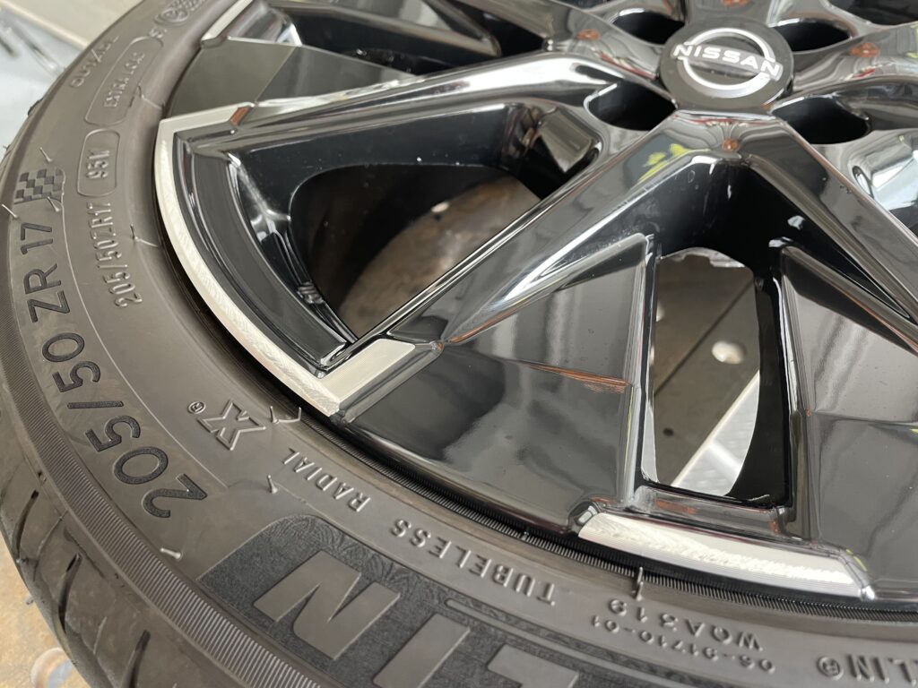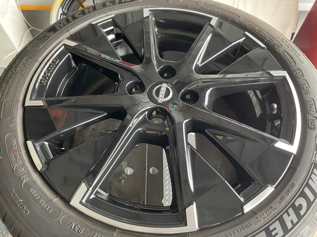 本日は日産オーラ ニスモの純正ブラック/ポリッシュアルミホイールガリキズをポリッシュ切削研磨でリペアさせていただきました。