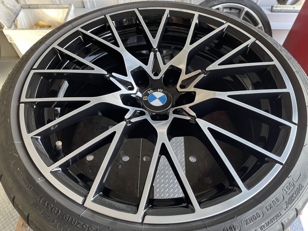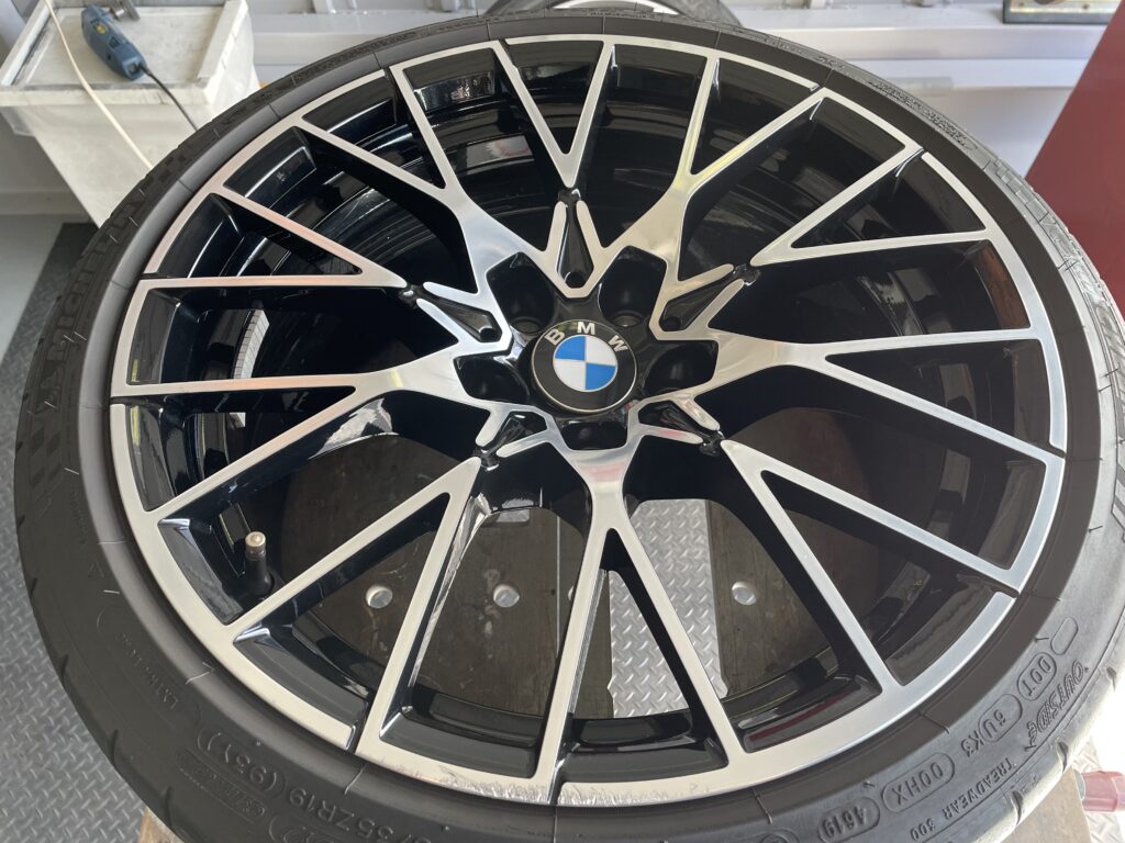 本日はBMW M2 コンペティション純正ブラック/ブラッシュドポリッシュホイールのガリキズ をポリッシュ塗装でリペアさせていただきました。