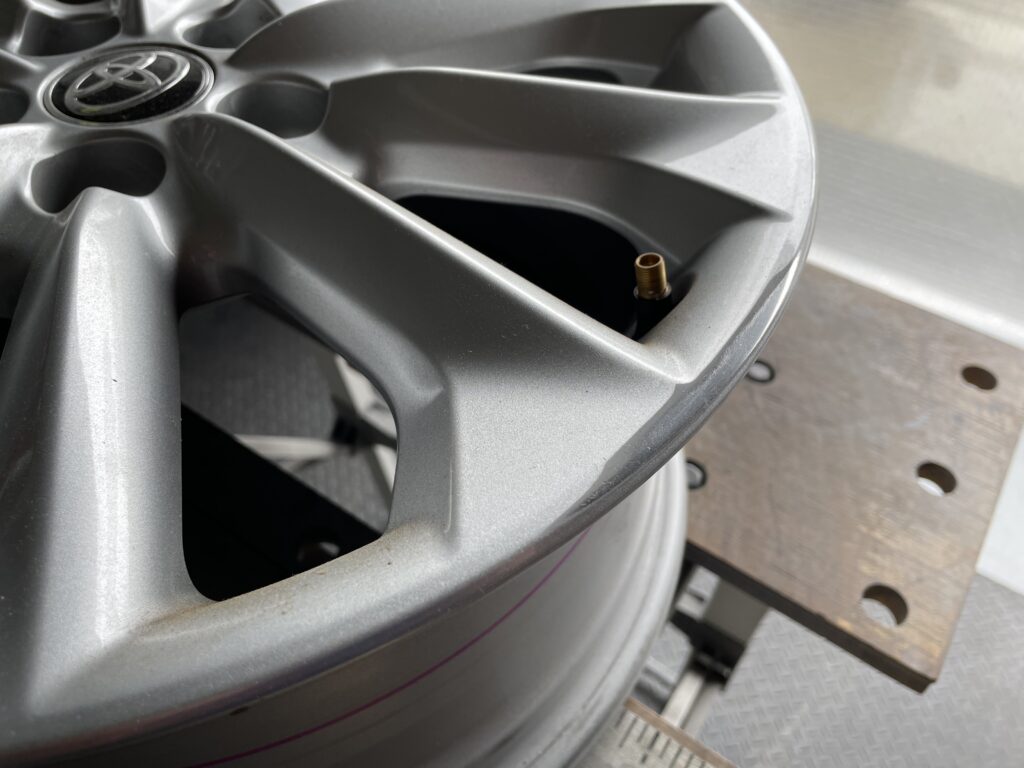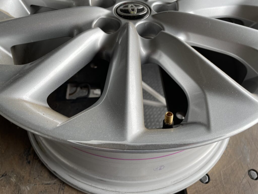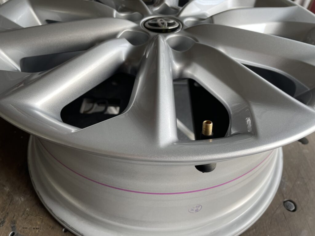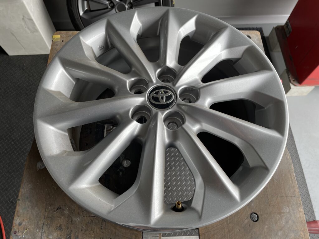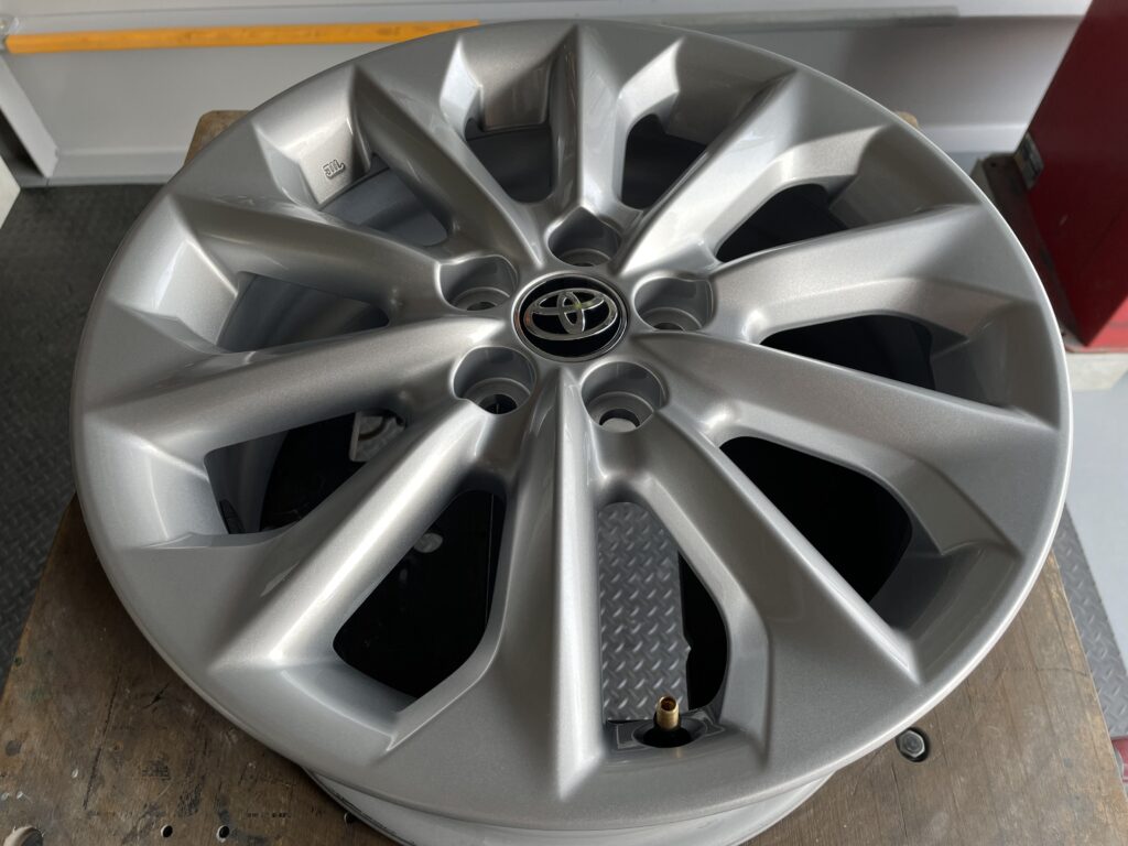 本日はトヨタカローラ純正アルミホイールガリキズを同様のシルバー色で塗装リペアさせていただきました。