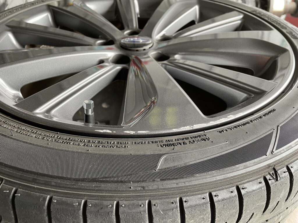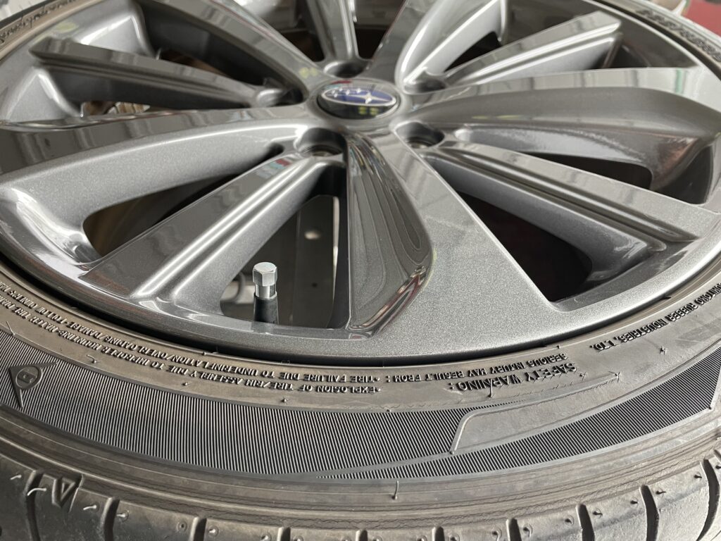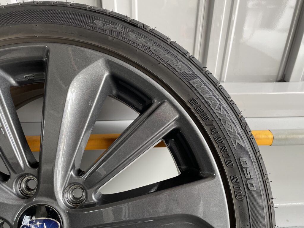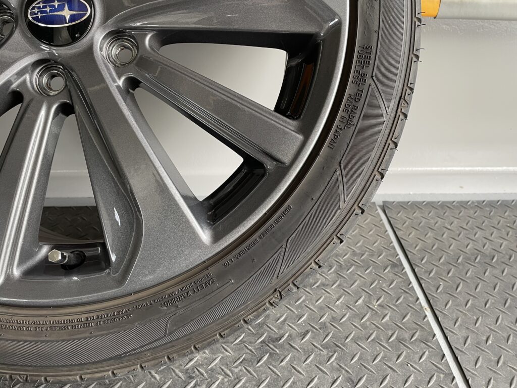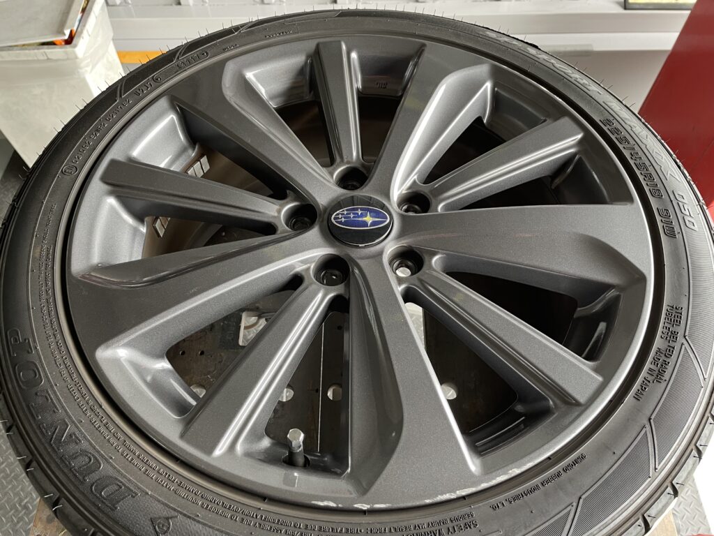 本日はスバルWRX S4の純正アルミホイールガリキズを同様のガンメタ色で塗装リペアさせていただきました。