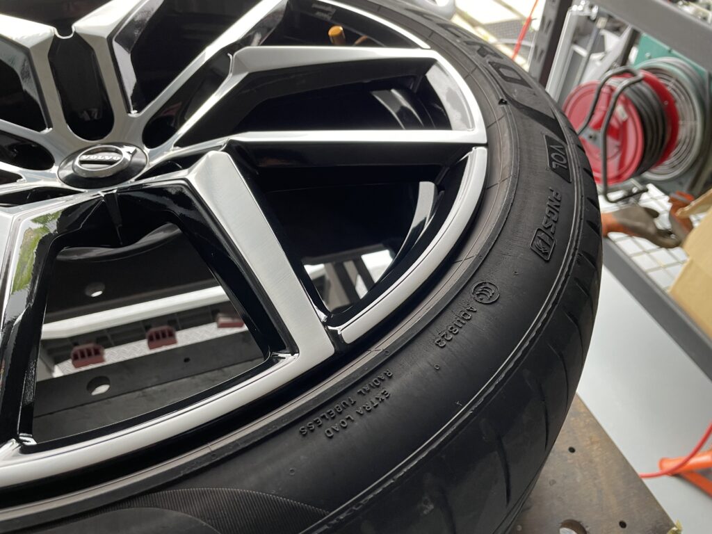 本日はボルボXC60ポールスターエンジニアードの純正ブラック/ポリッシュホイールガリキズ 2本をブラック塗装とポリッシュ研磨でリペアさせていただきました。