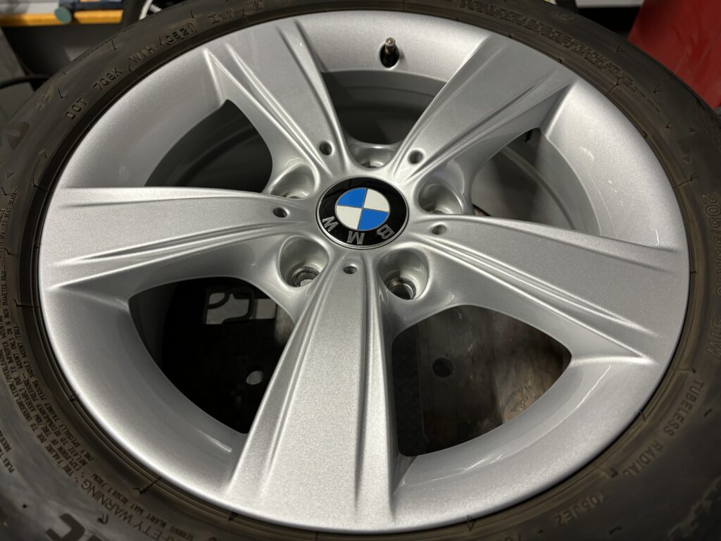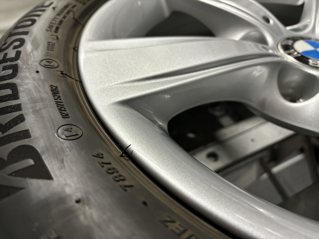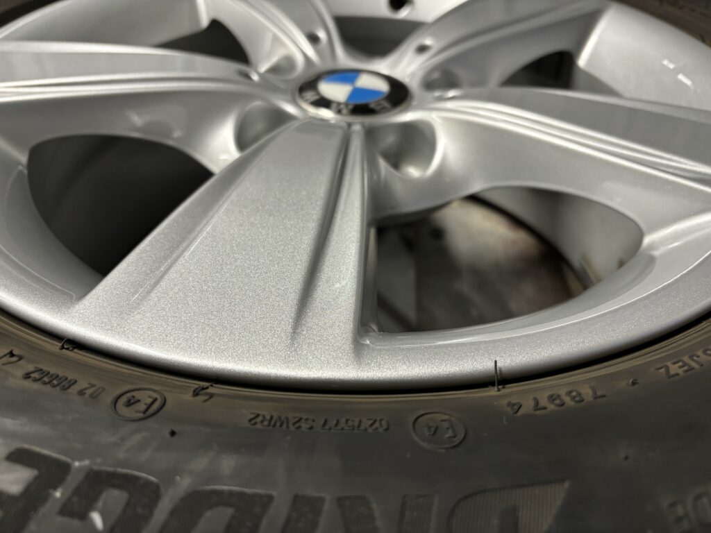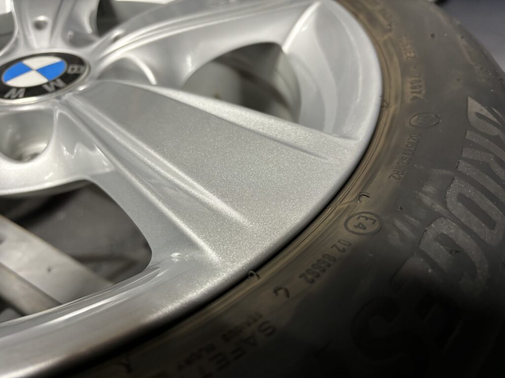 本日はBMW118iの純正アルミホイールガリキズをアルミ硬化パテを充填してシルバー塗装でリペアさせていただきました。