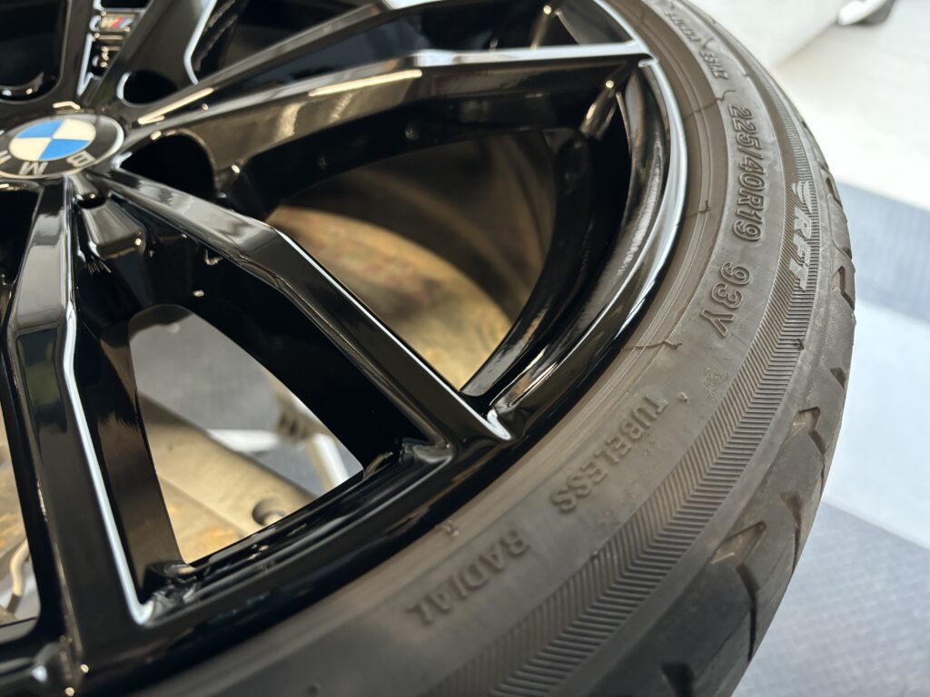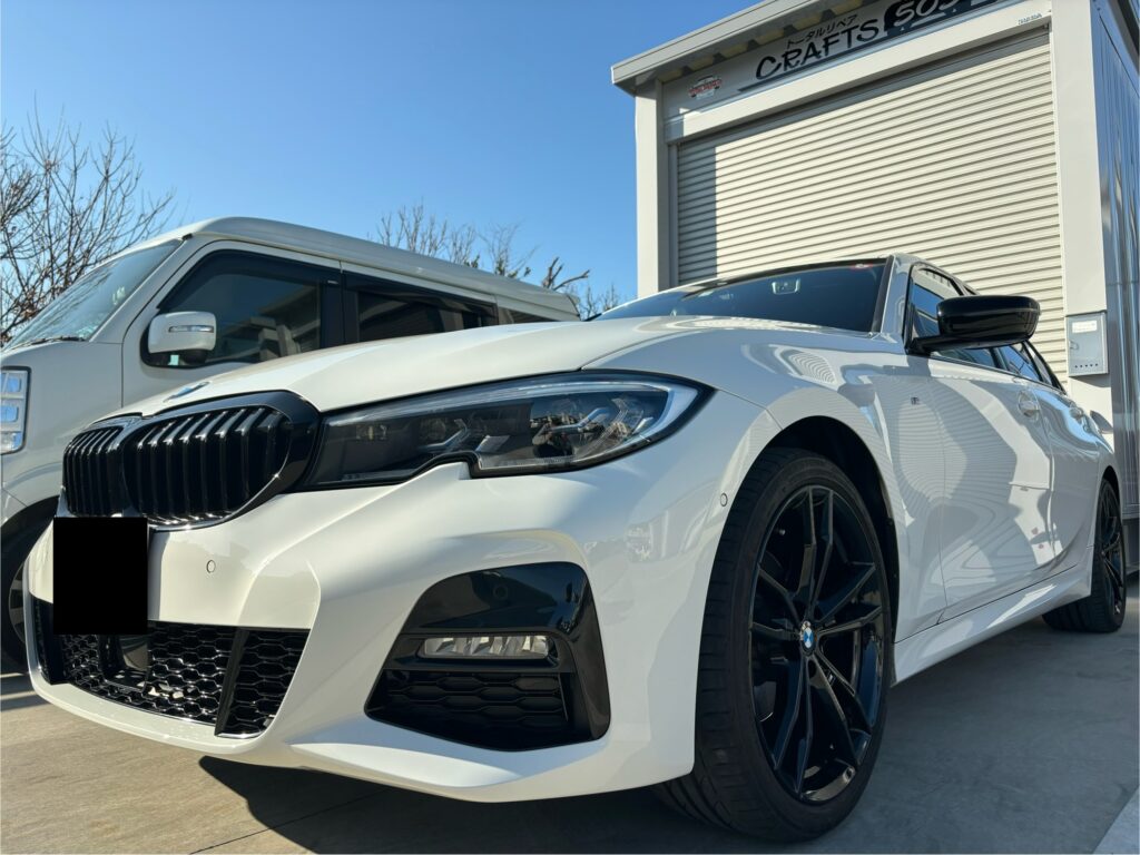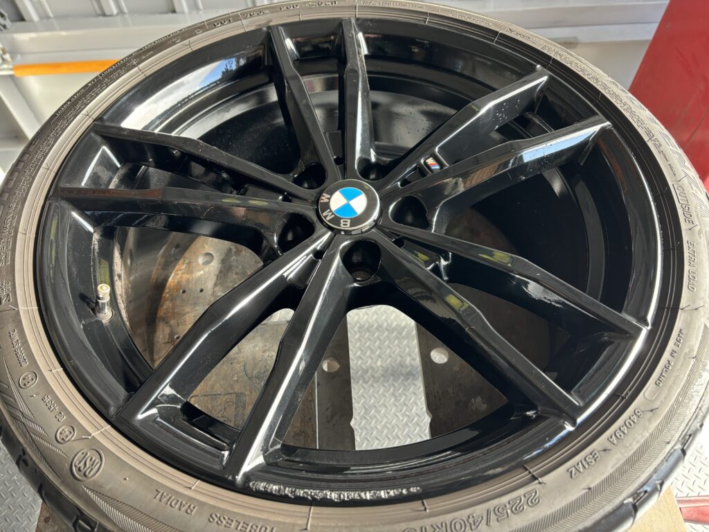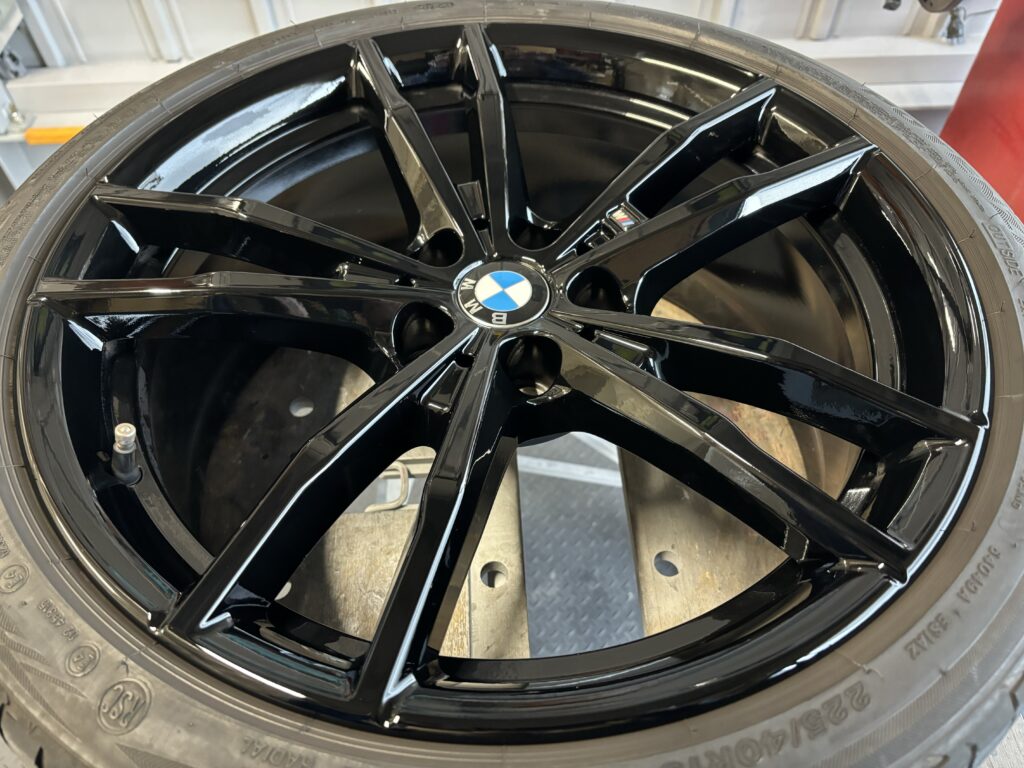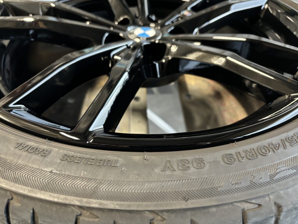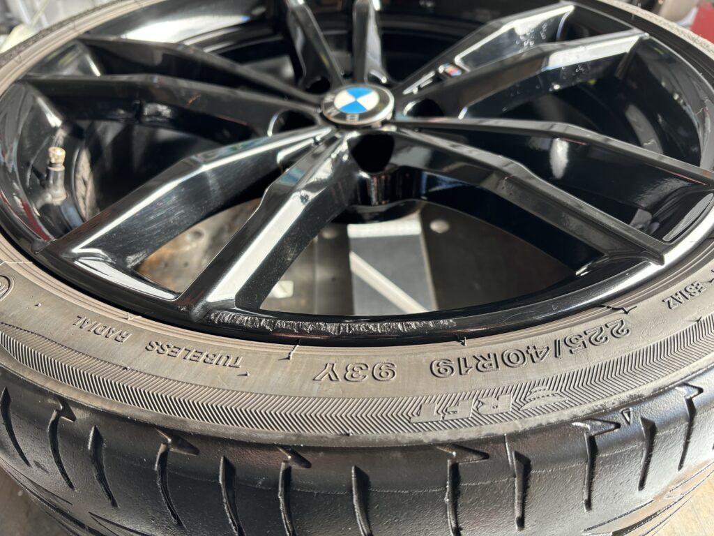 本日はBMW 320dの純正アルミホイールガリキズをブラック塗装でリペアさせていただきました。