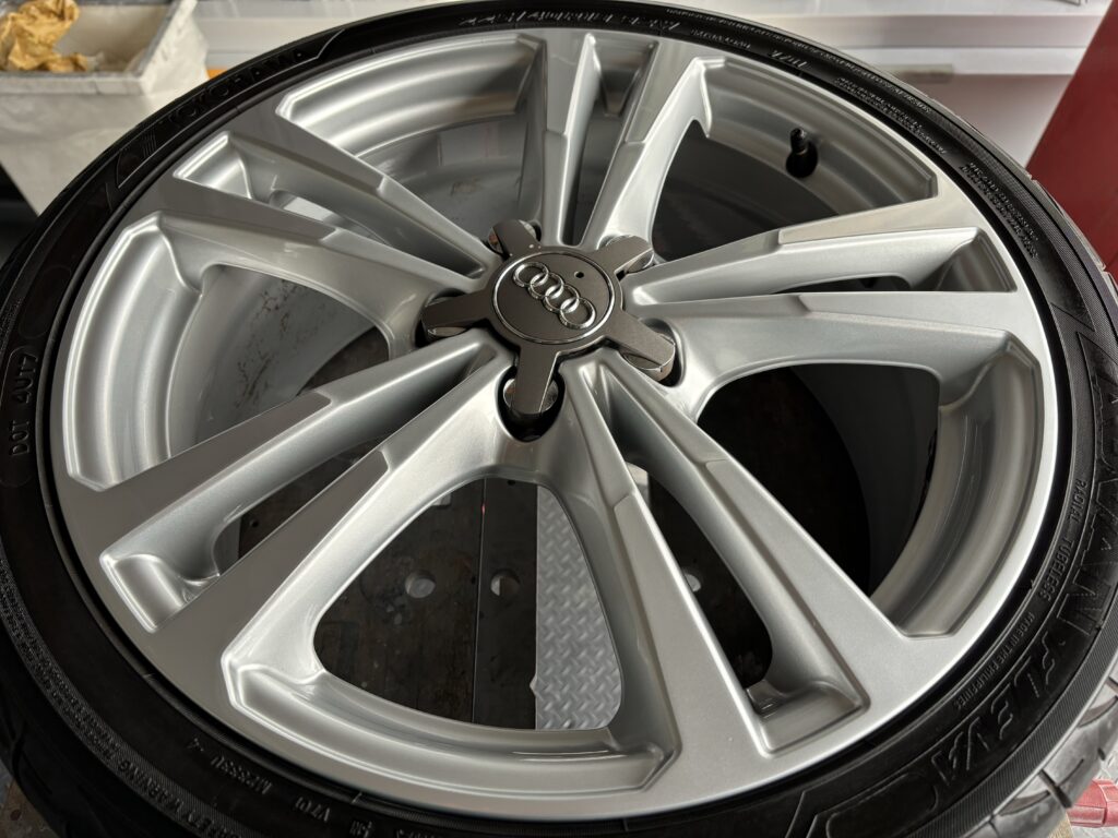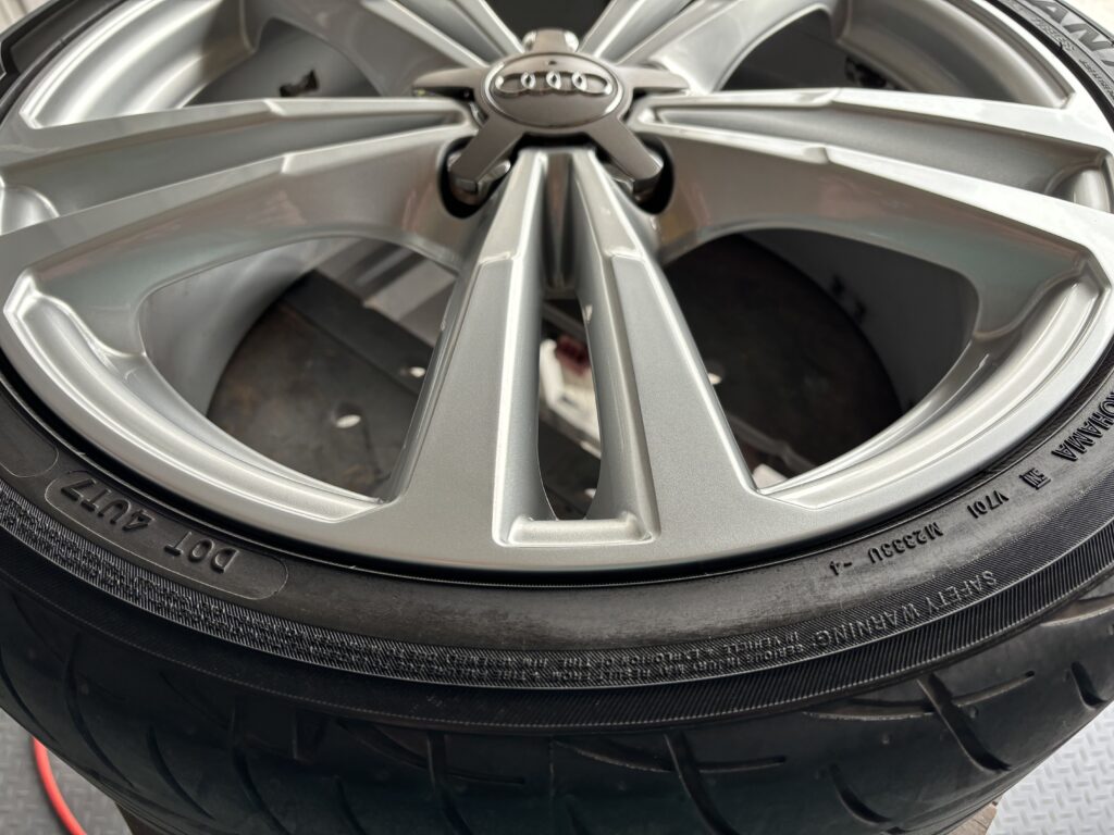 本日はアウディS3の純正シルバー/ダイヤカットアルミホイールガリキズをポリッシュ塗装でリペアさせていただきました。
